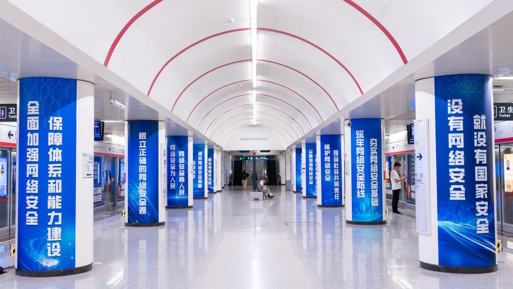 走入平安大街地鐵站,濃厚的網絡安全宣傳氛圍撲面而來。此次主題站點打造緊緊圍繞“網絡安全為人民,網絡安全靠人民——以高水平安全守護高質量發展”的宣傳周主題,將網絡安全知識與地鐵公共空間巧妙結合。站點入口的歡迎通道,站廳層的海報長廊,軌行區的地鐵燈箱,都以生動形象的畫面和簡潔明了的文字,向過往乘客普及網絡安全重要理論觀點和政策法規,以及常見的網絡安全防范措施,讓市民在出行時“抬頭可見、隨處可學”,將網絡安全理念深植于心中。