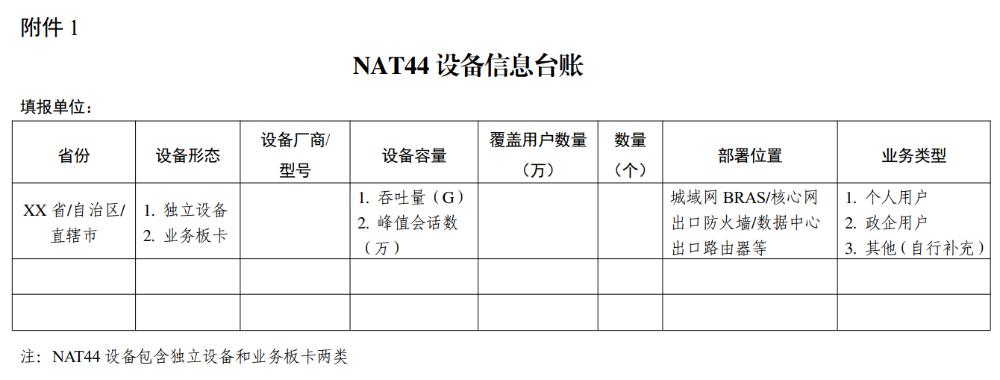 1.NAT44設備信息臺賬