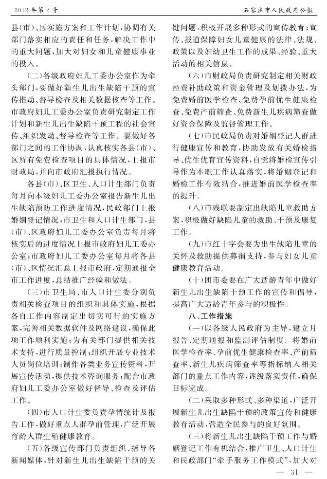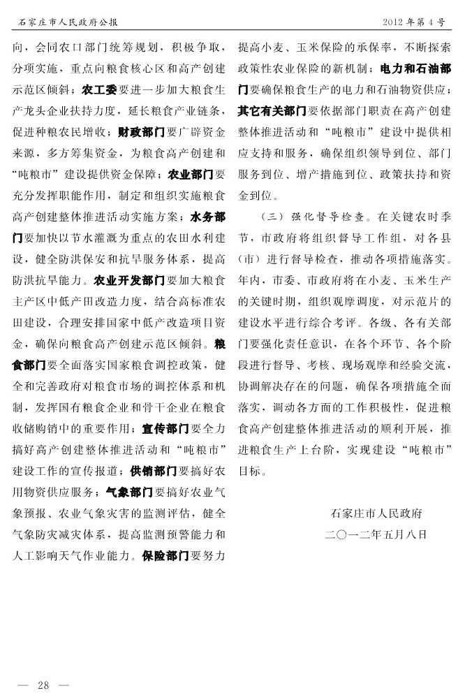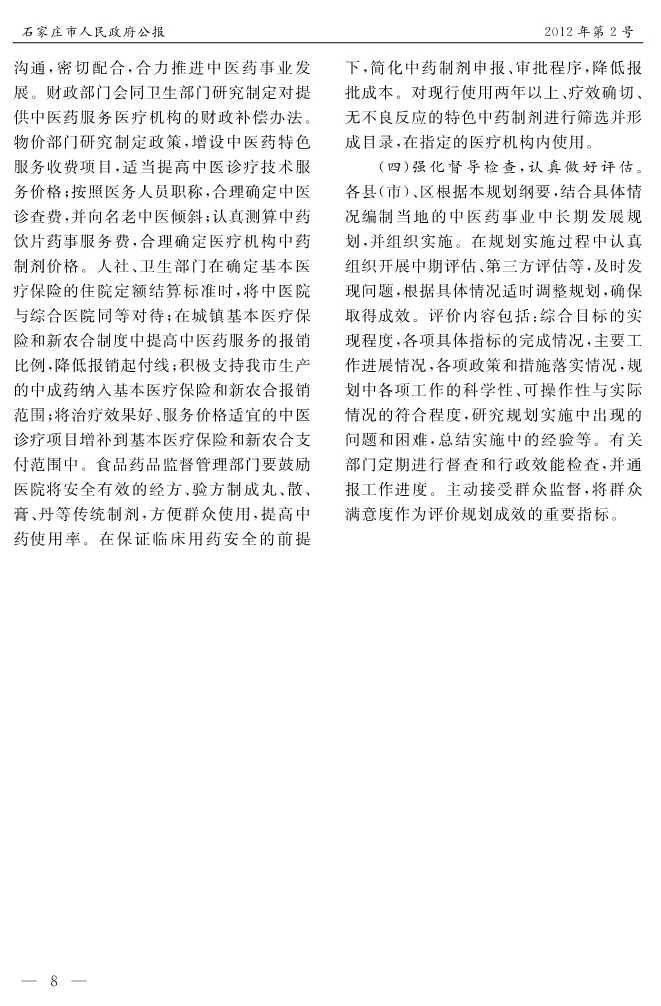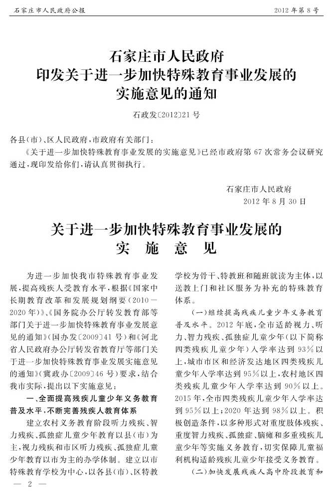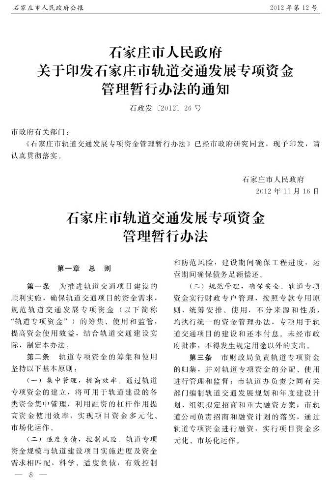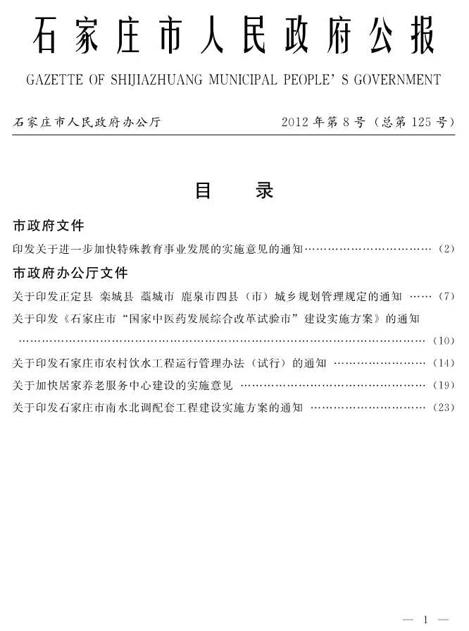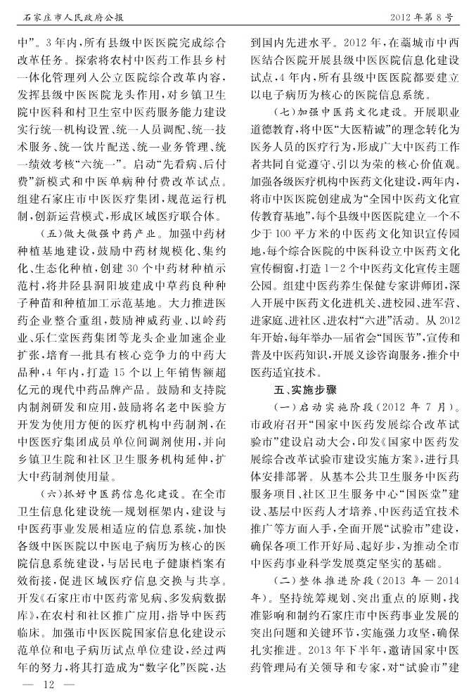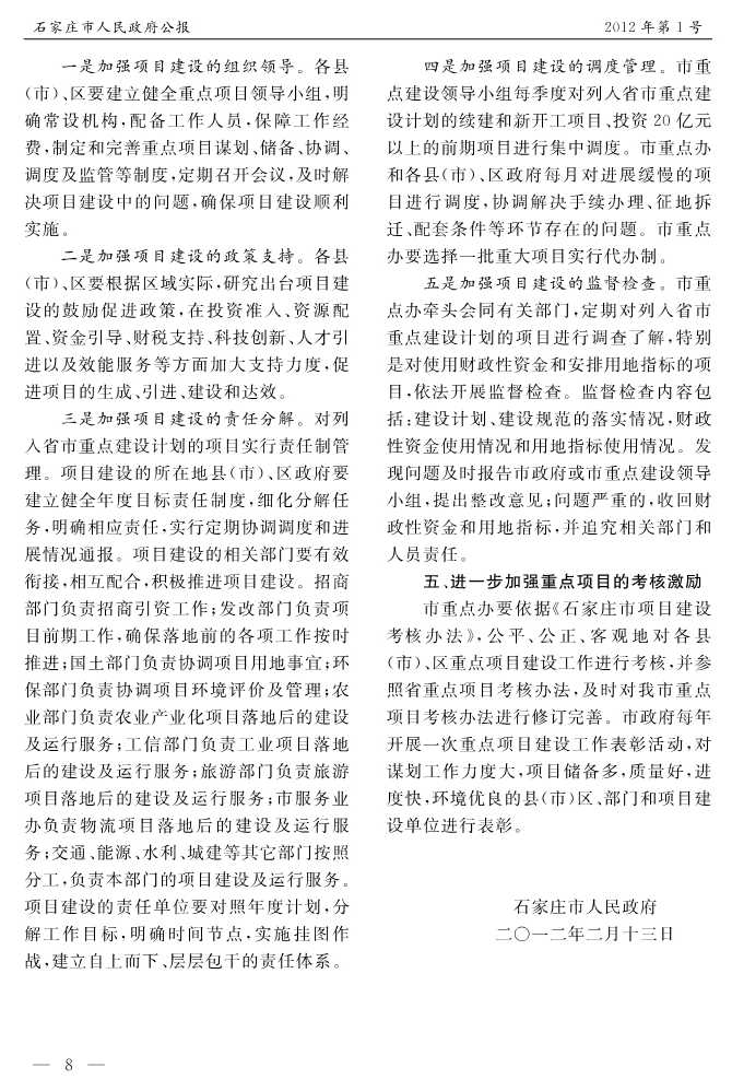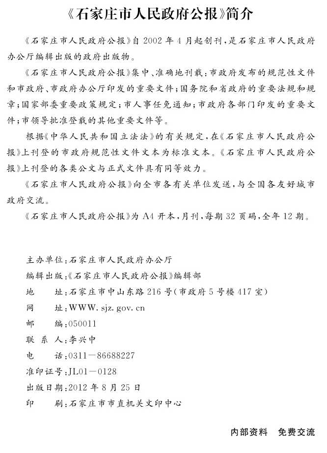 石家莊市人民政府公報2012年第8號