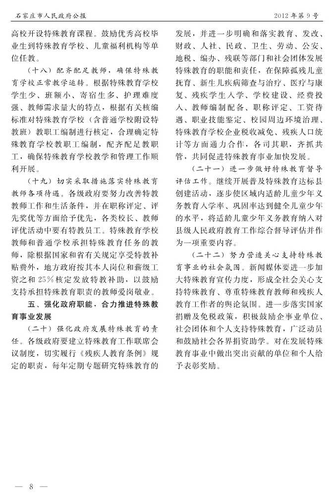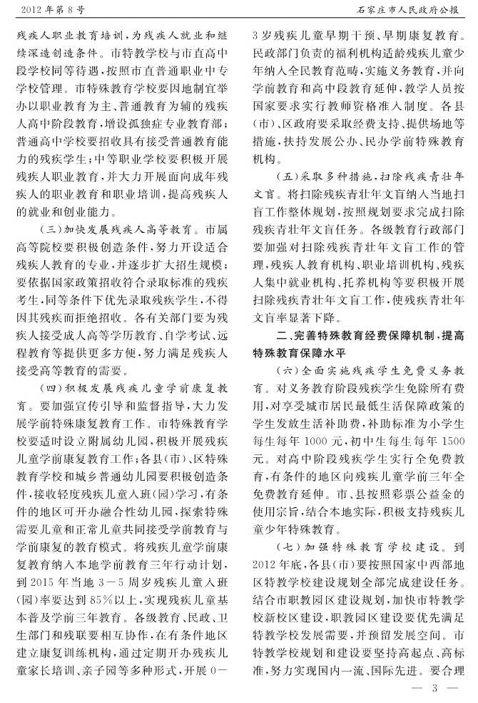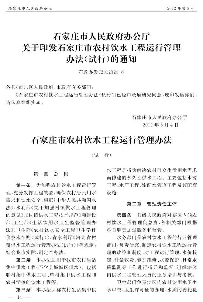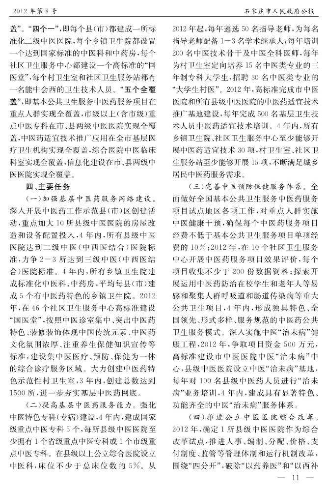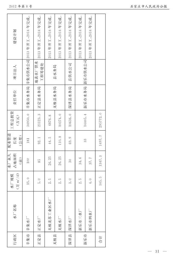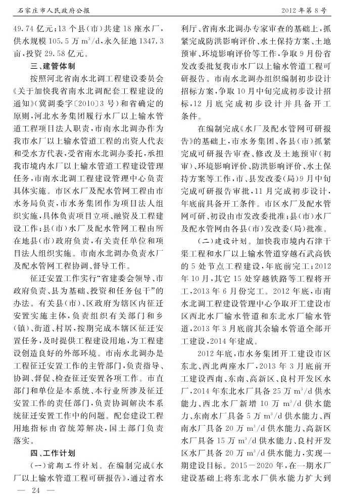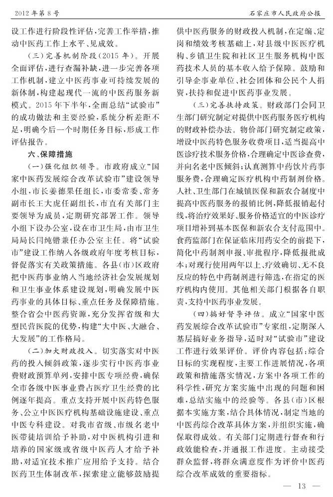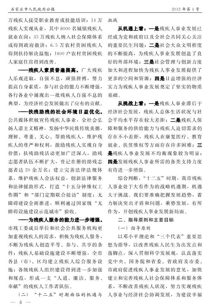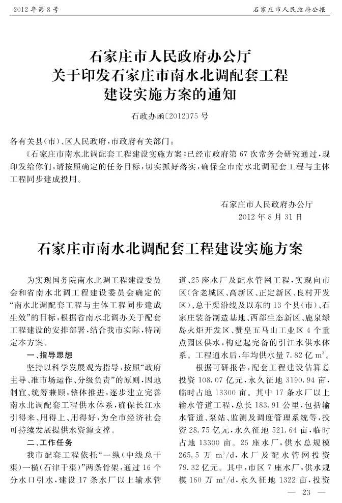 石家莊市人民政府公報2012年第8號
