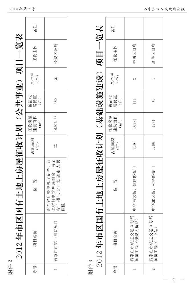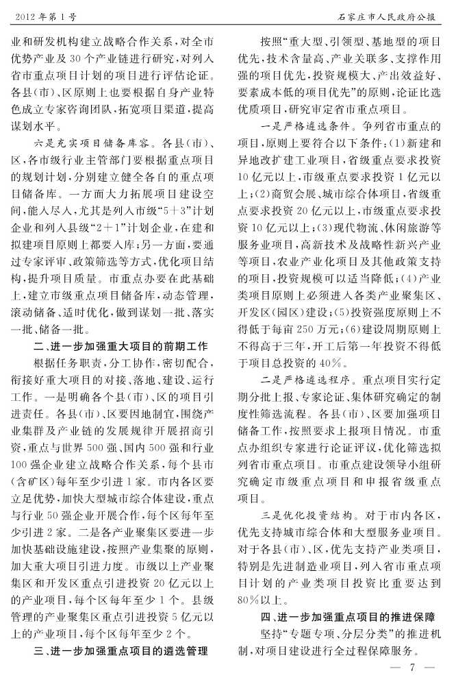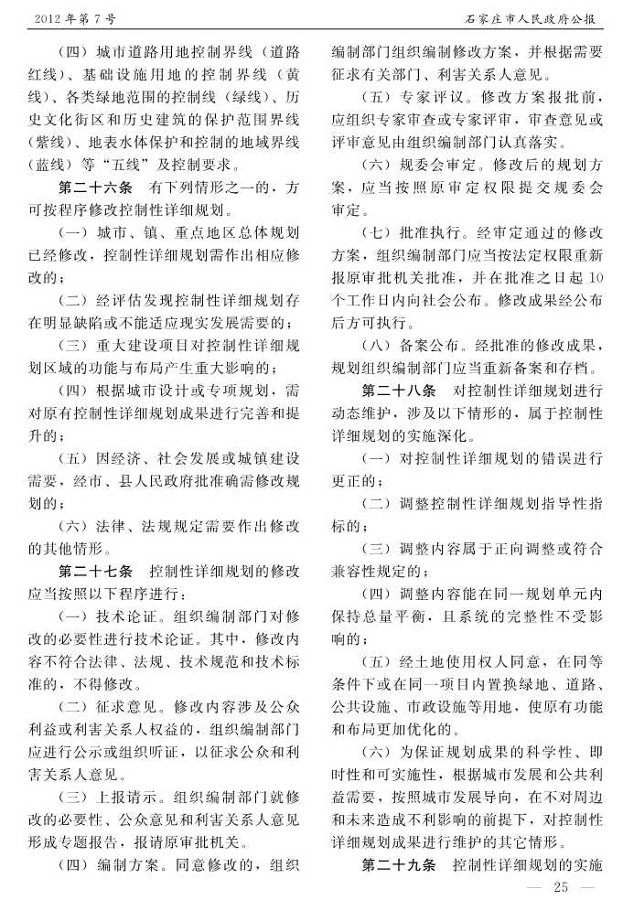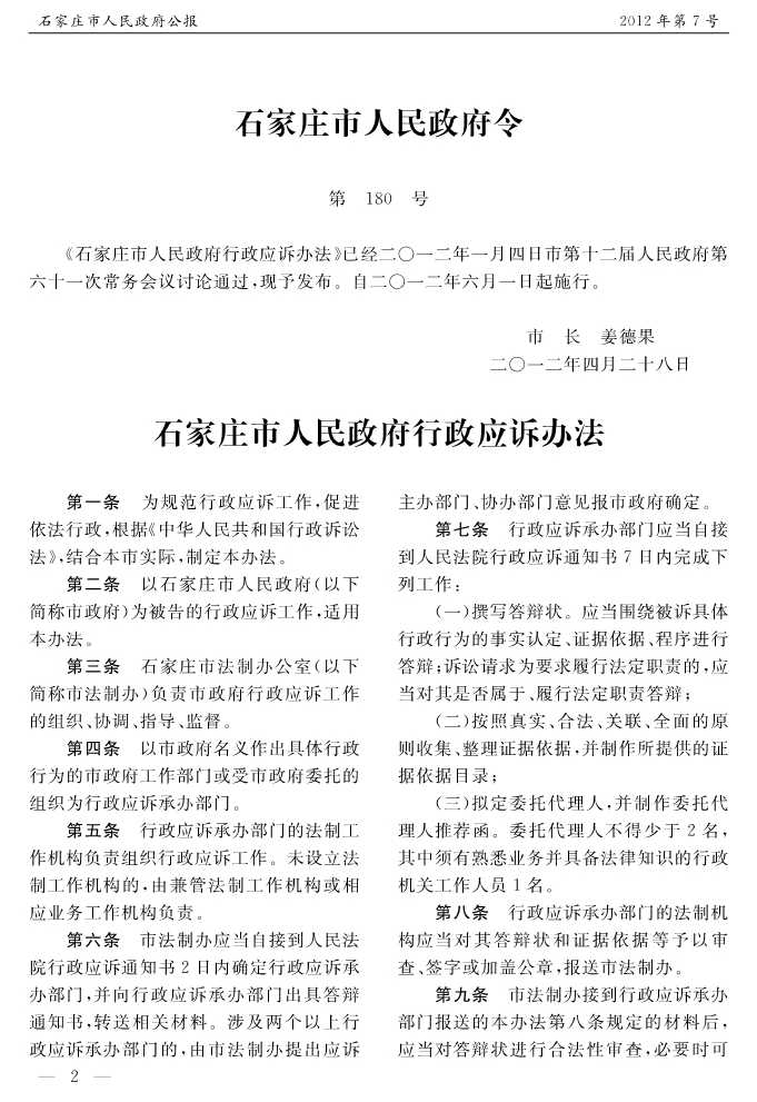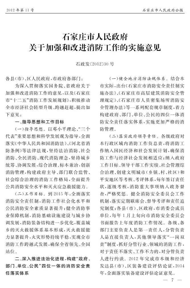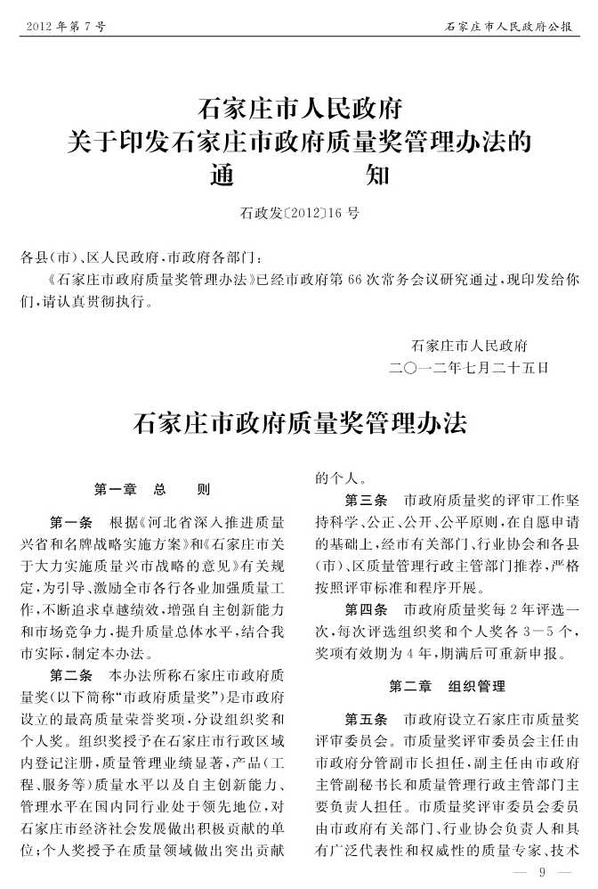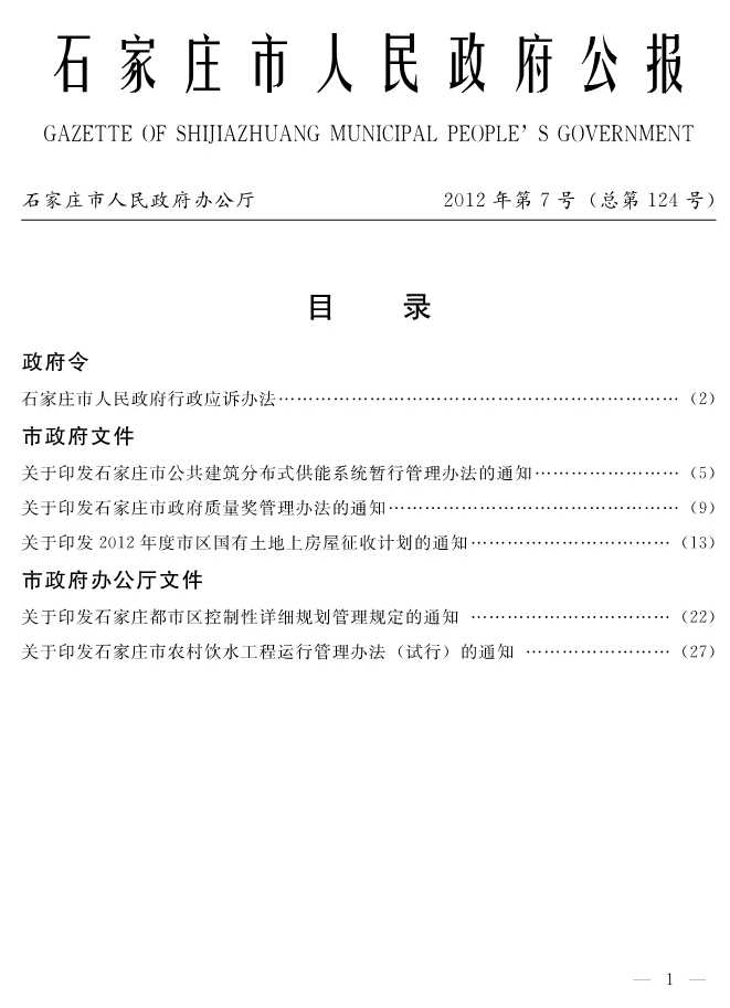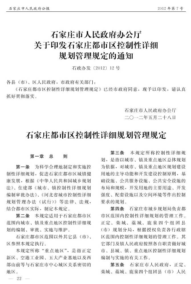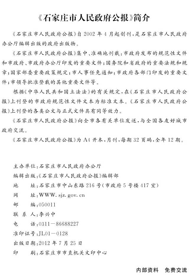 石家莊市人民政府公報2012年第7號