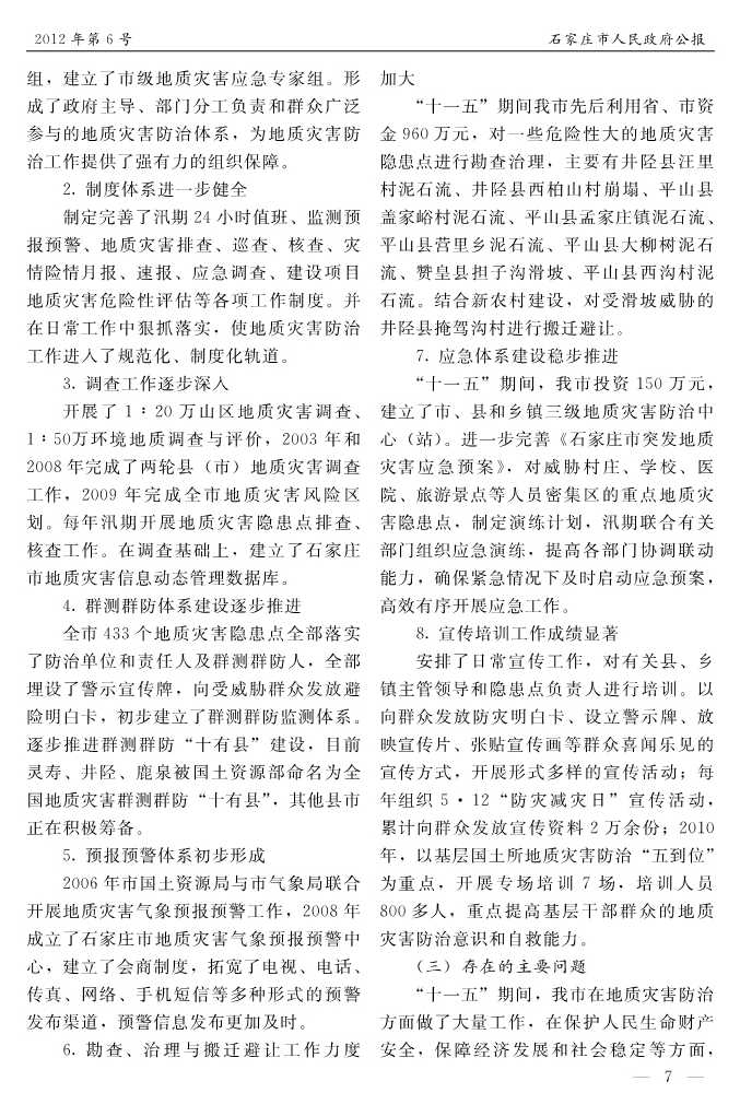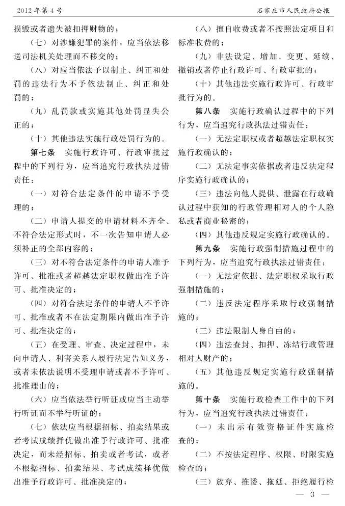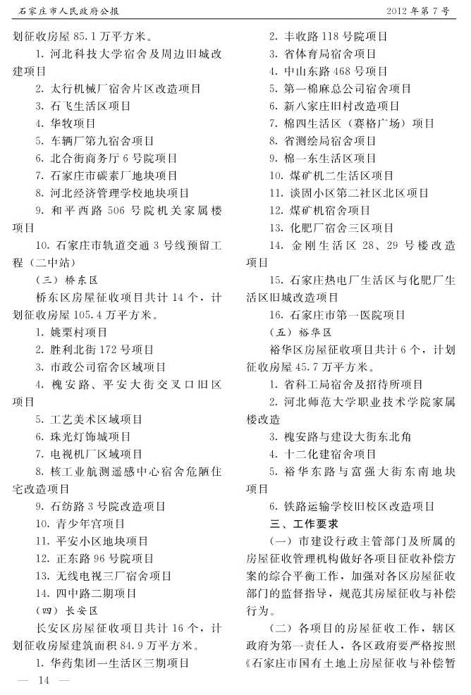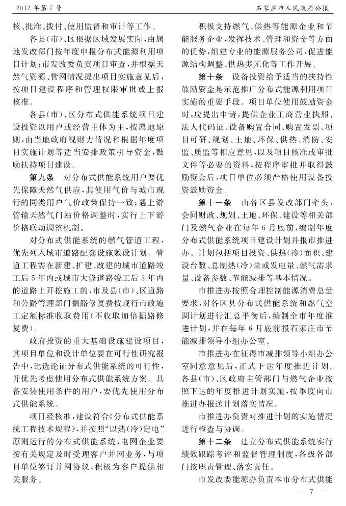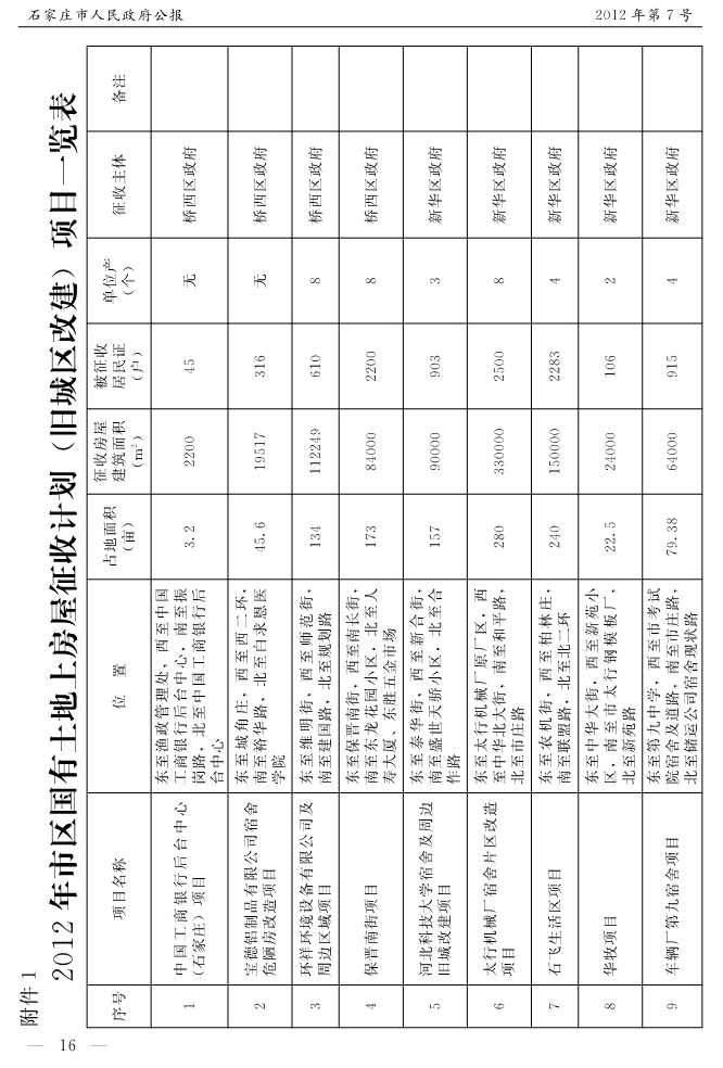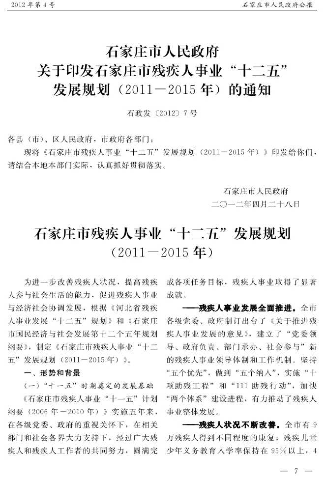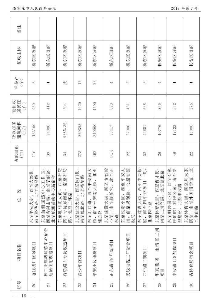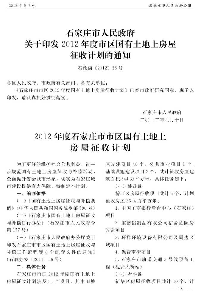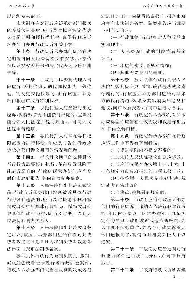 石家莊市人民政府公報2012年第7號