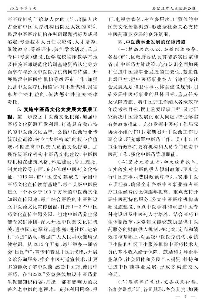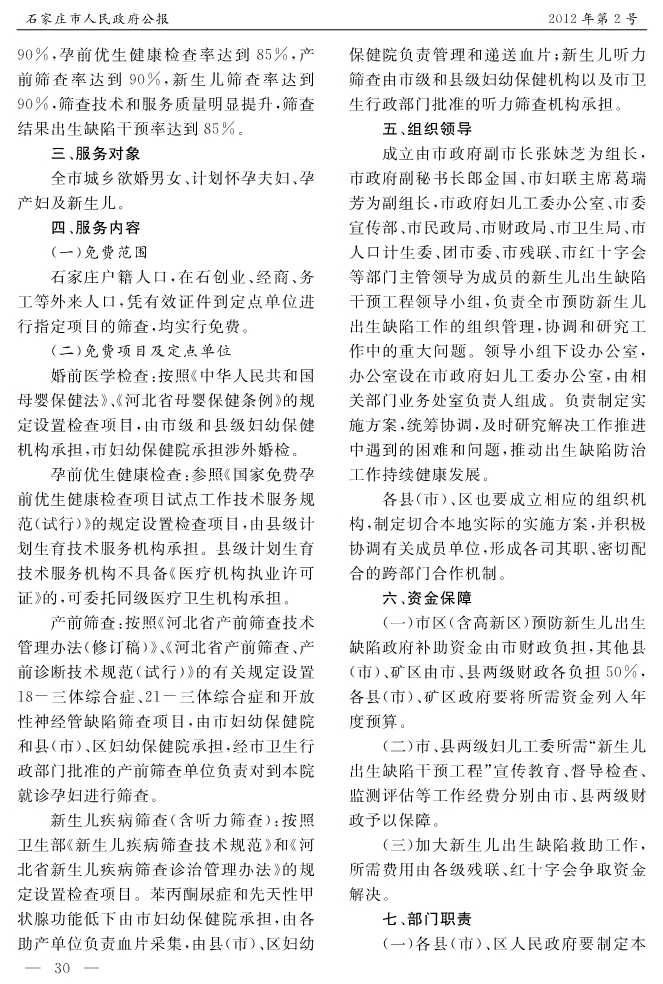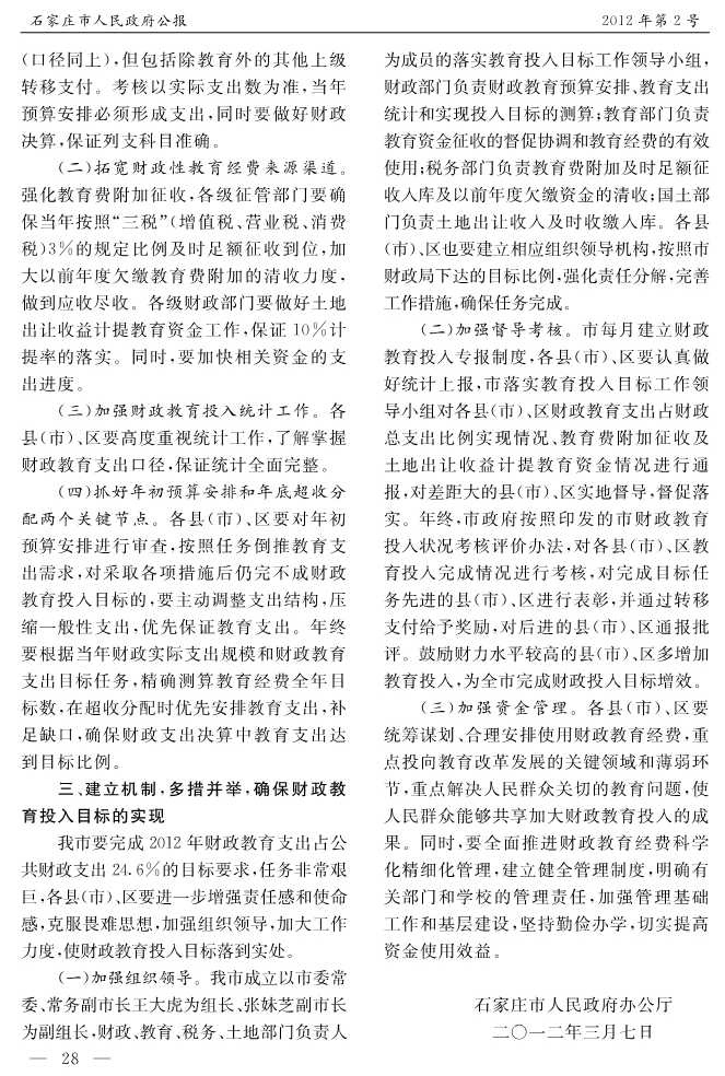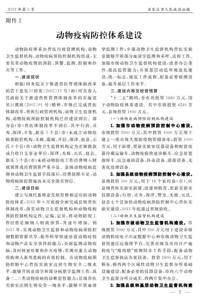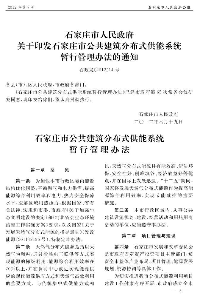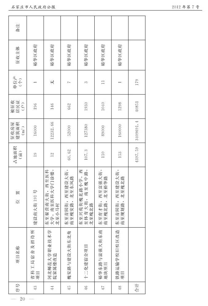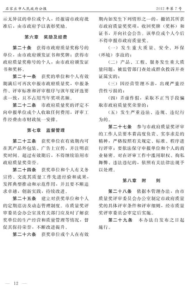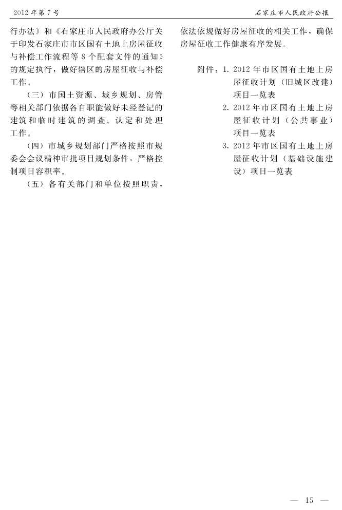石家莊市人民政府公報2012年第7號