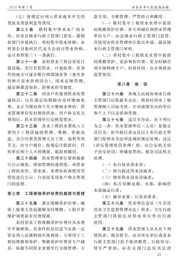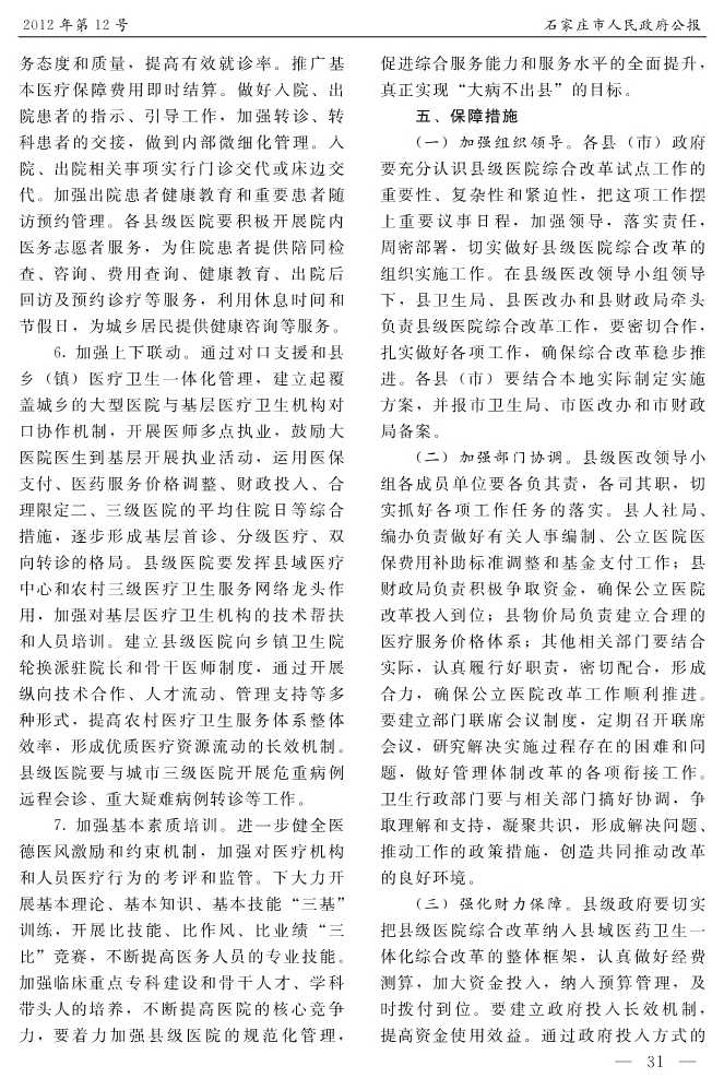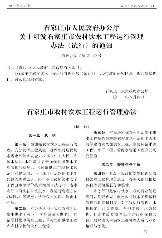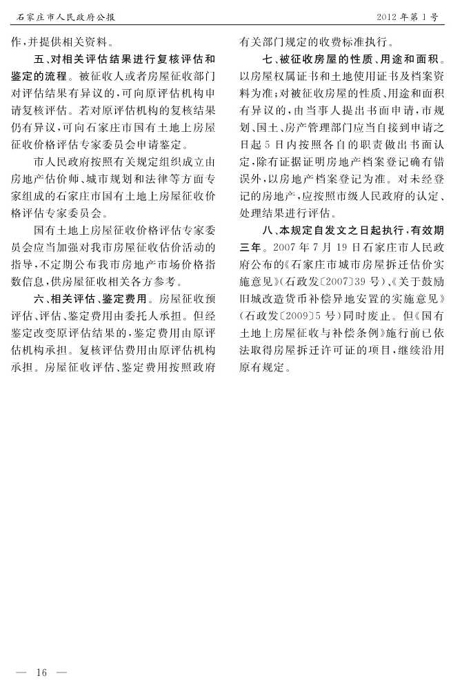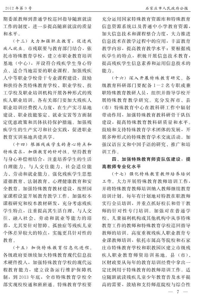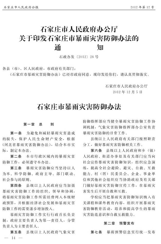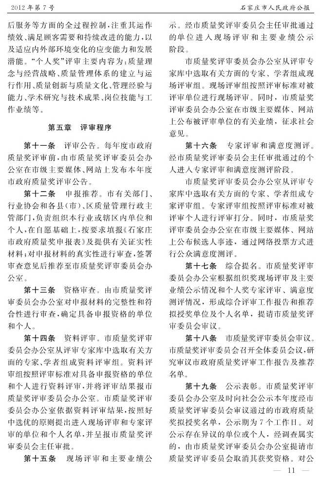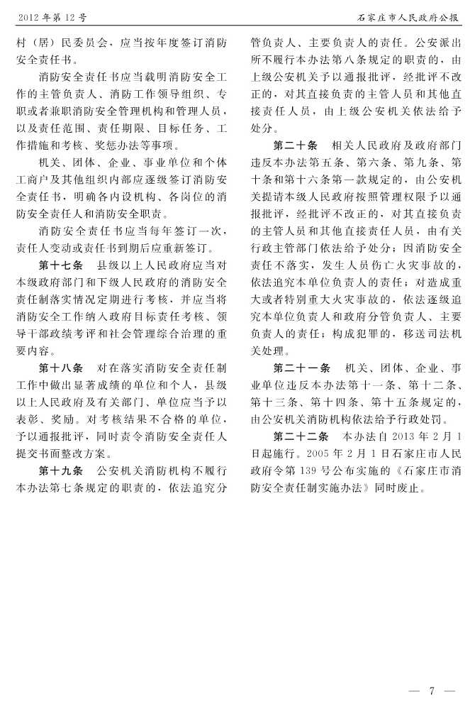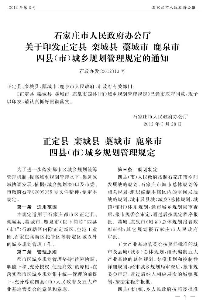 石家莊市人民政府公報2012年第7號
