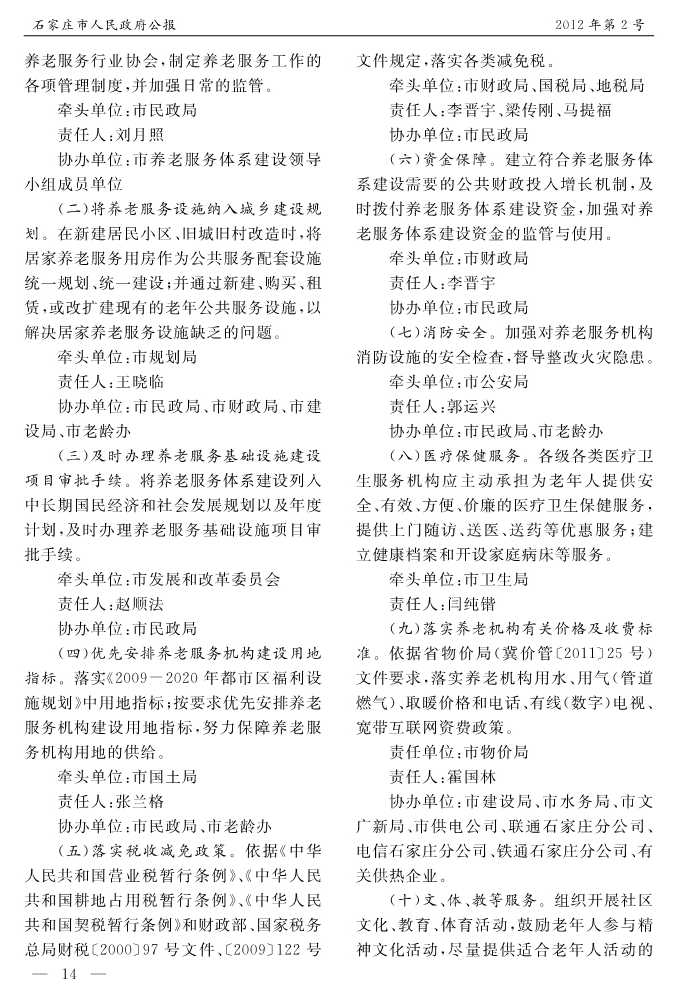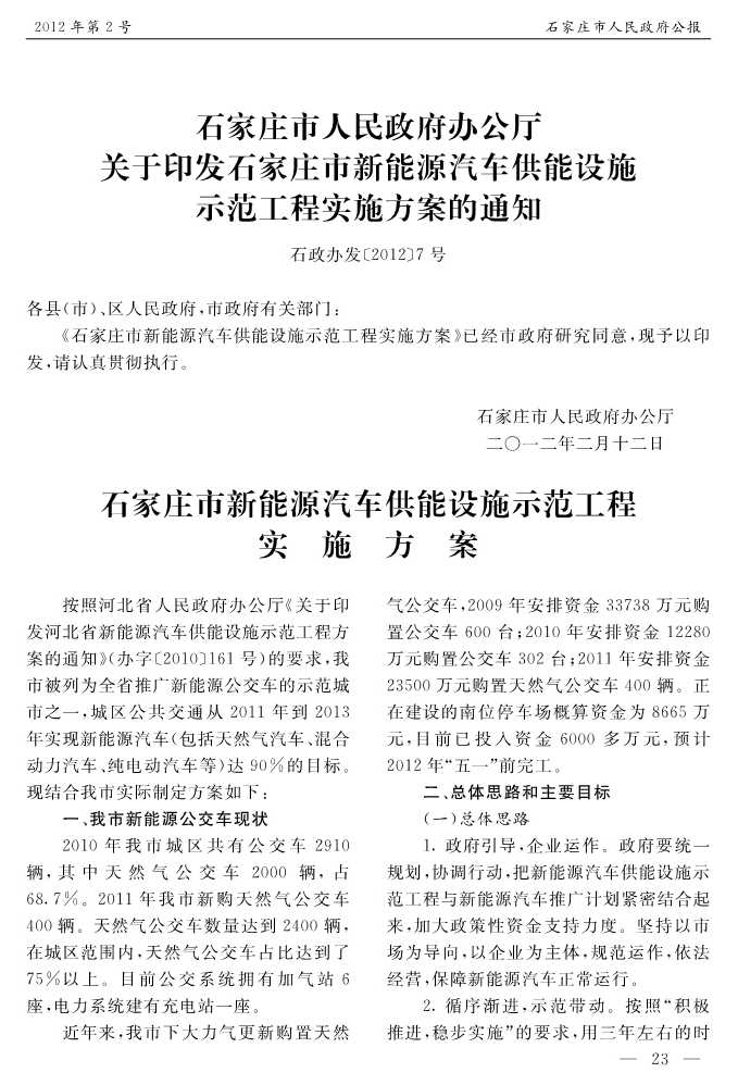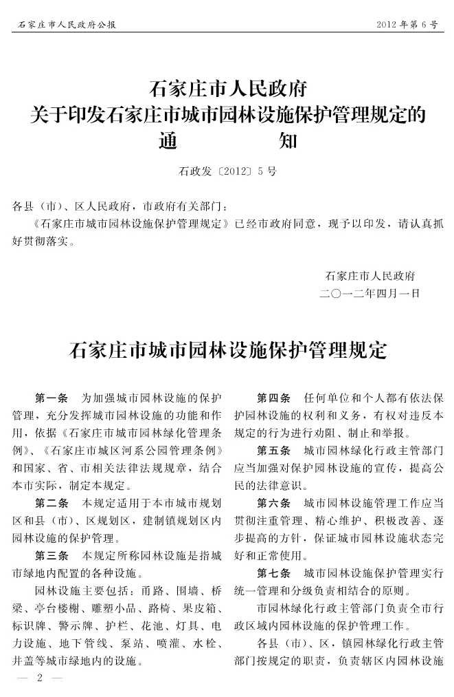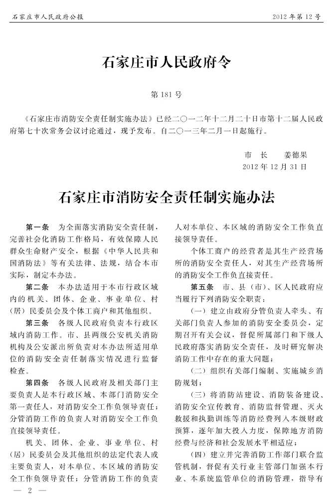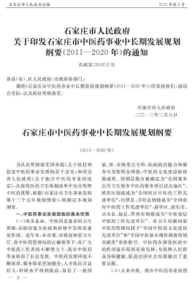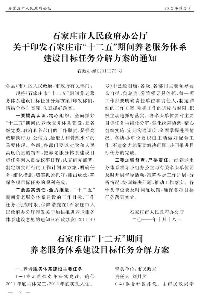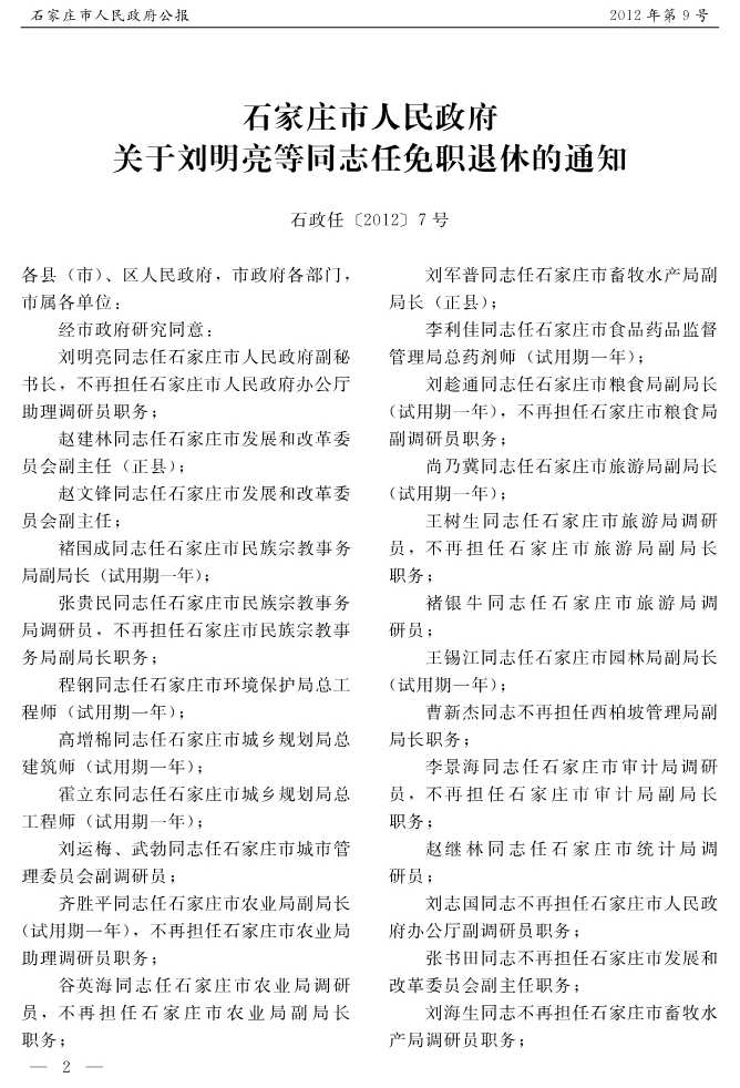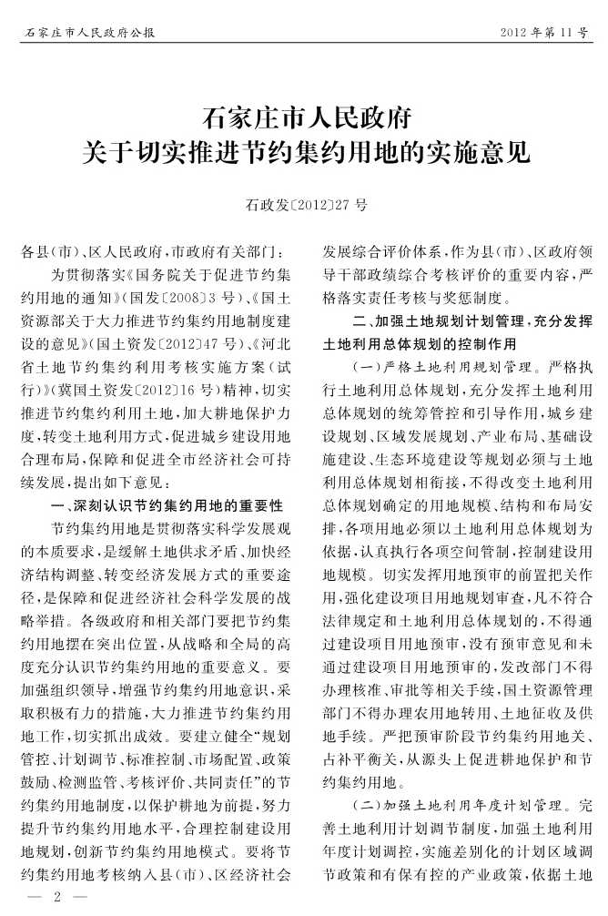 石家莊市人民政府公報2012年第2號