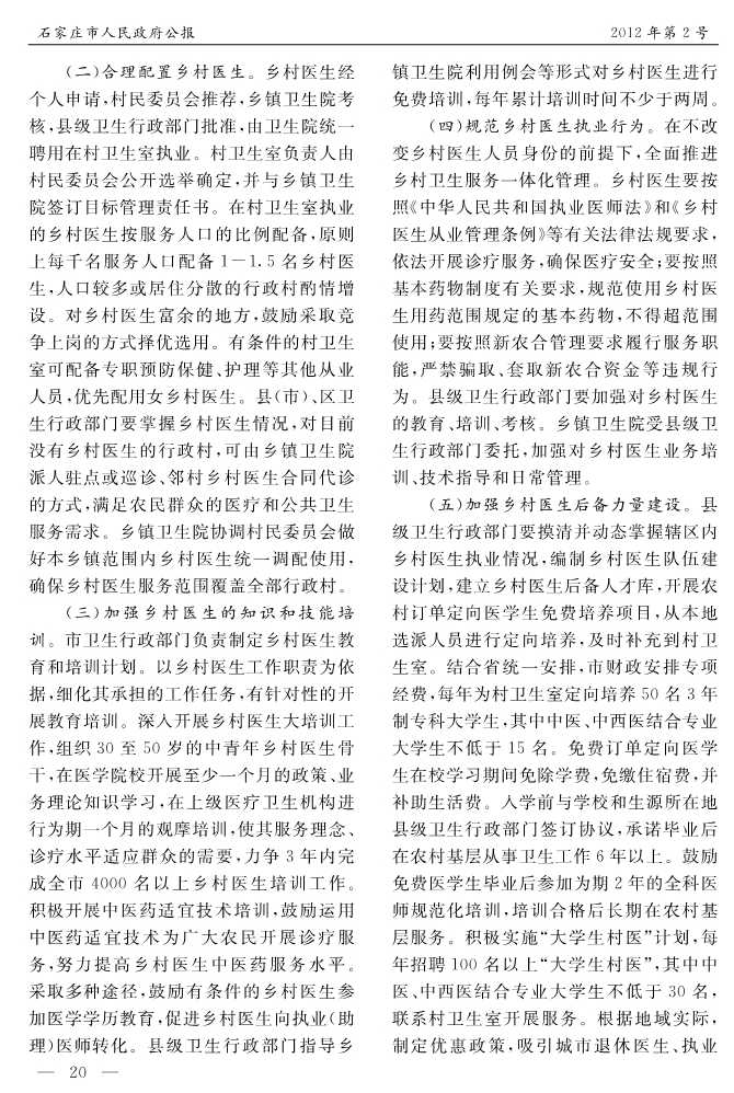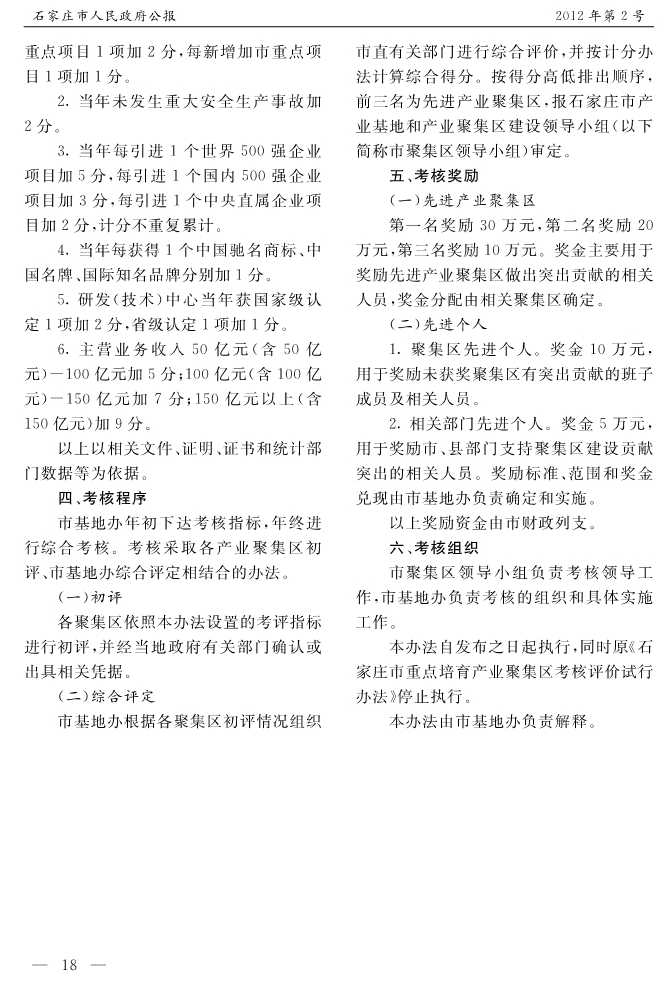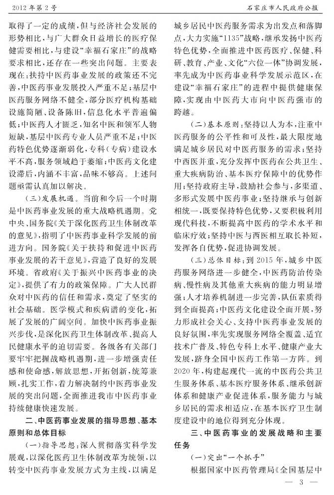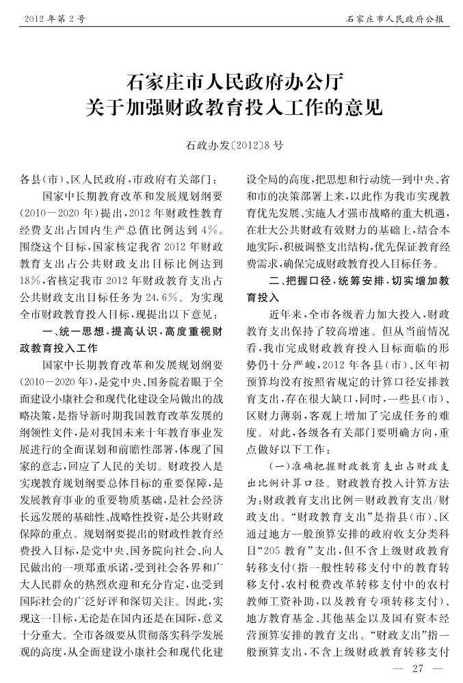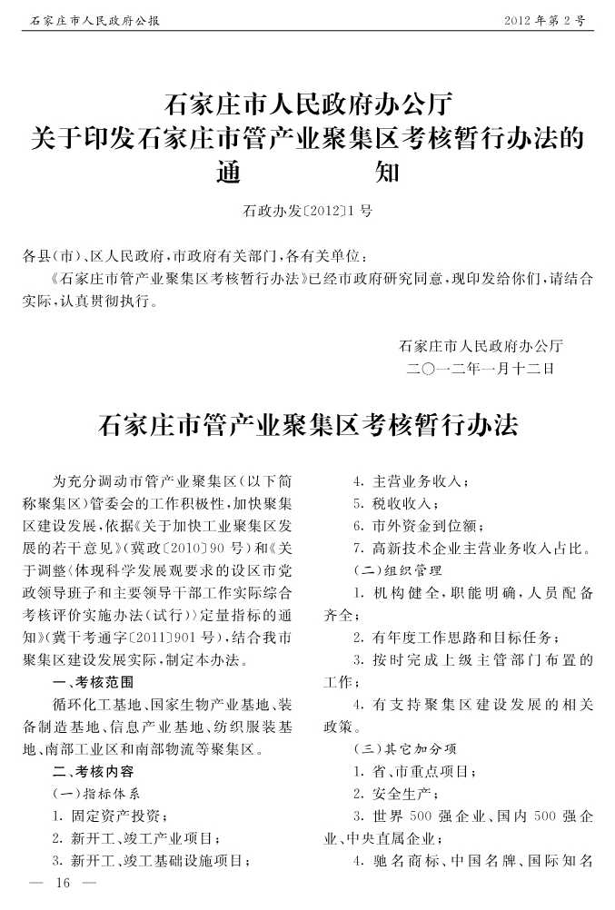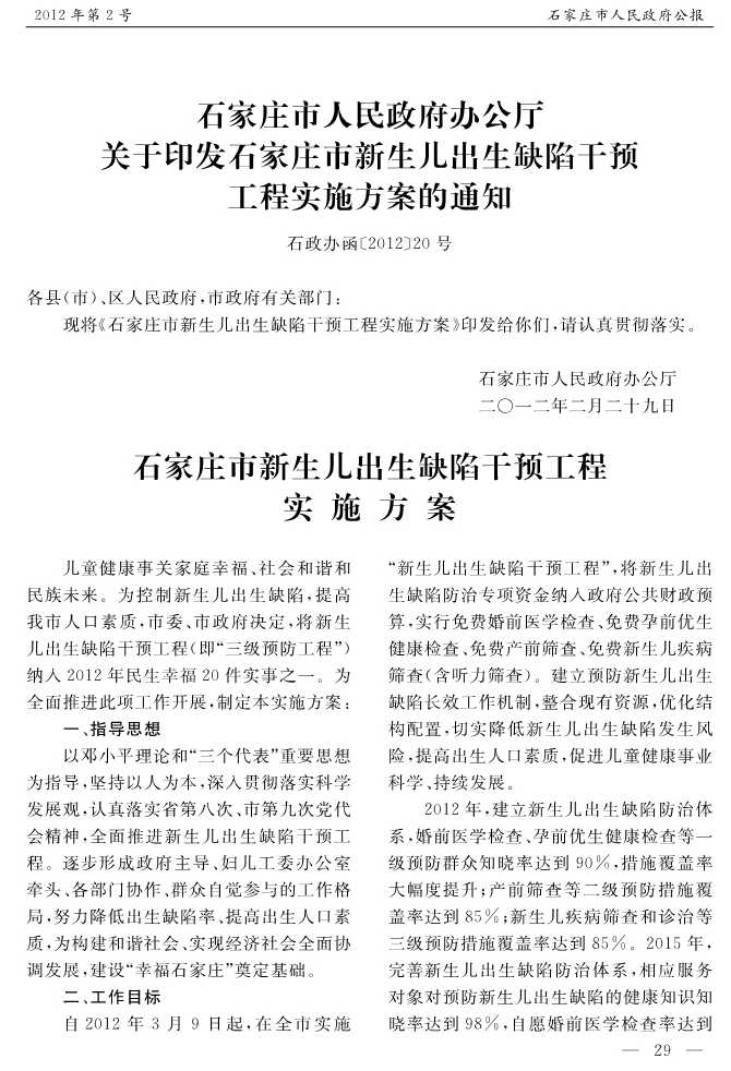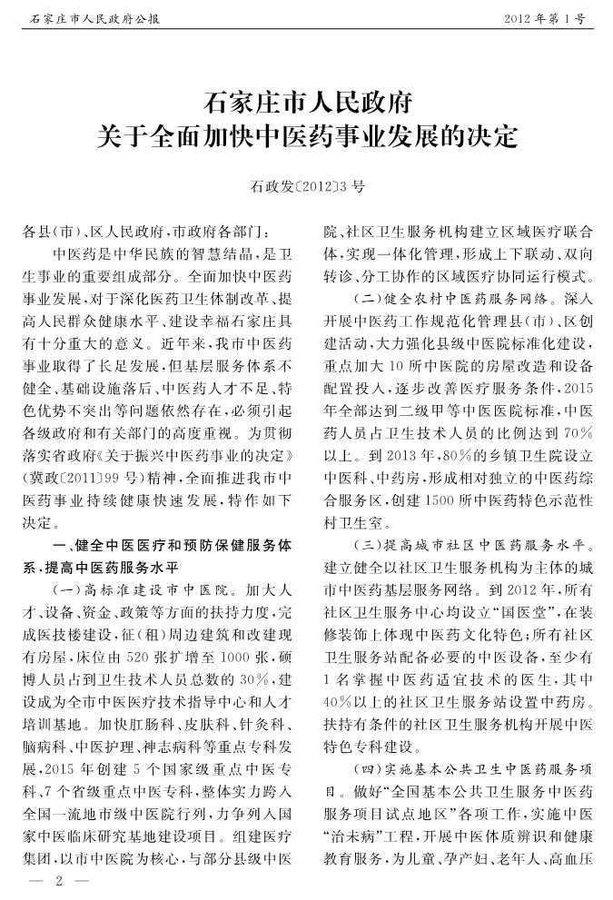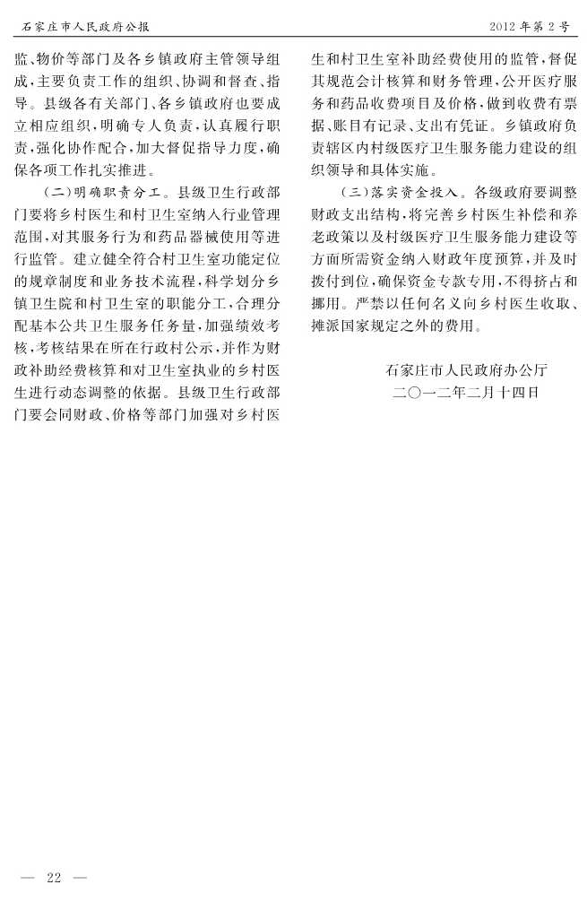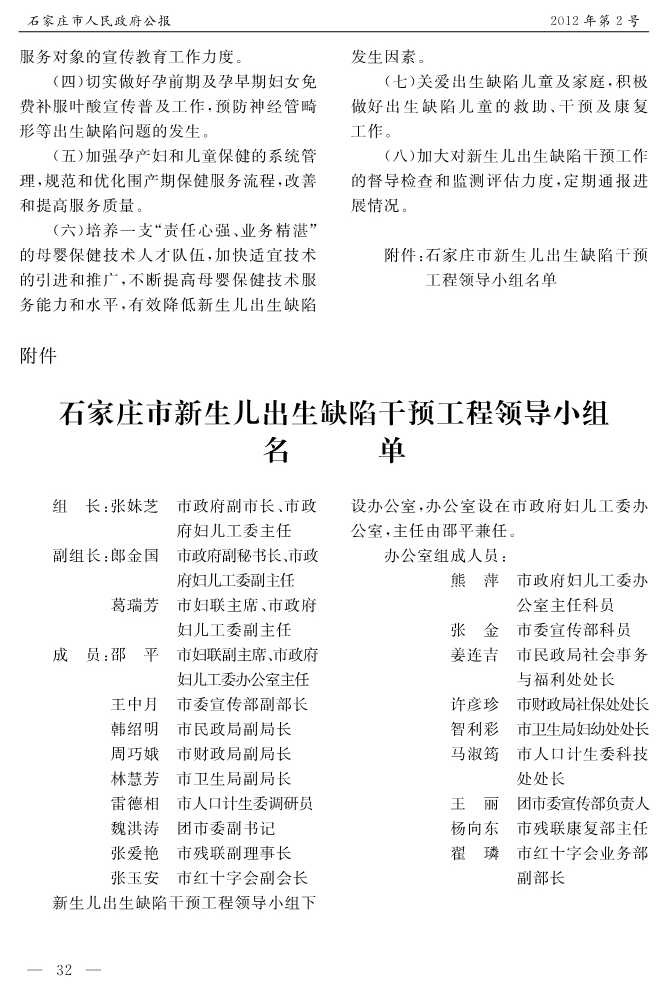 石家莊市人民政府公報2012年第2號