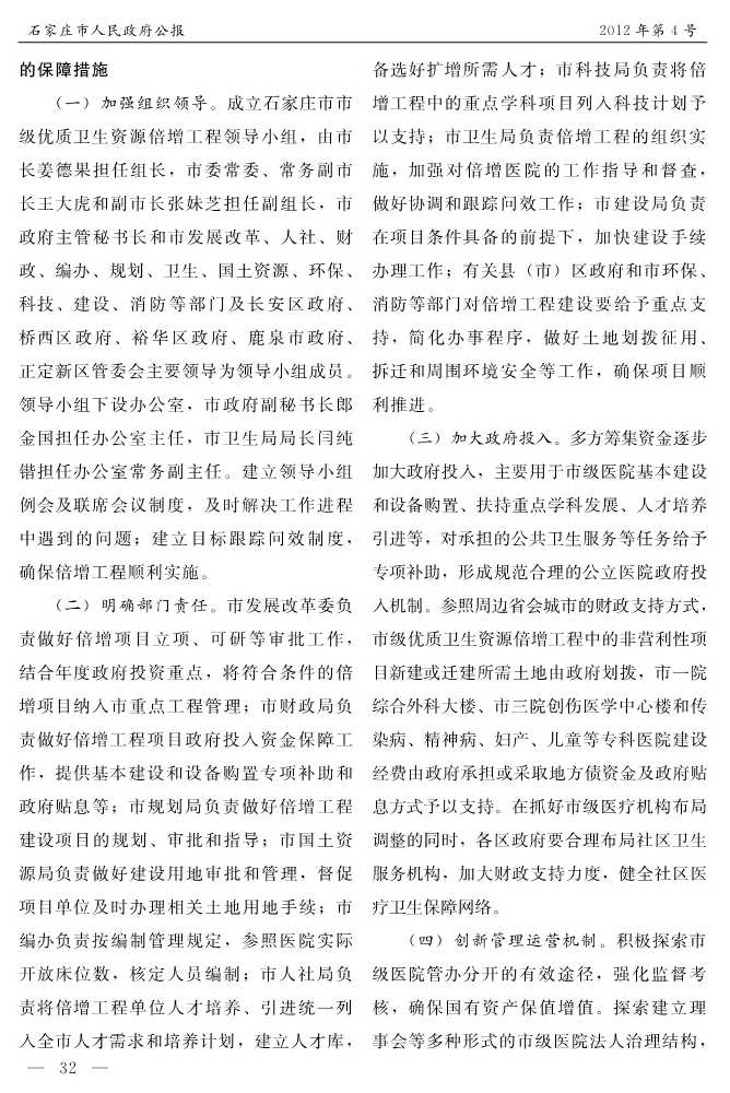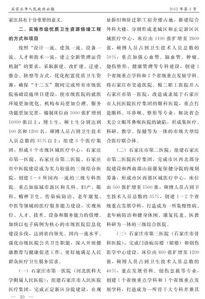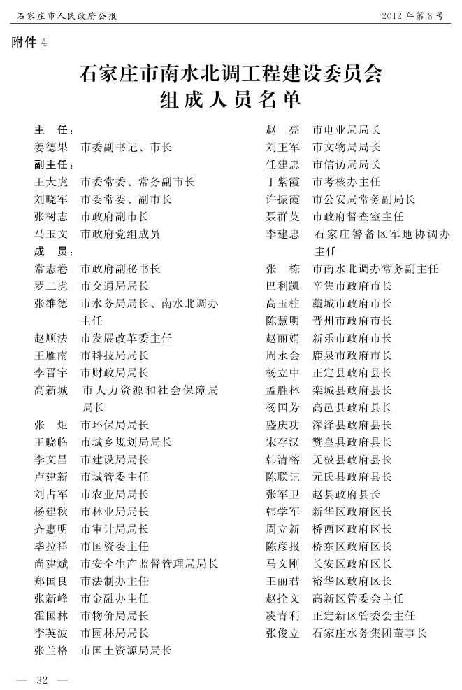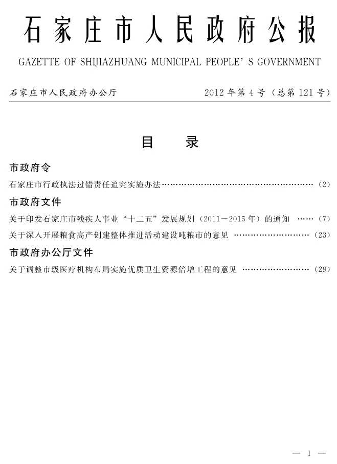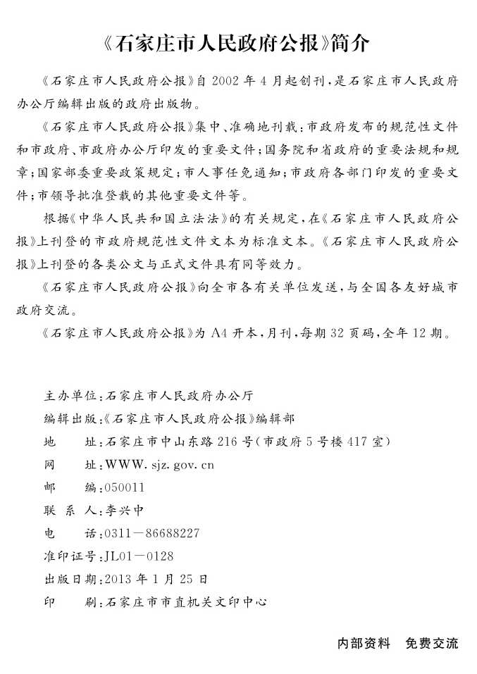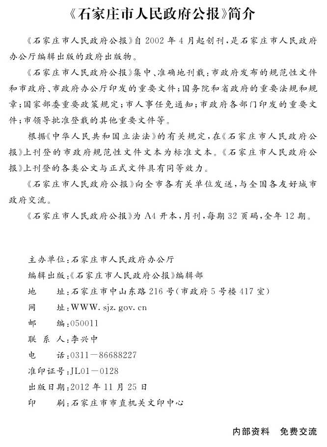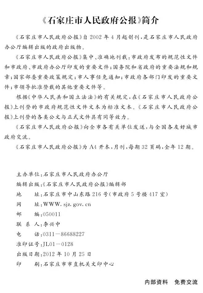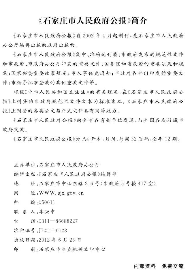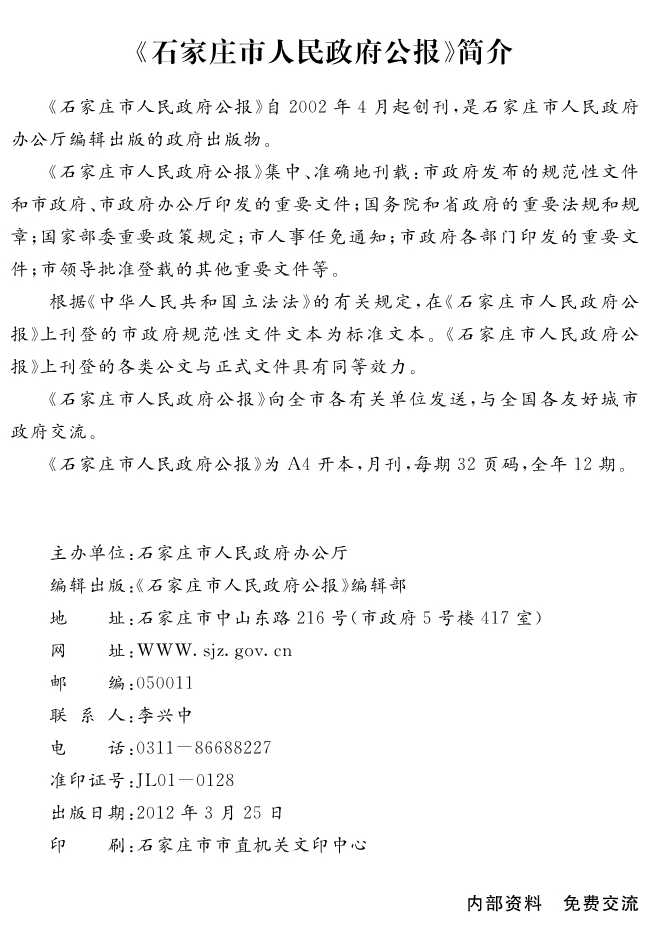 石家莊市人民政府公報2012年第4號