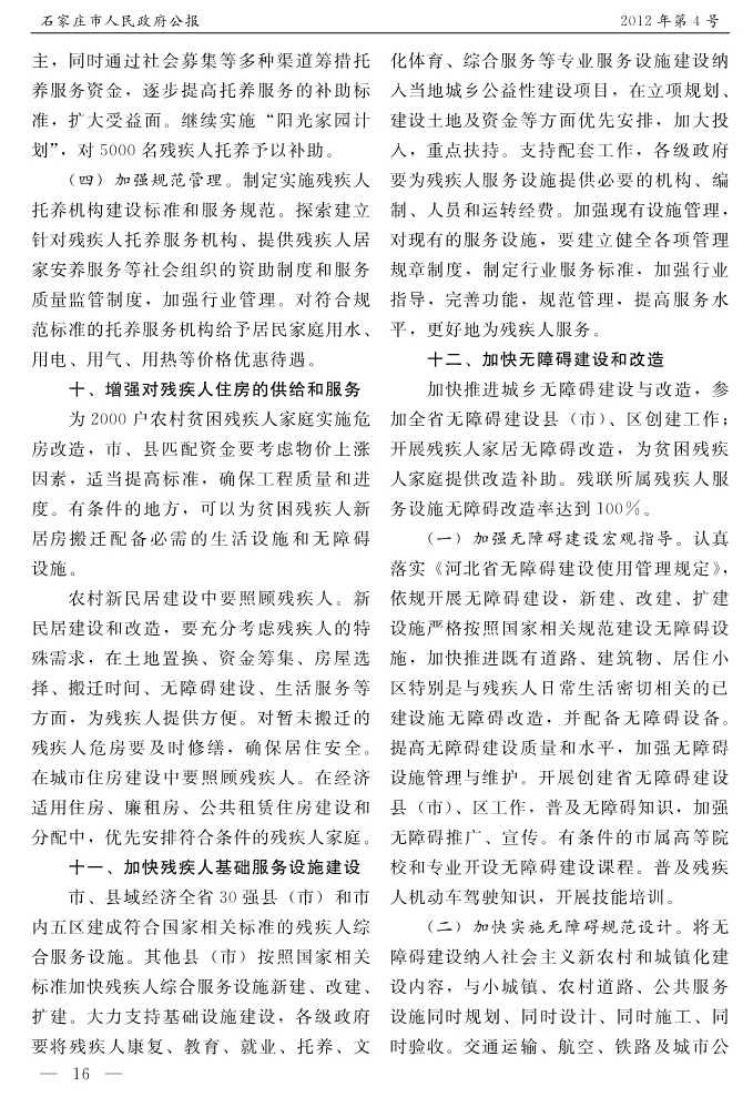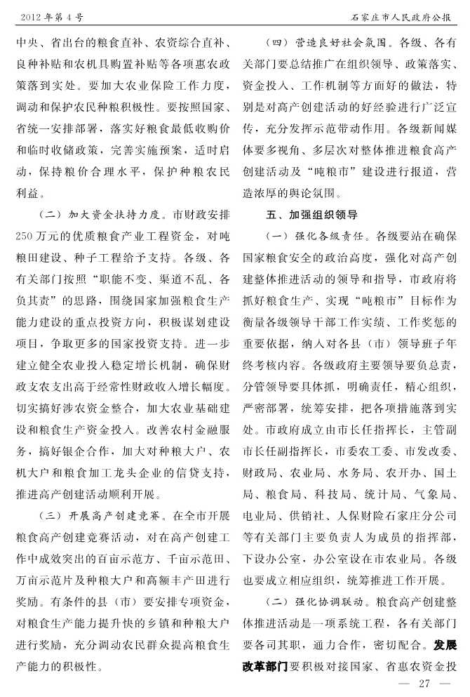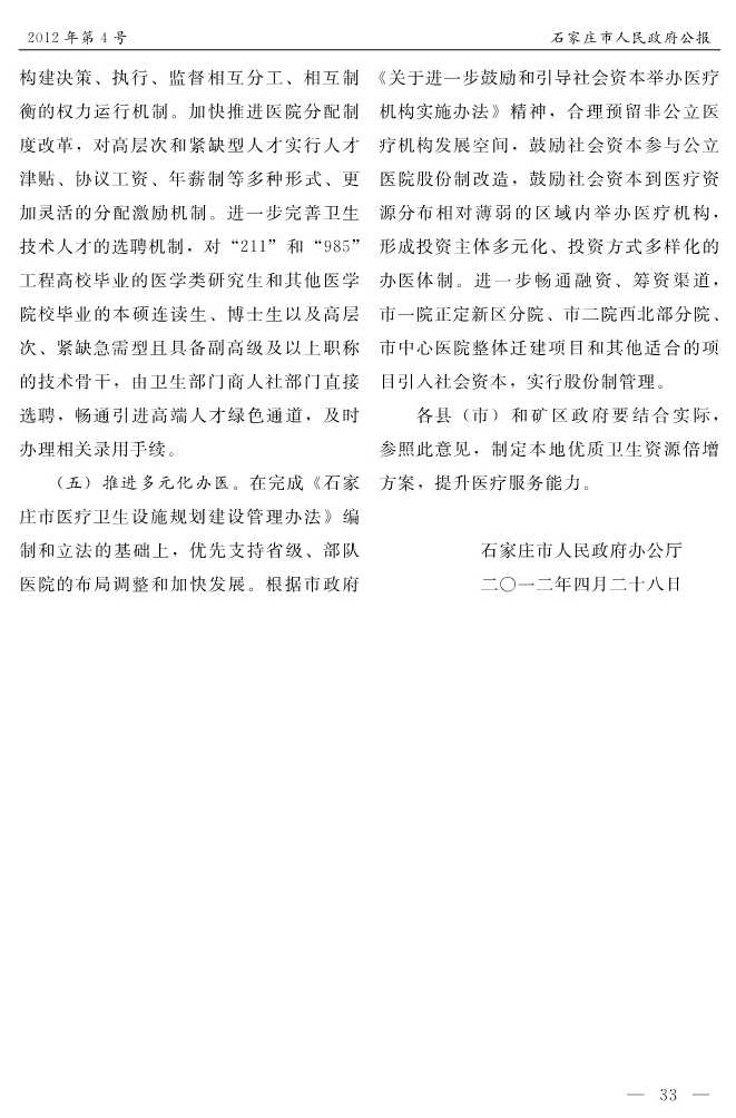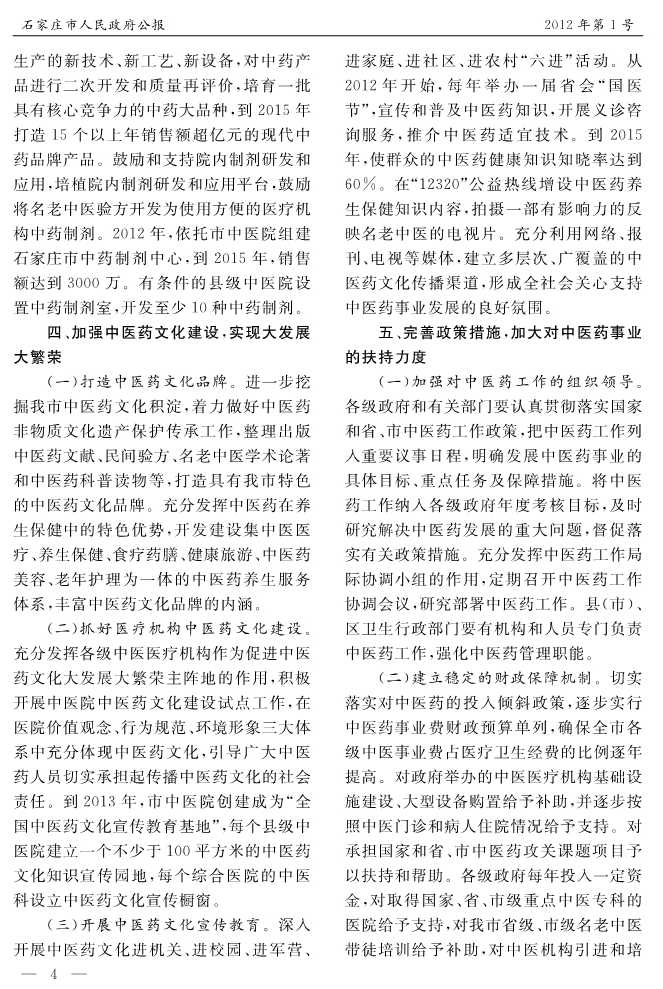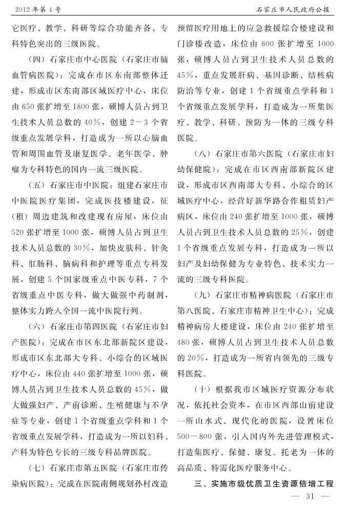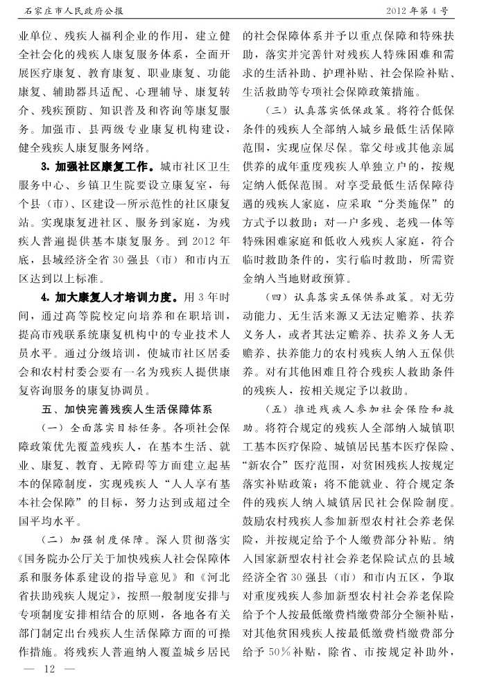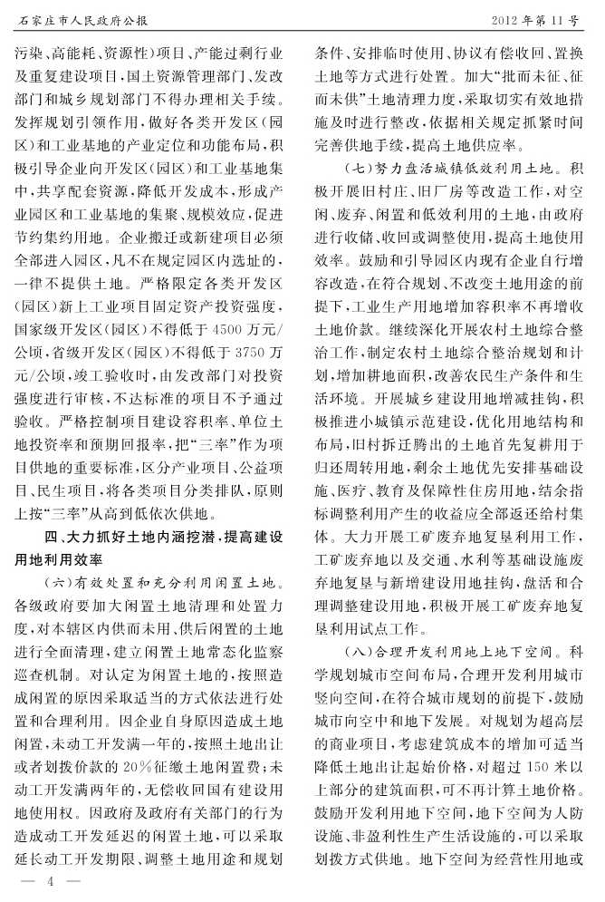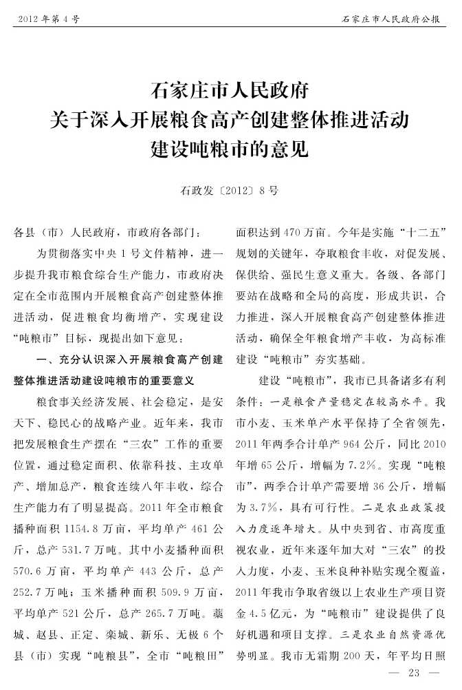 石家莊市人民政府公報2012年第4號
