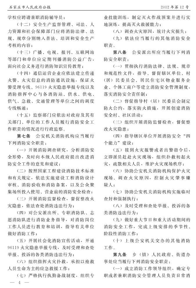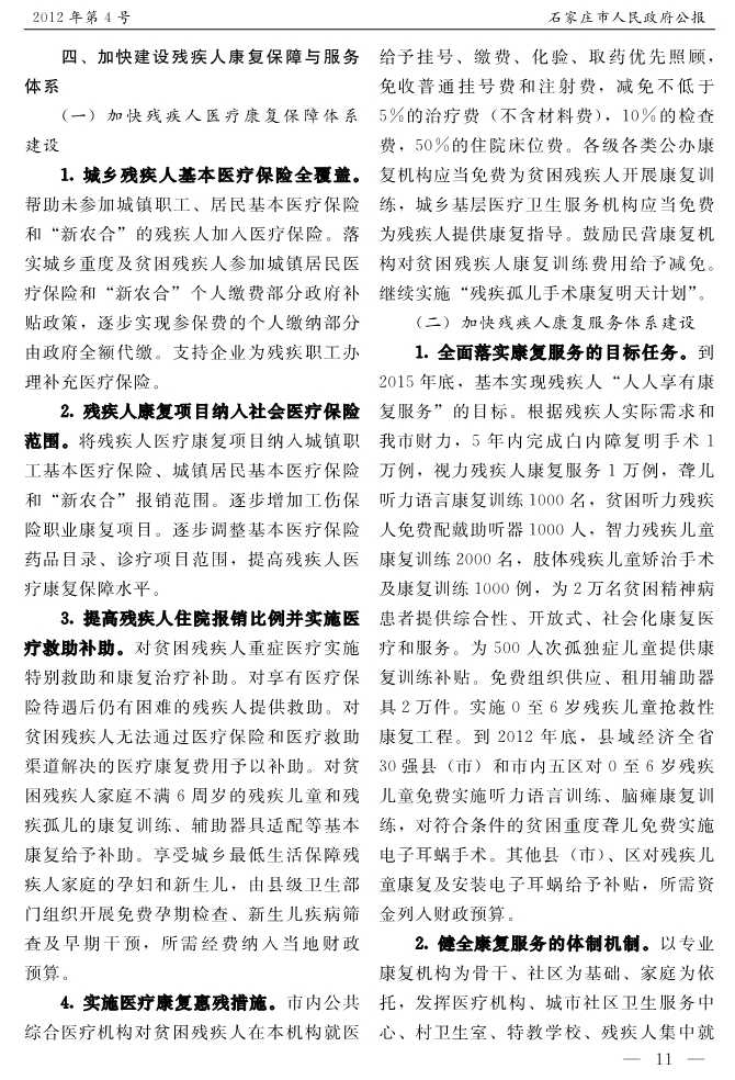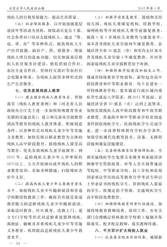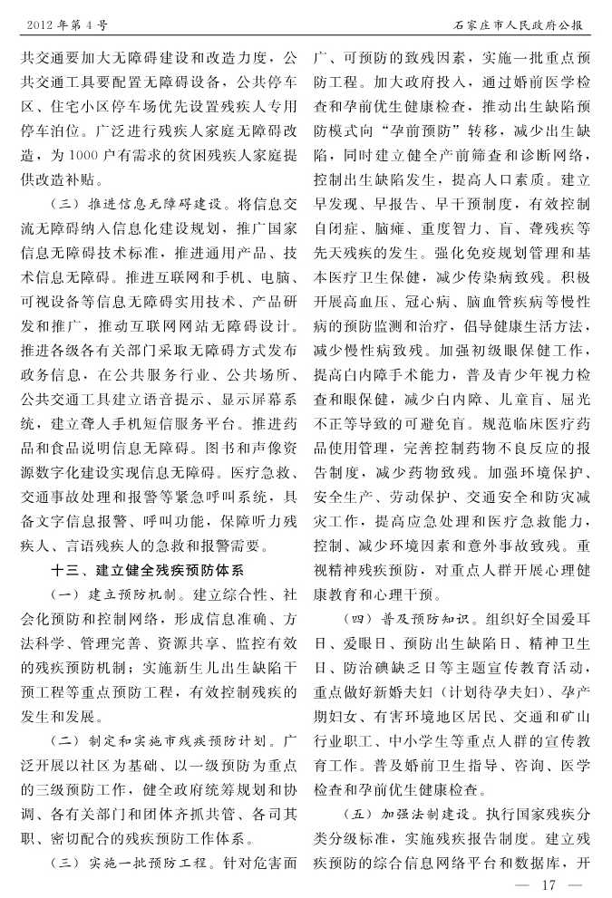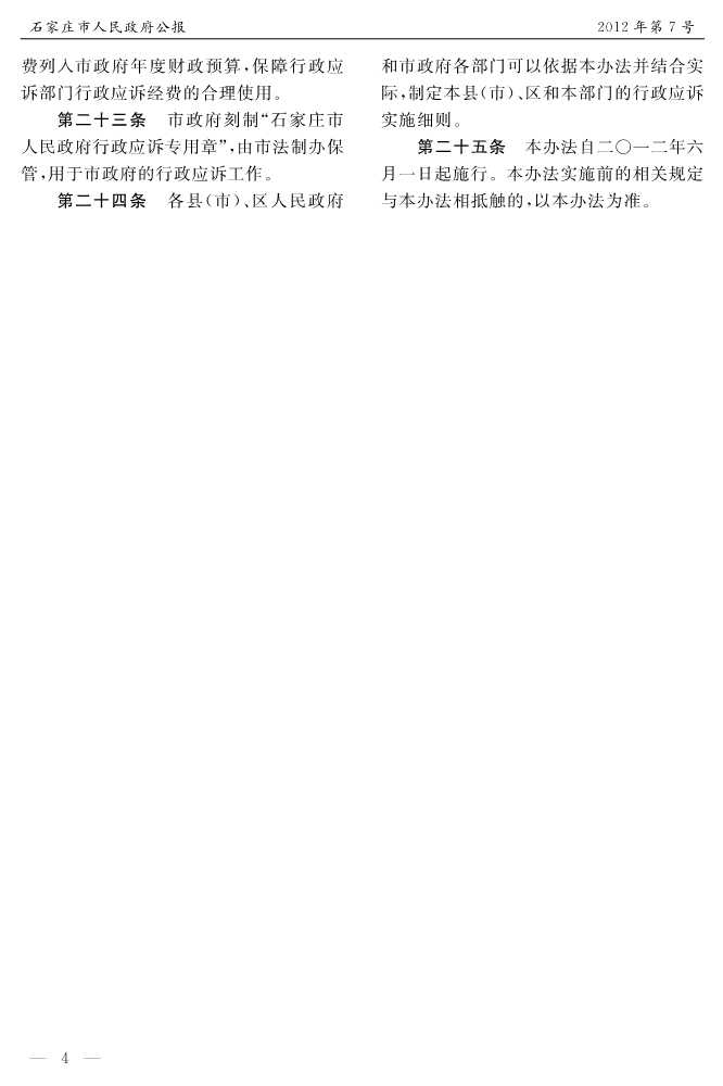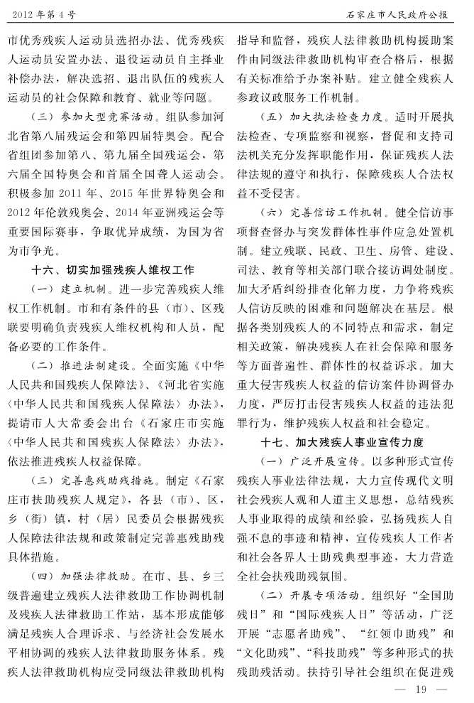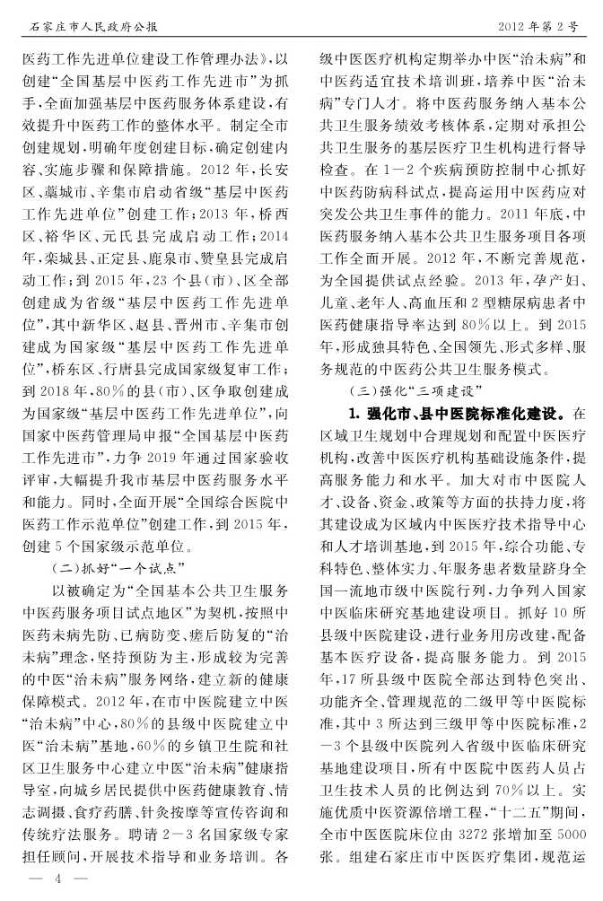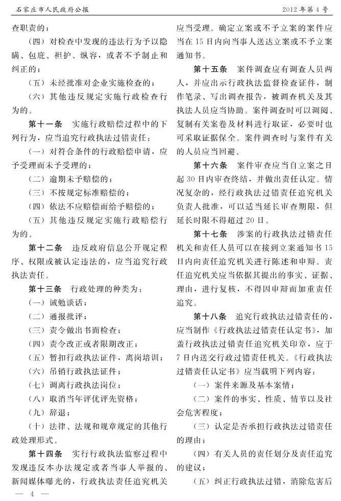 石家莊市人民政府公報2012年第4號