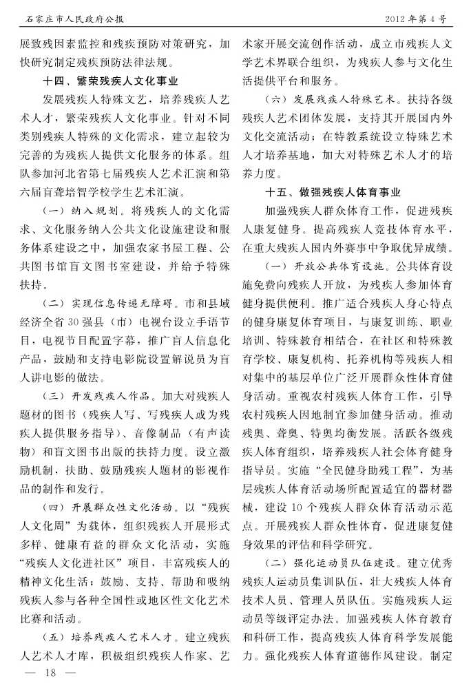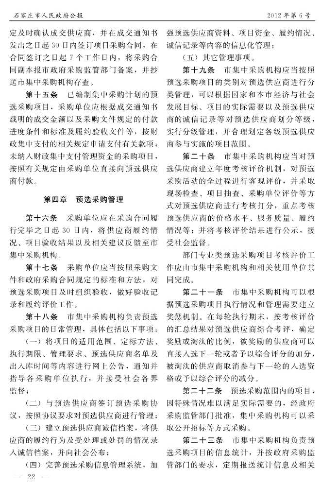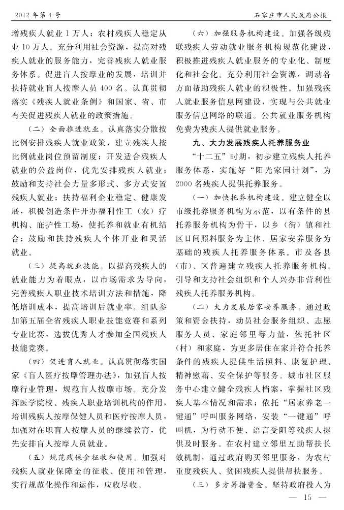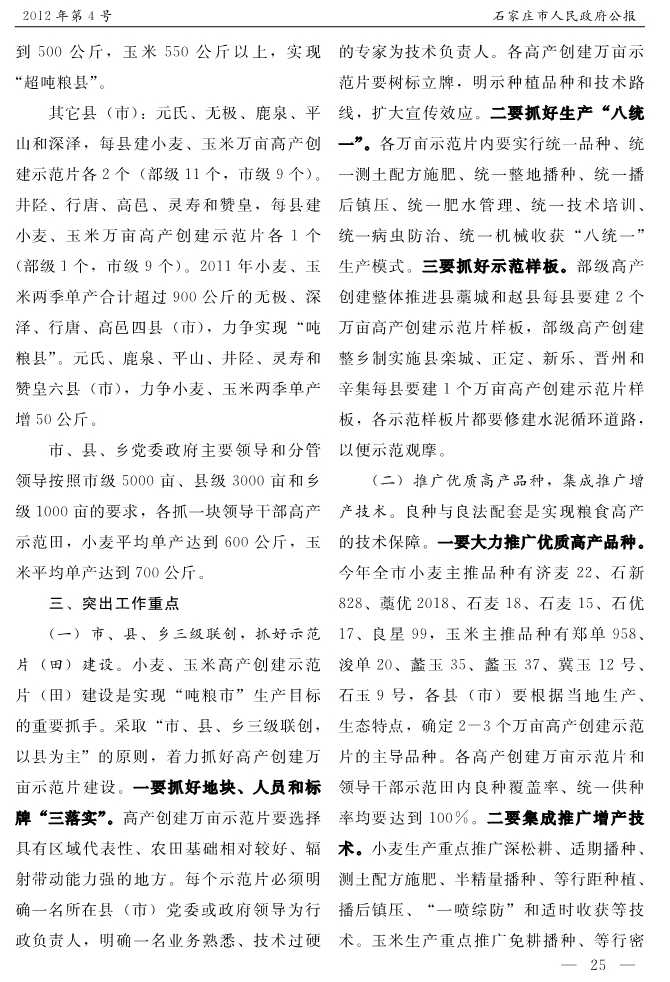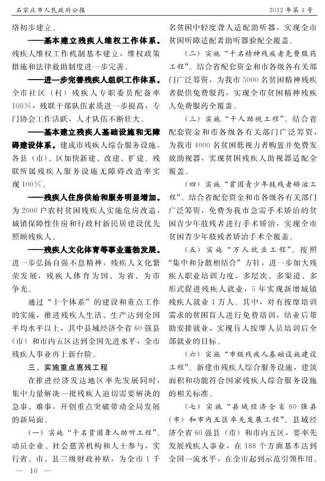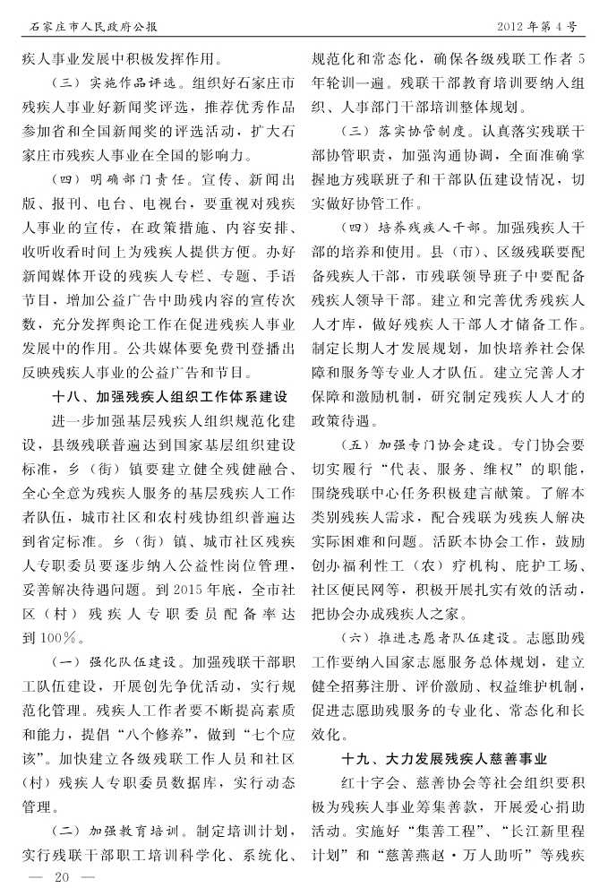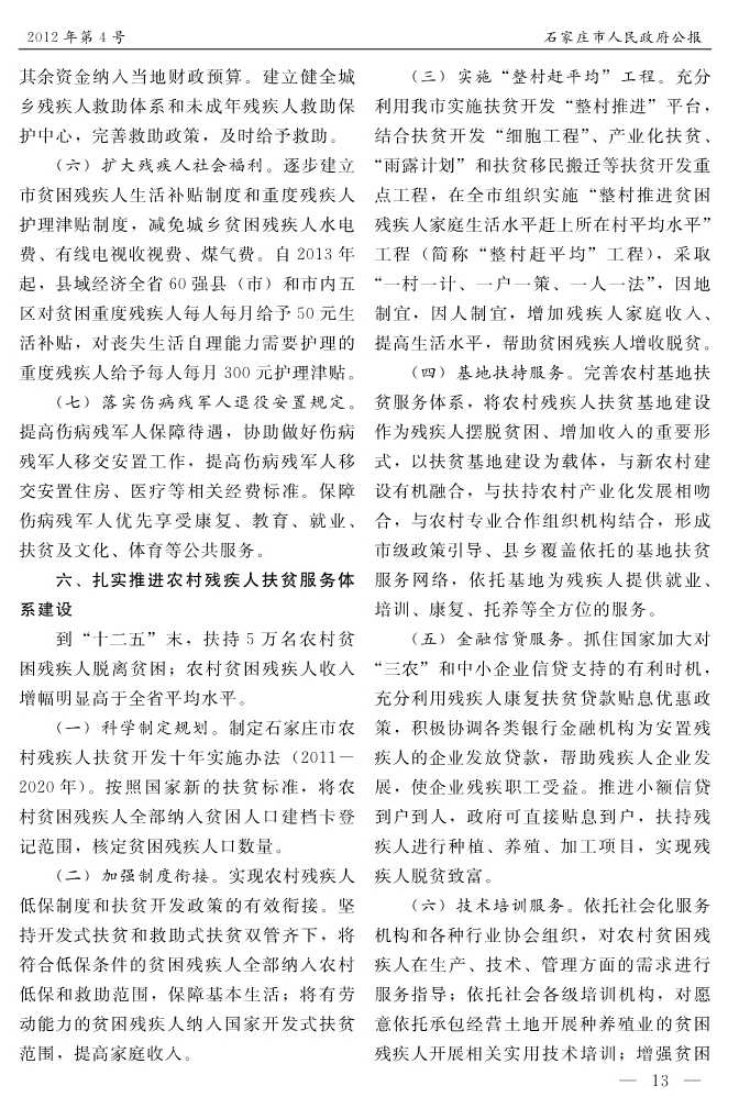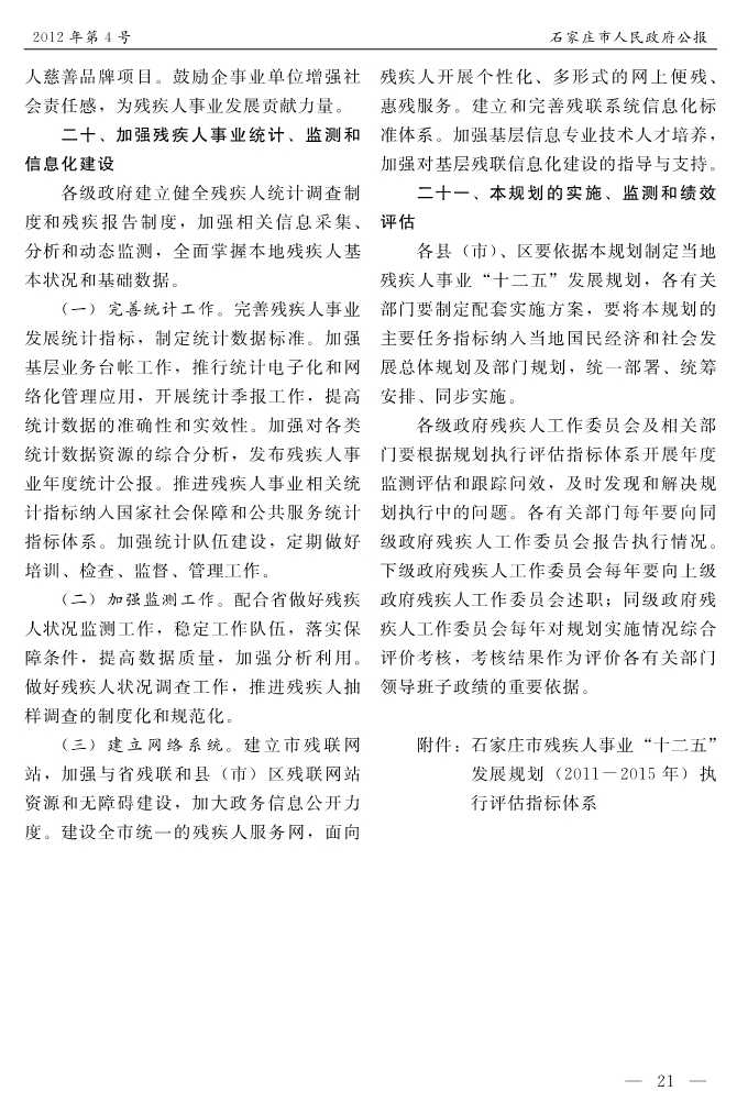 石家莊市人民政府公報2012年第4號