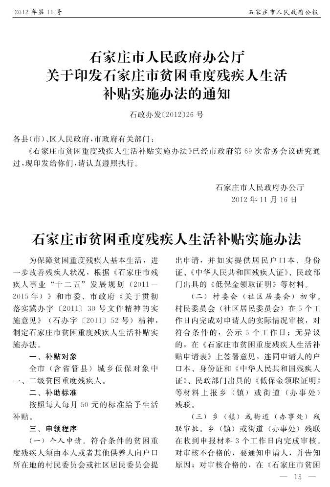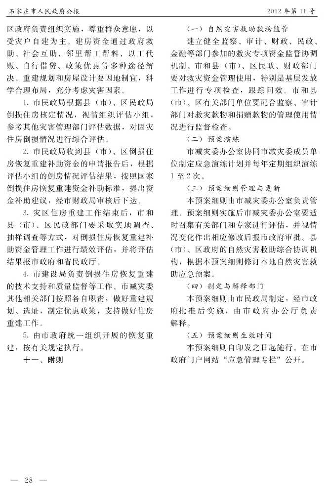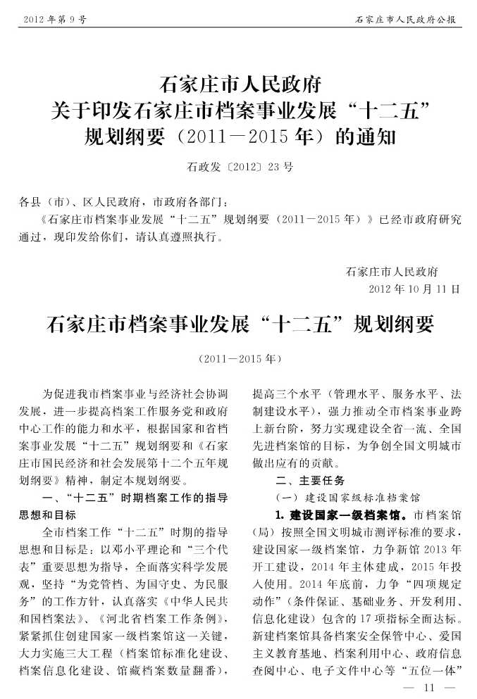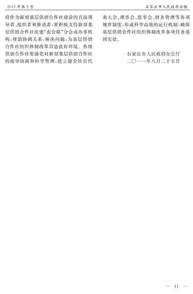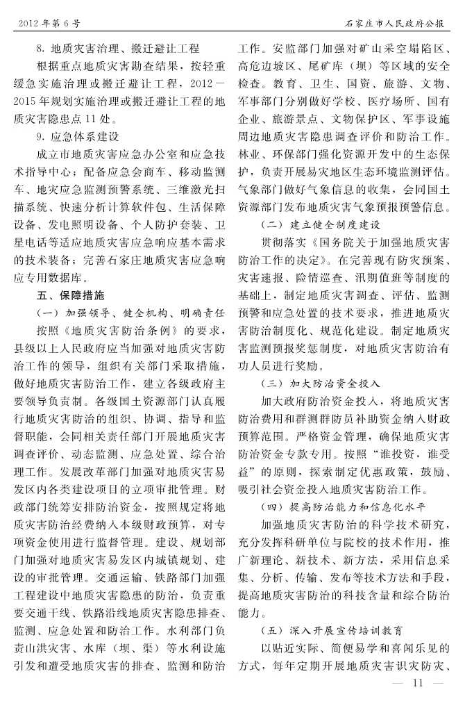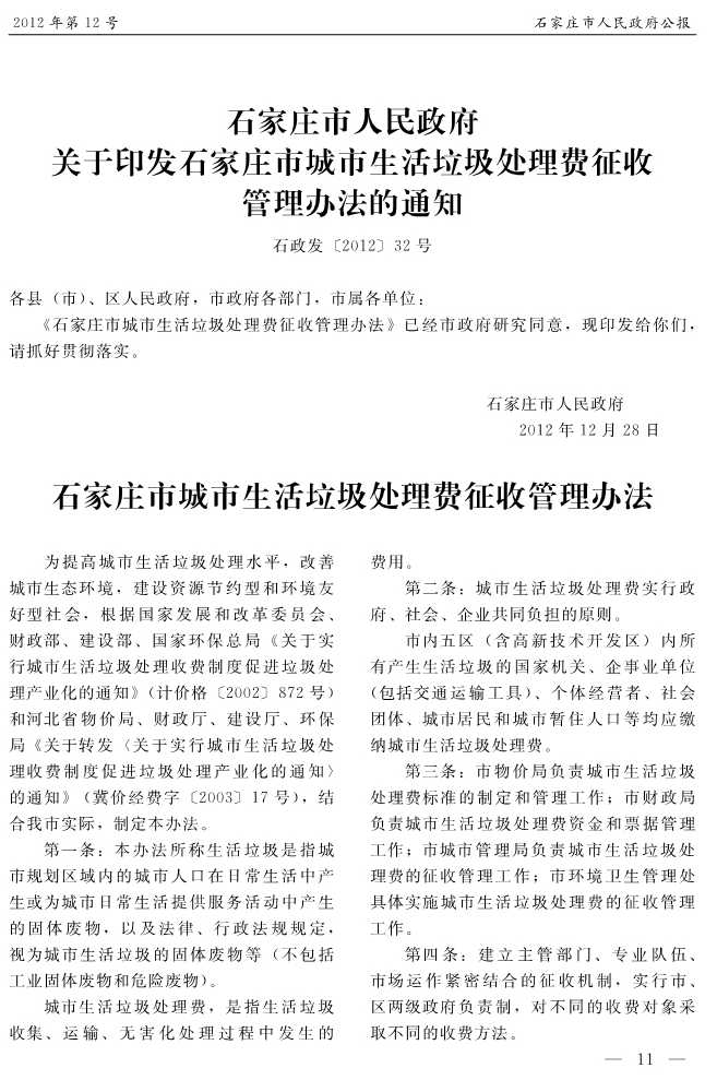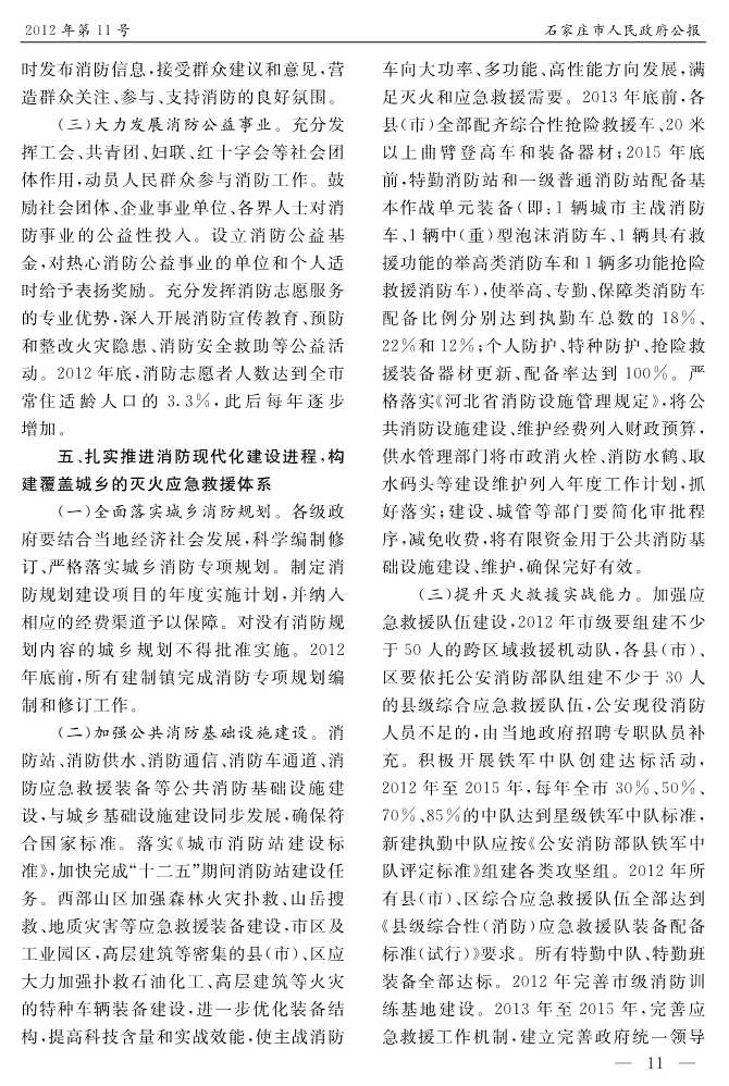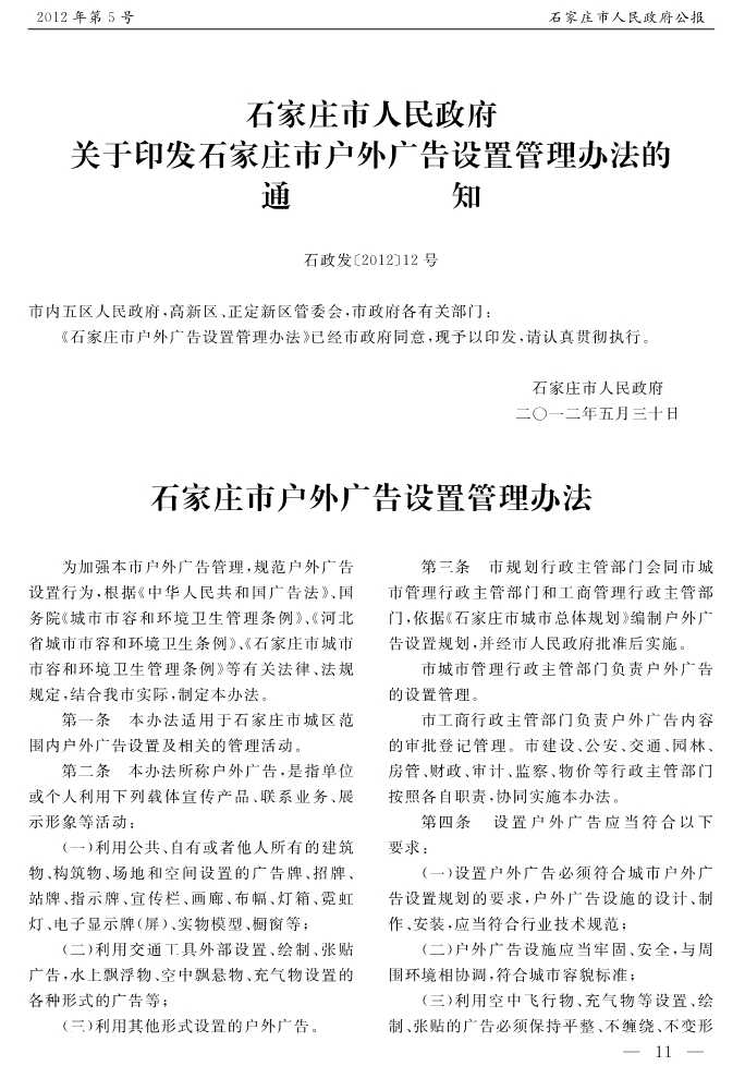 石家莊市人民政府公報2012年第11號
