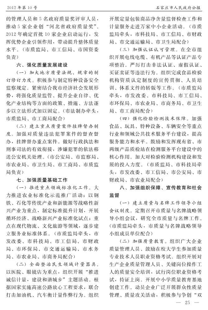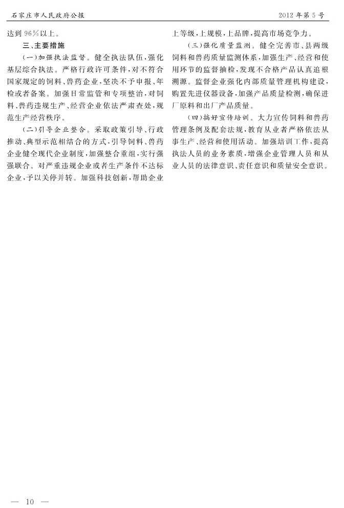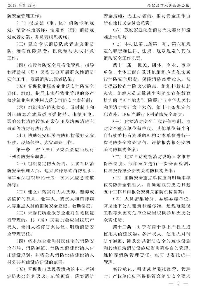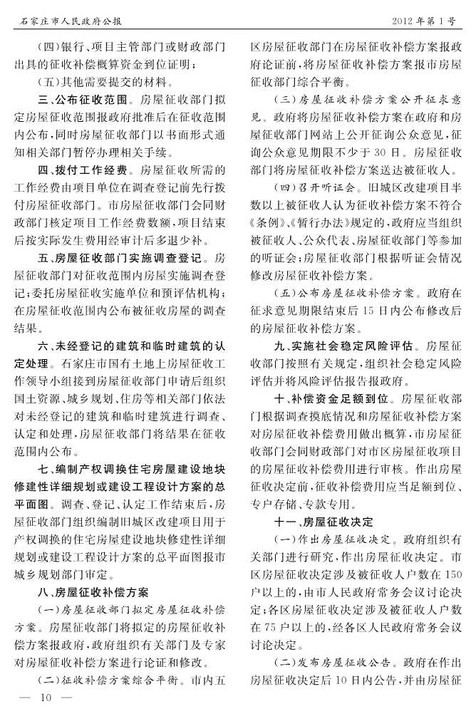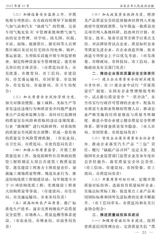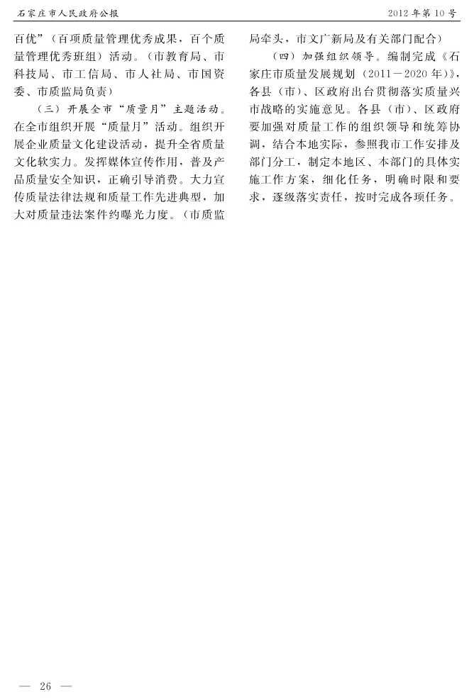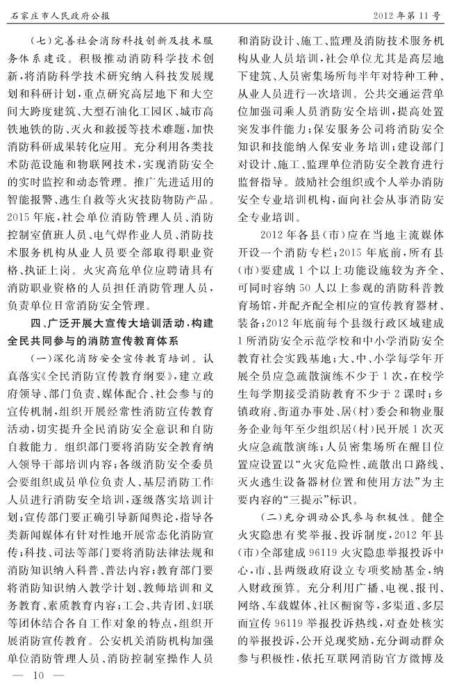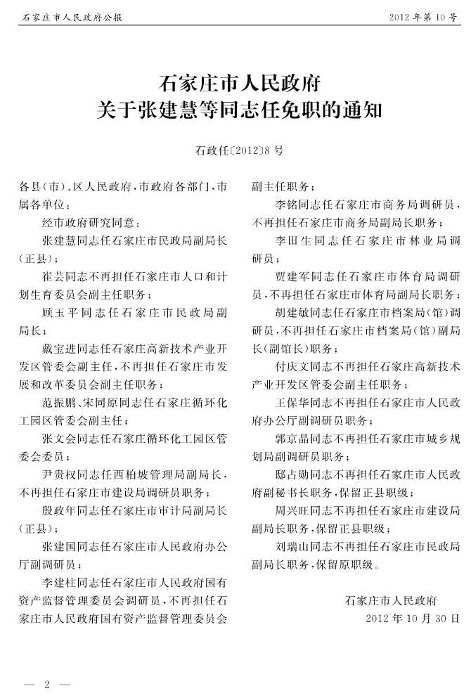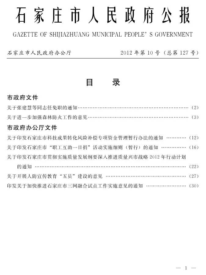 石家莊市人民政府公報2012年第10號