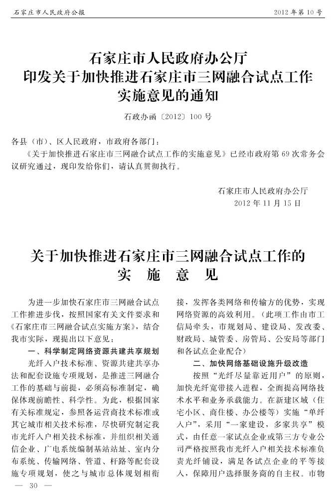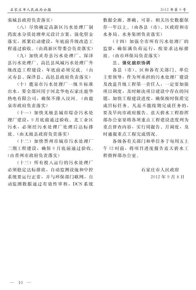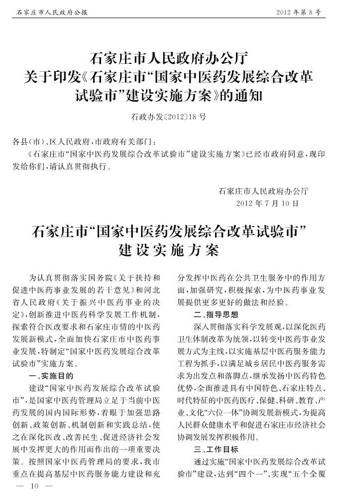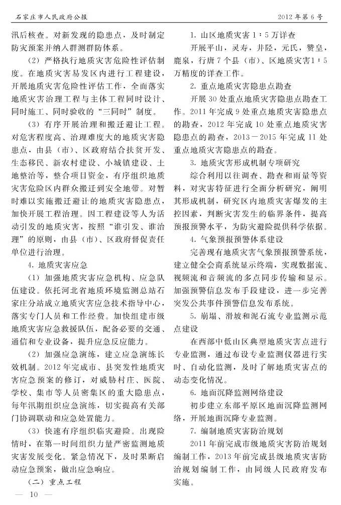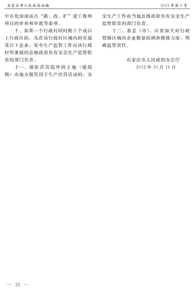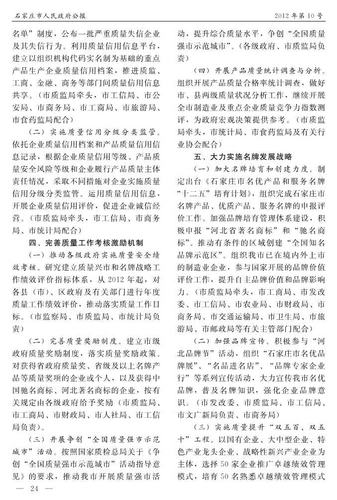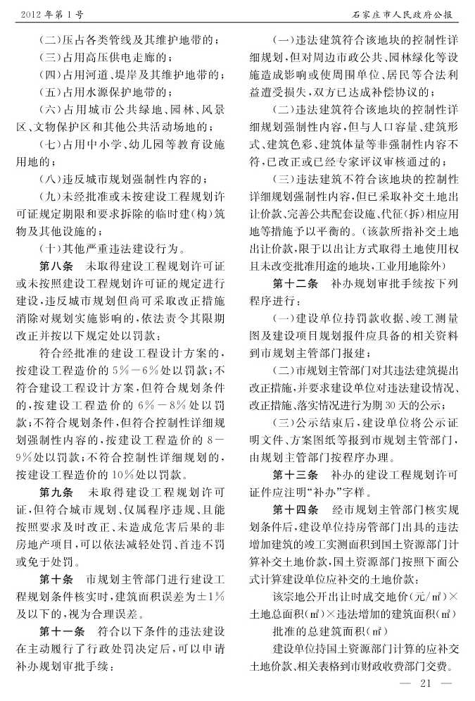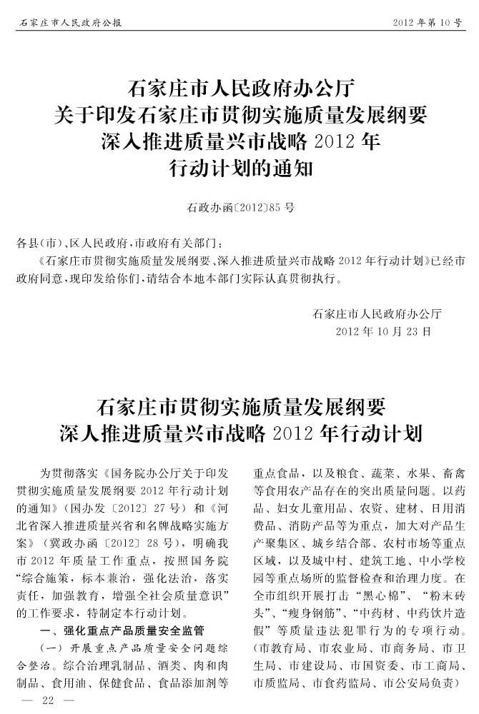 石家莊市人民政府公報2012年第10號