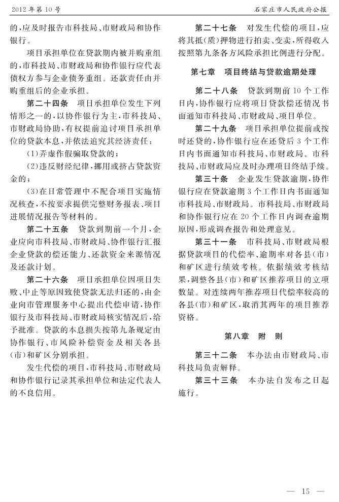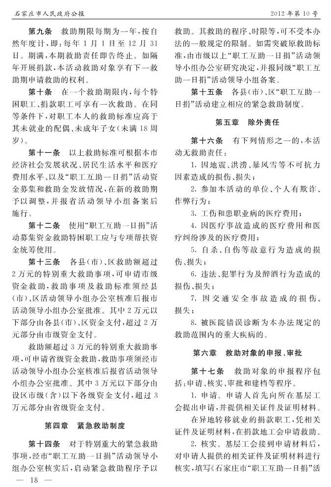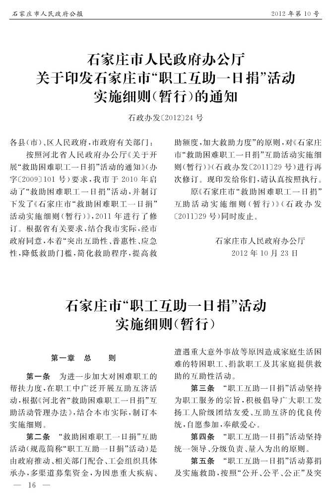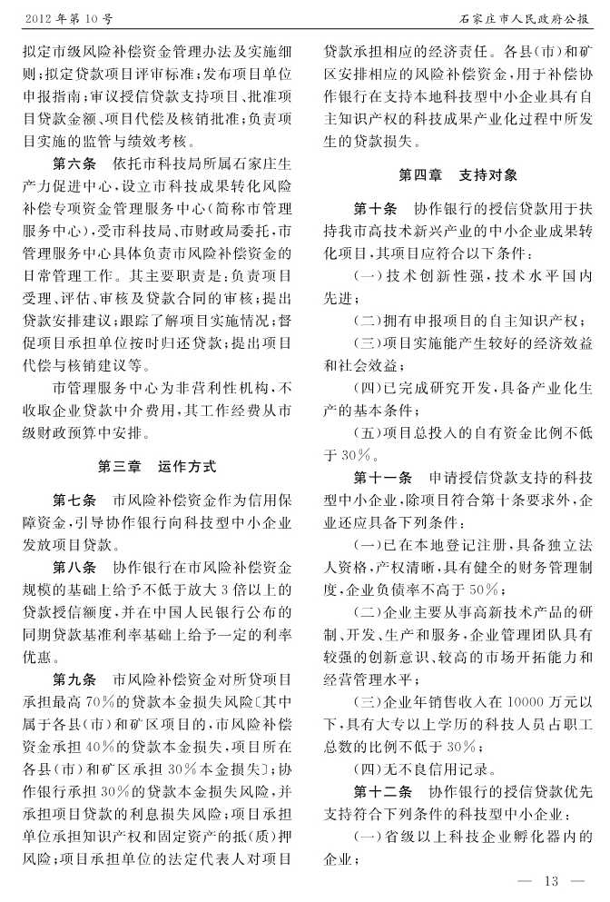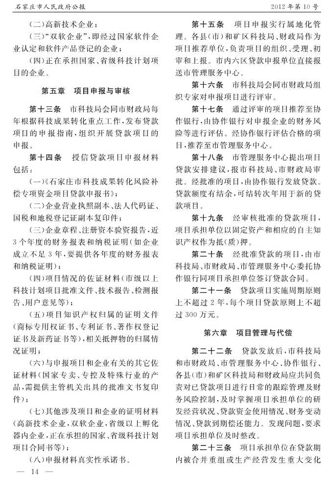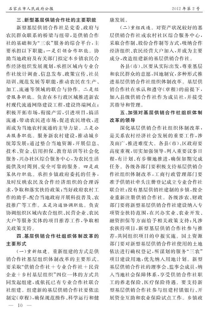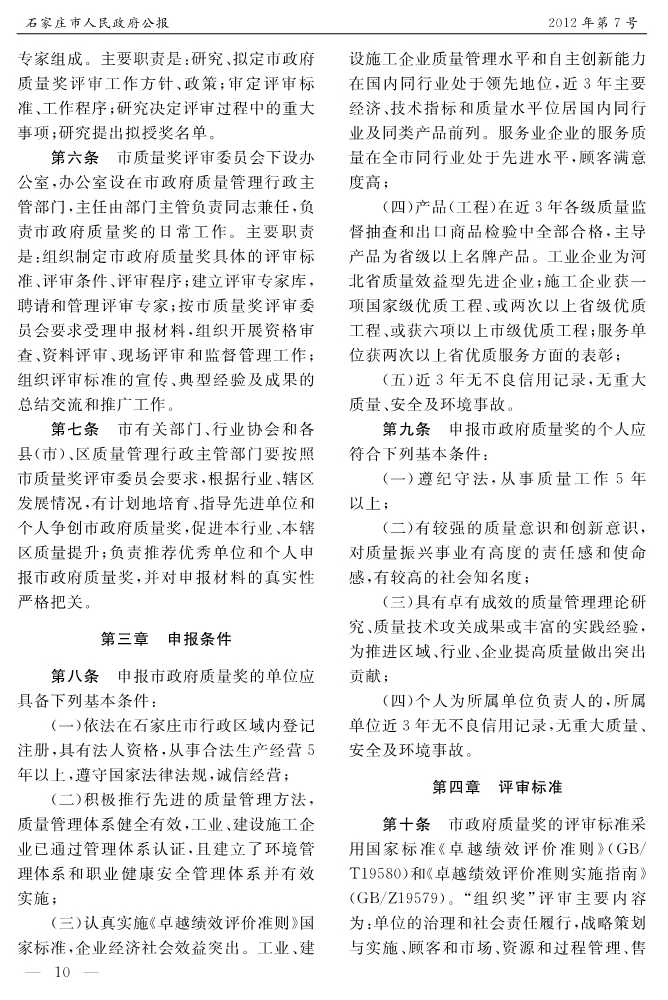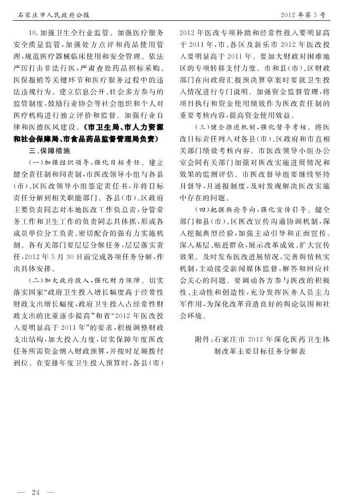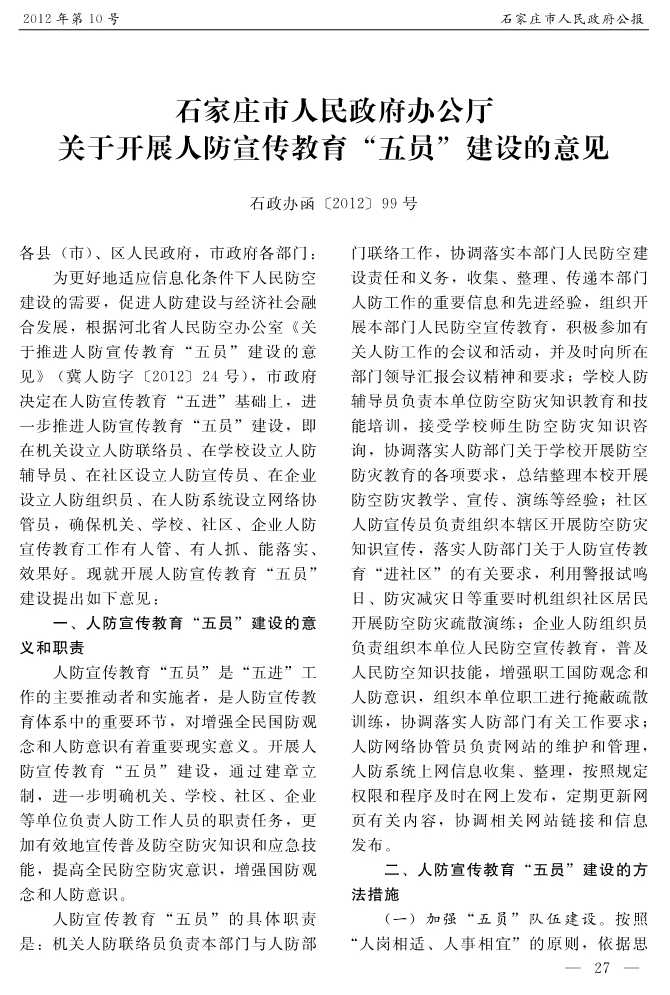 石家莊市人民政府公報2012年第10號