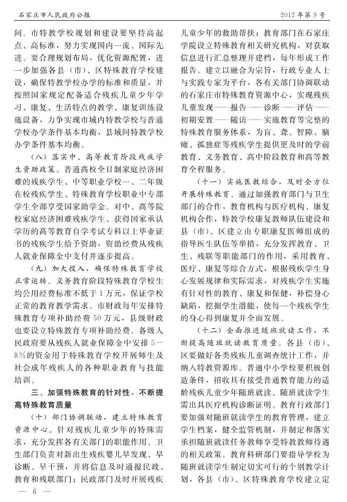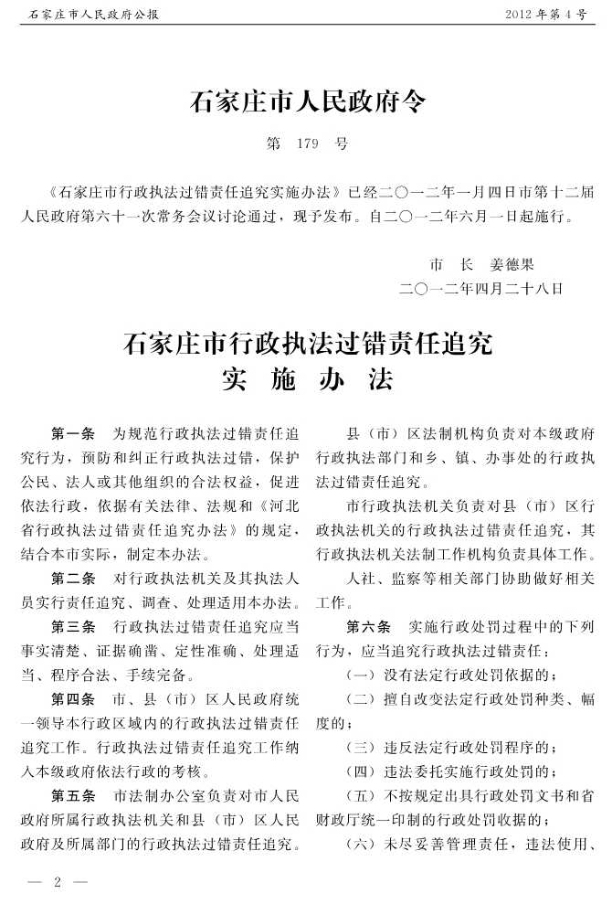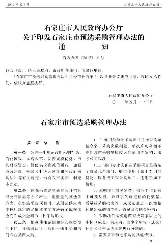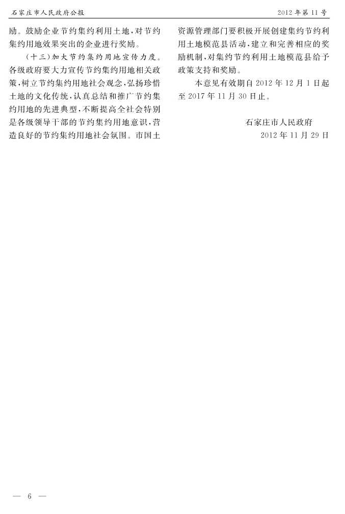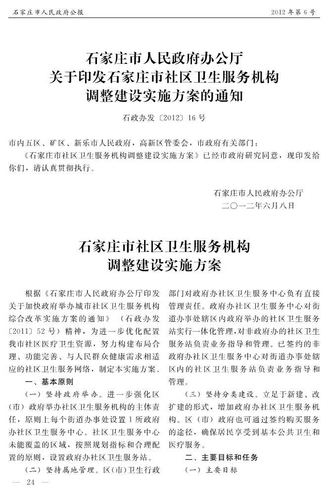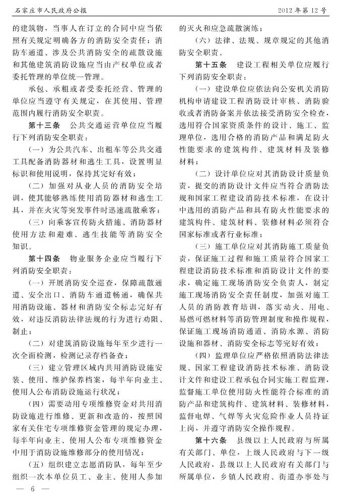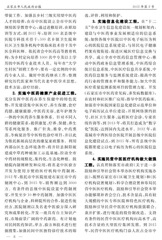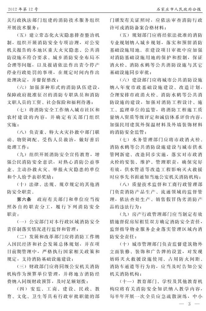 石家莊市人民政府公報2012年第6號
