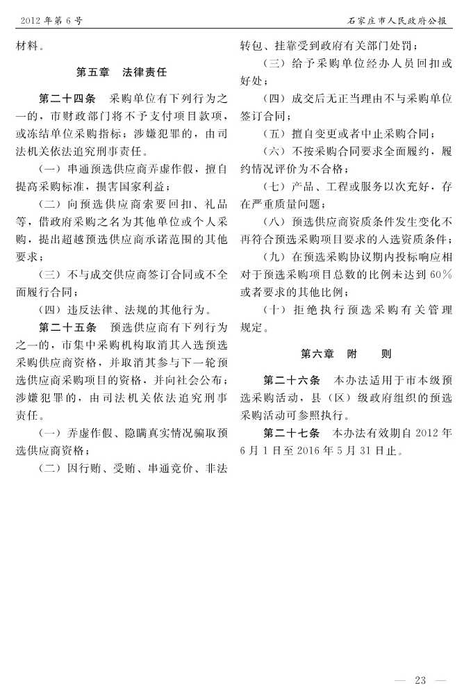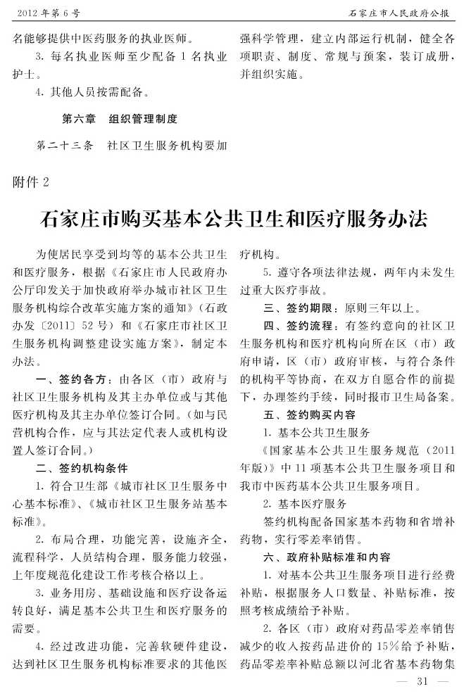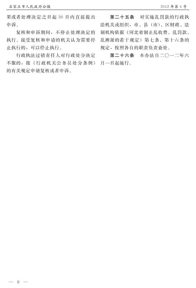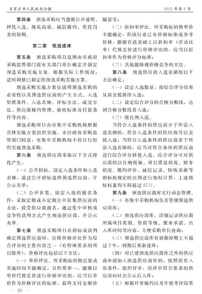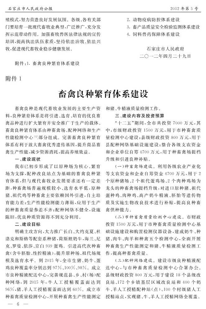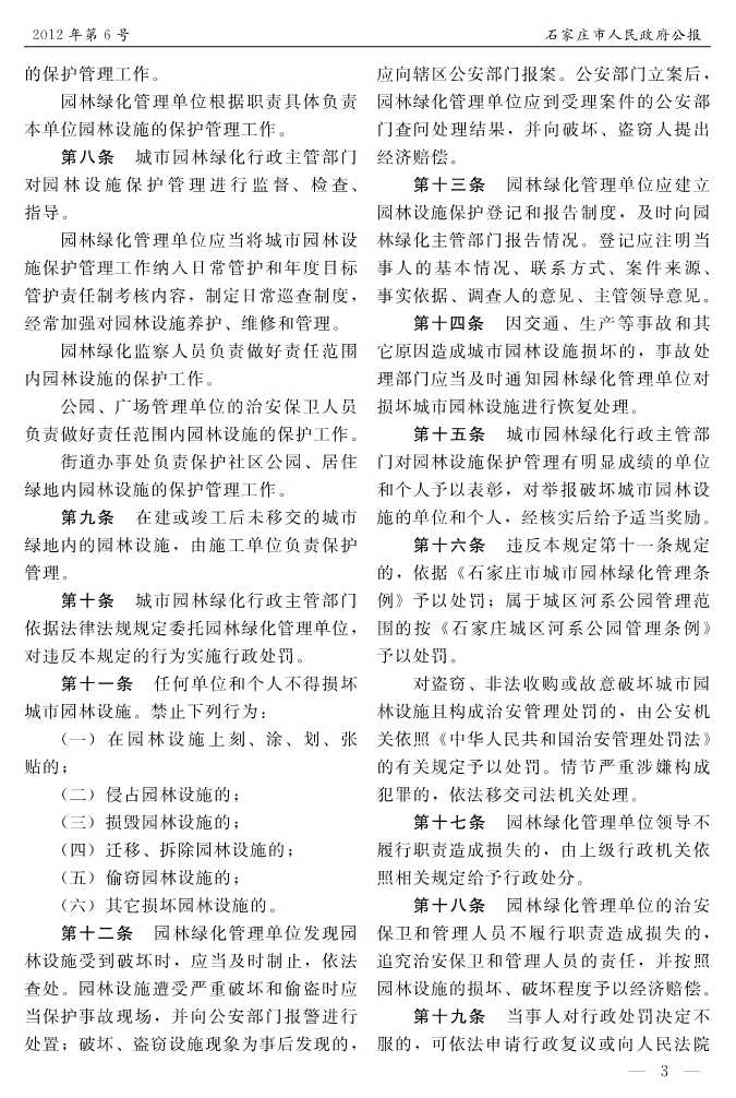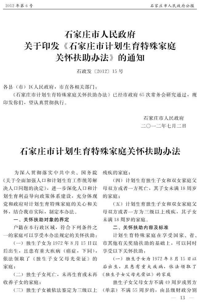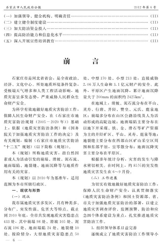 石家莊市人民政府公報2012年第6號