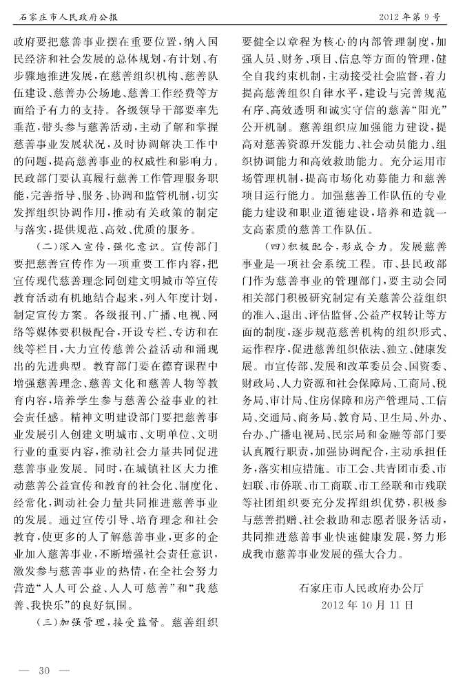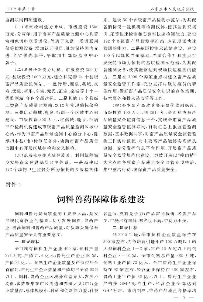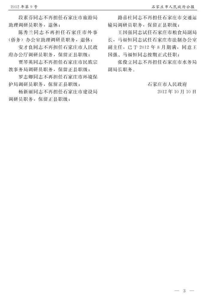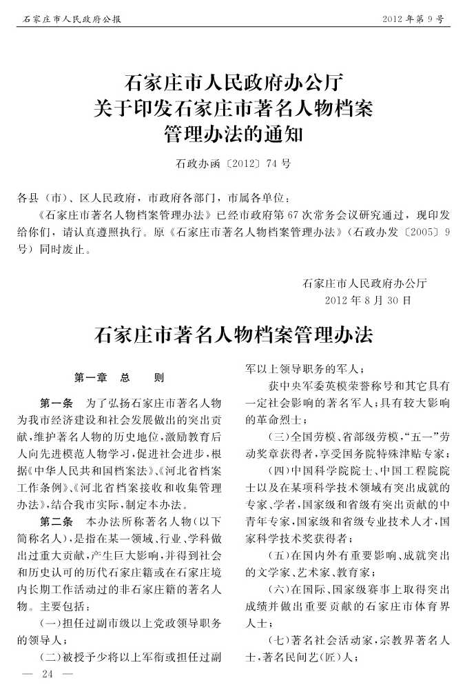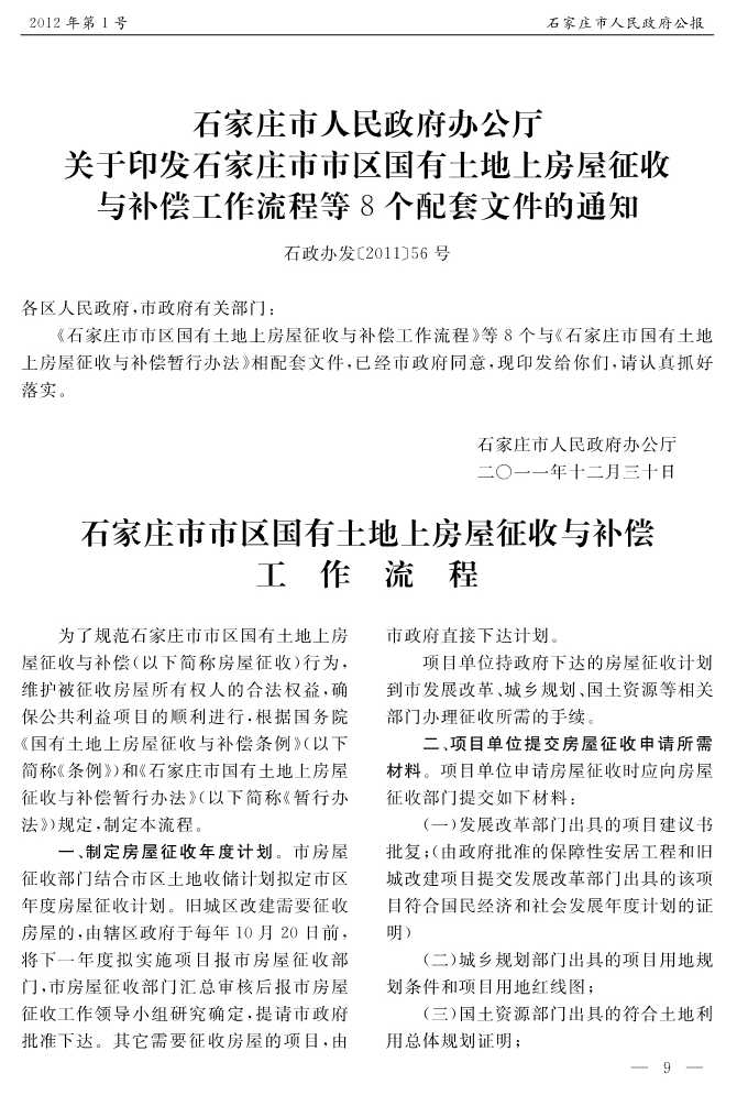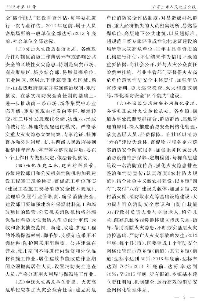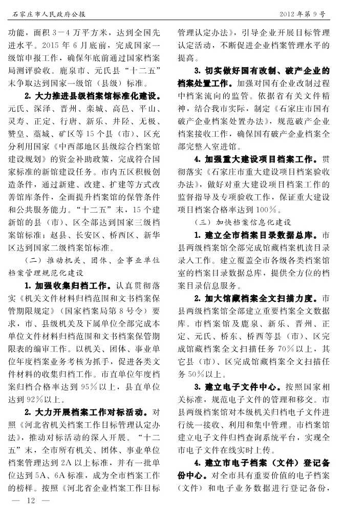 石家莊市人民政府公報2012年第9號