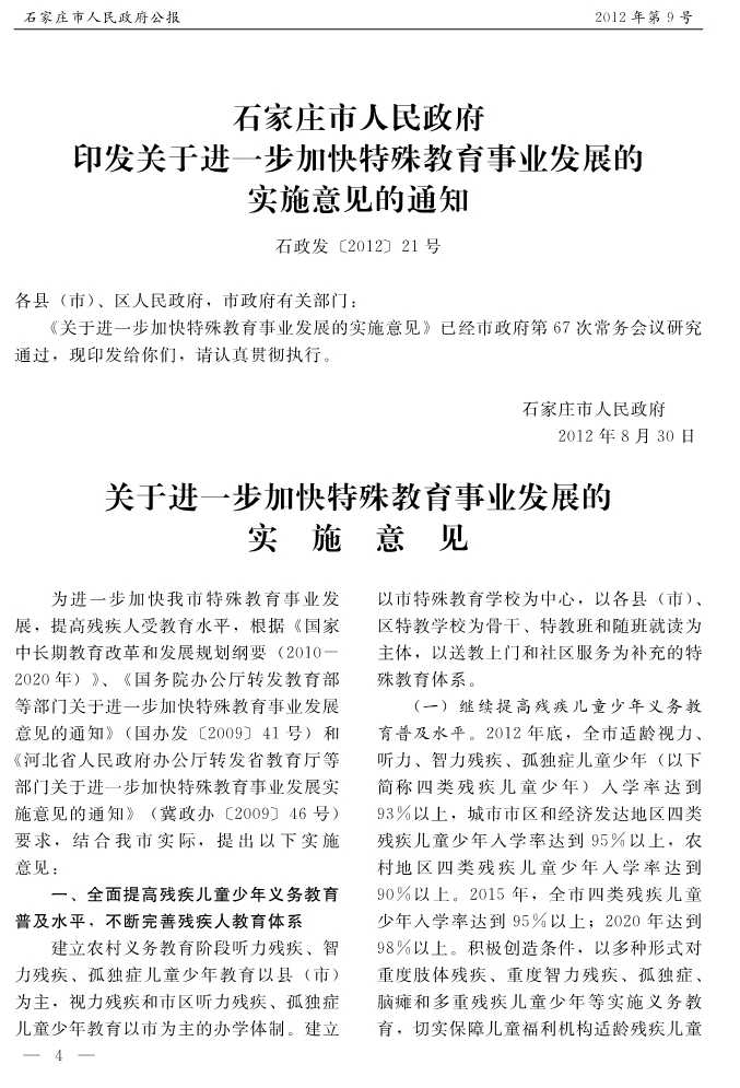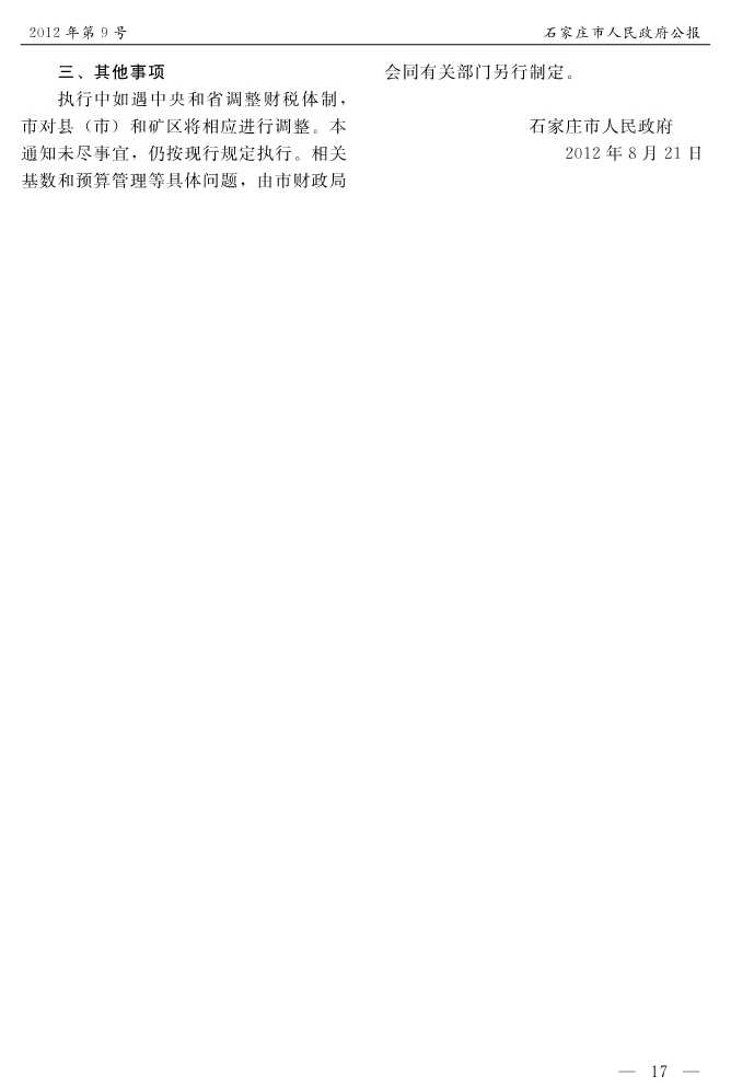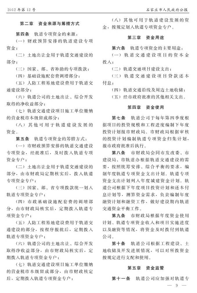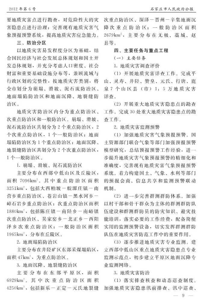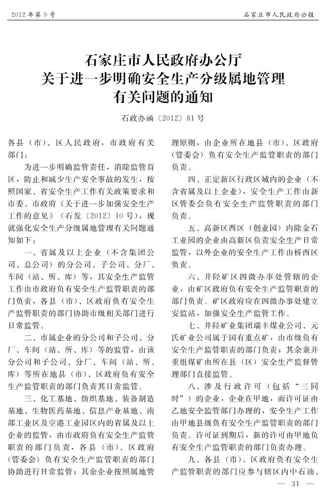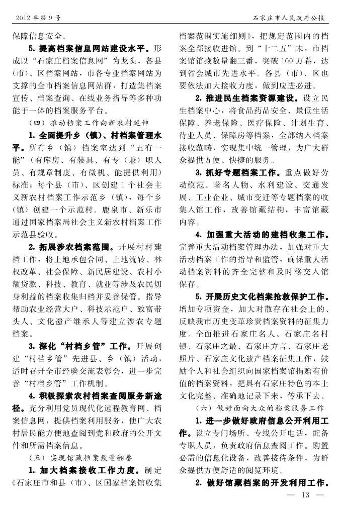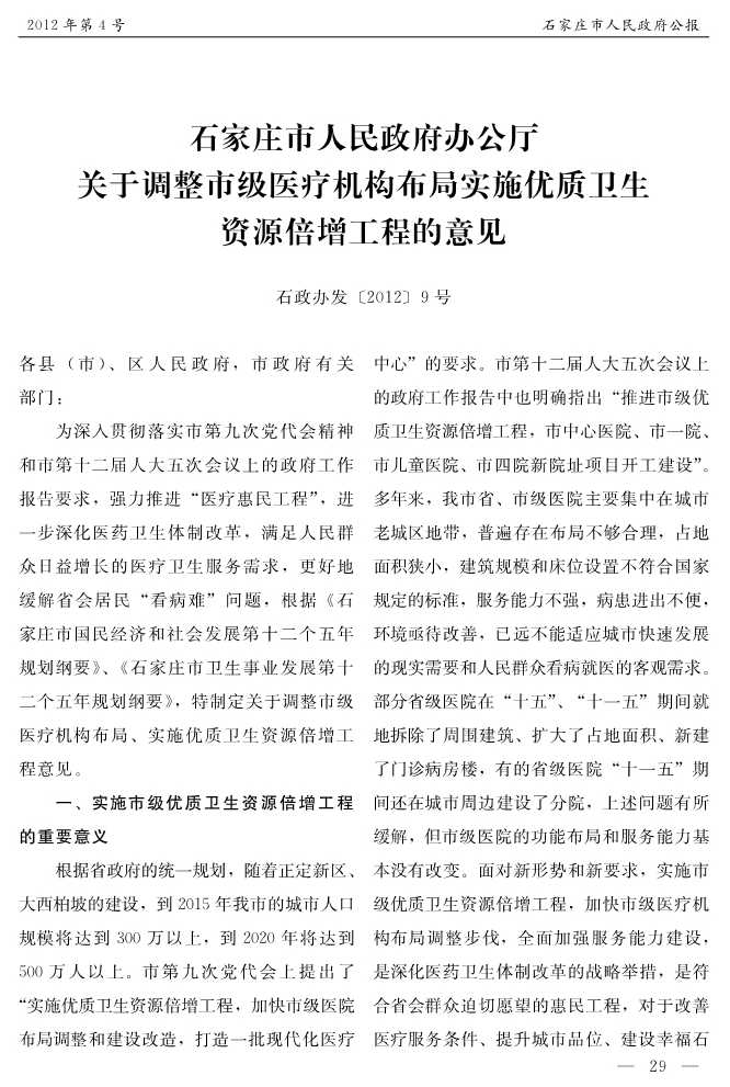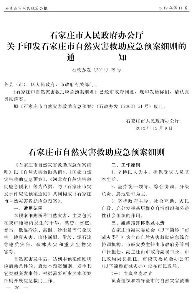 石家莊市人民政府公報2012年第9號