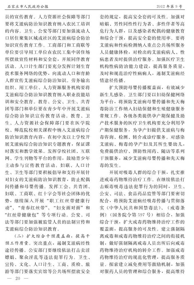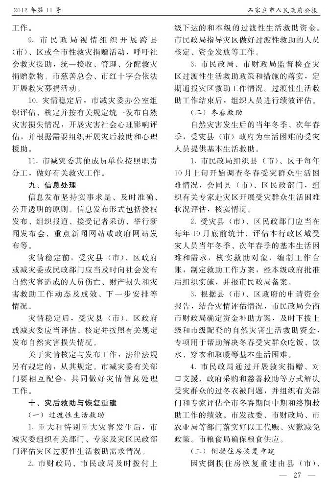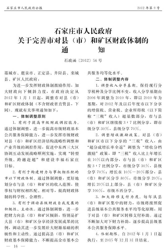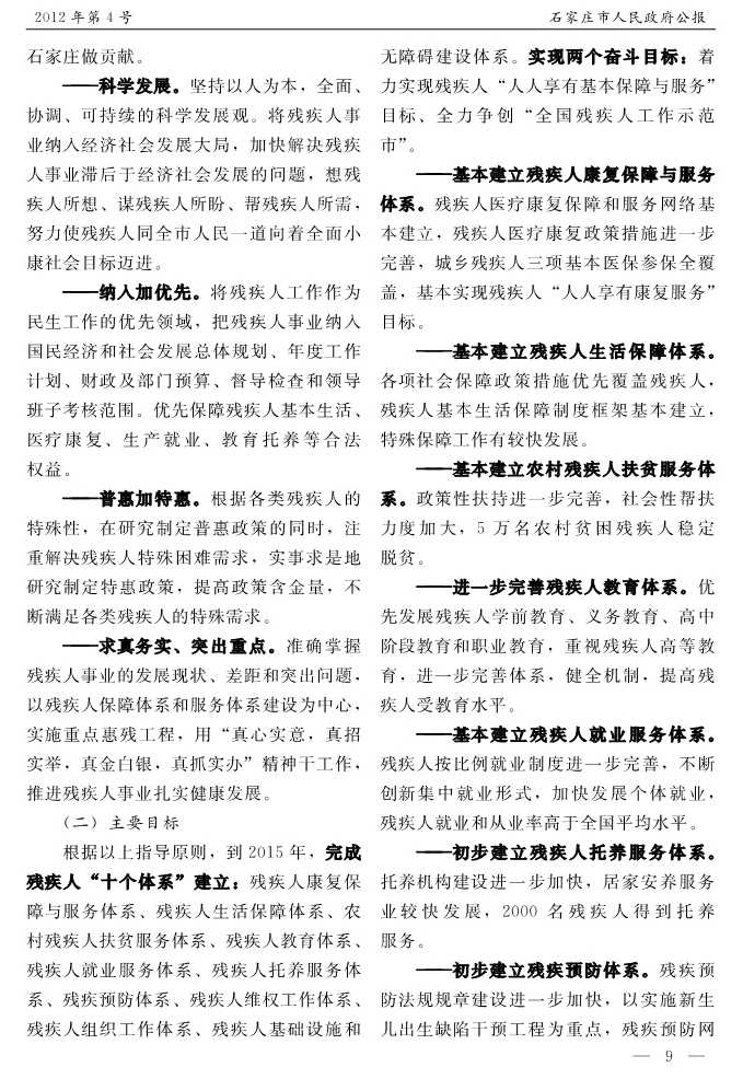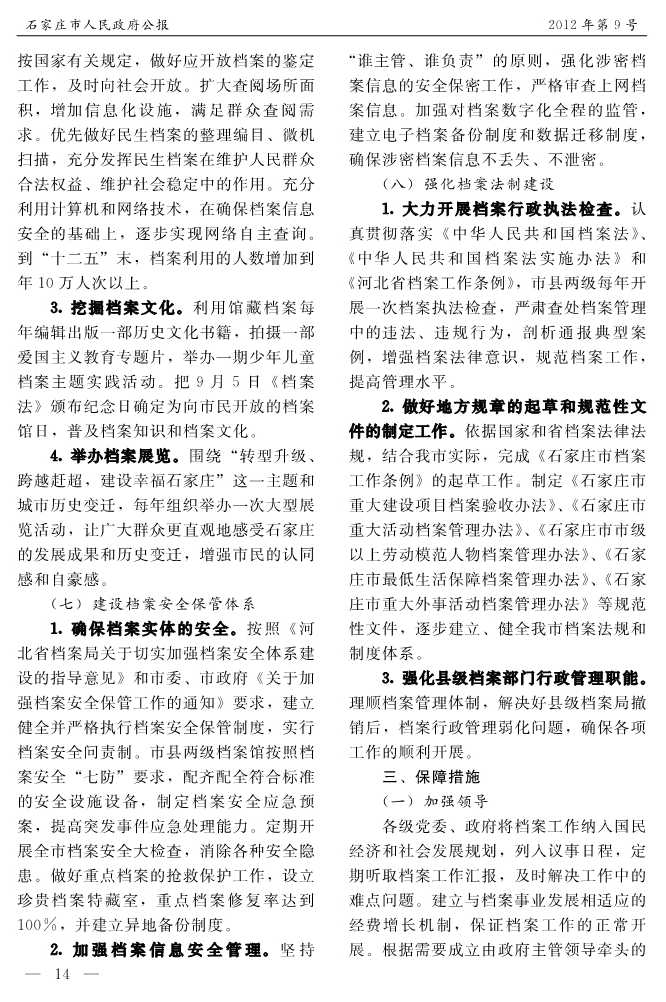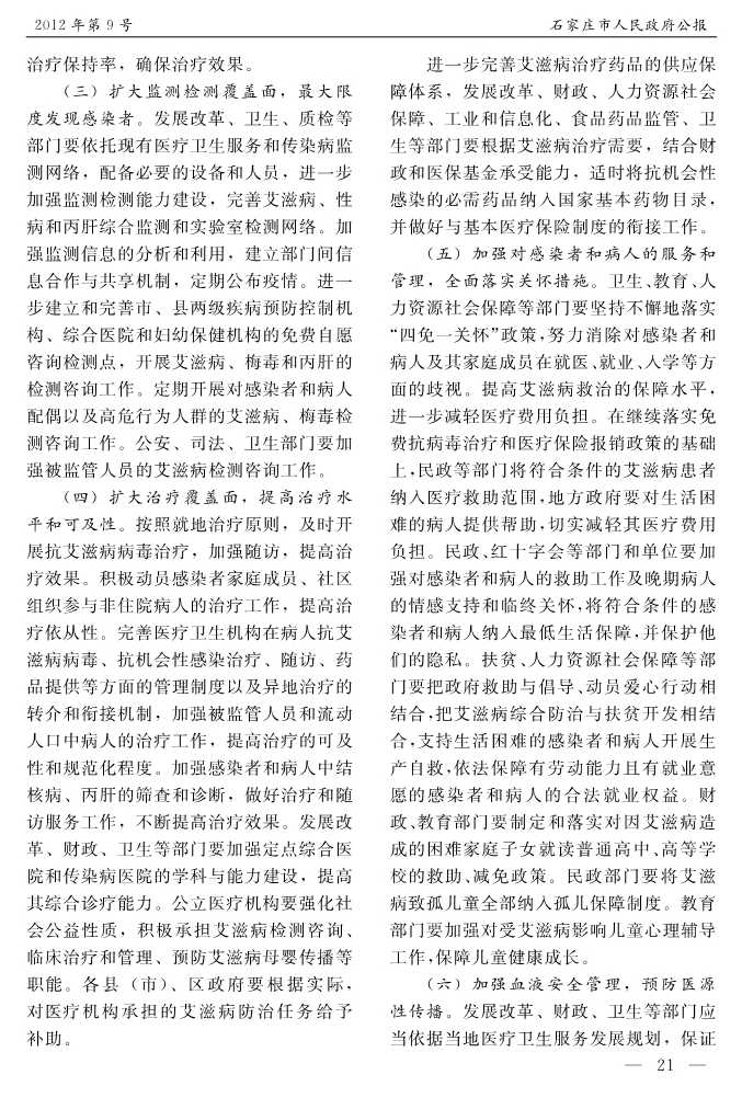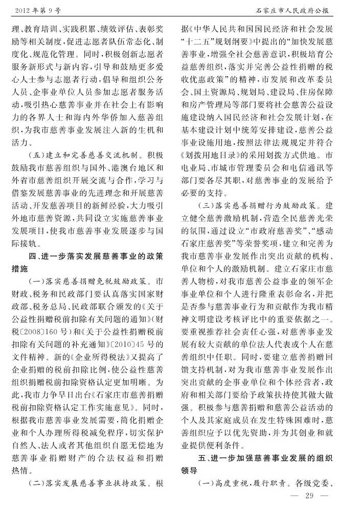 石家莊市人民政府公報2012年第9號