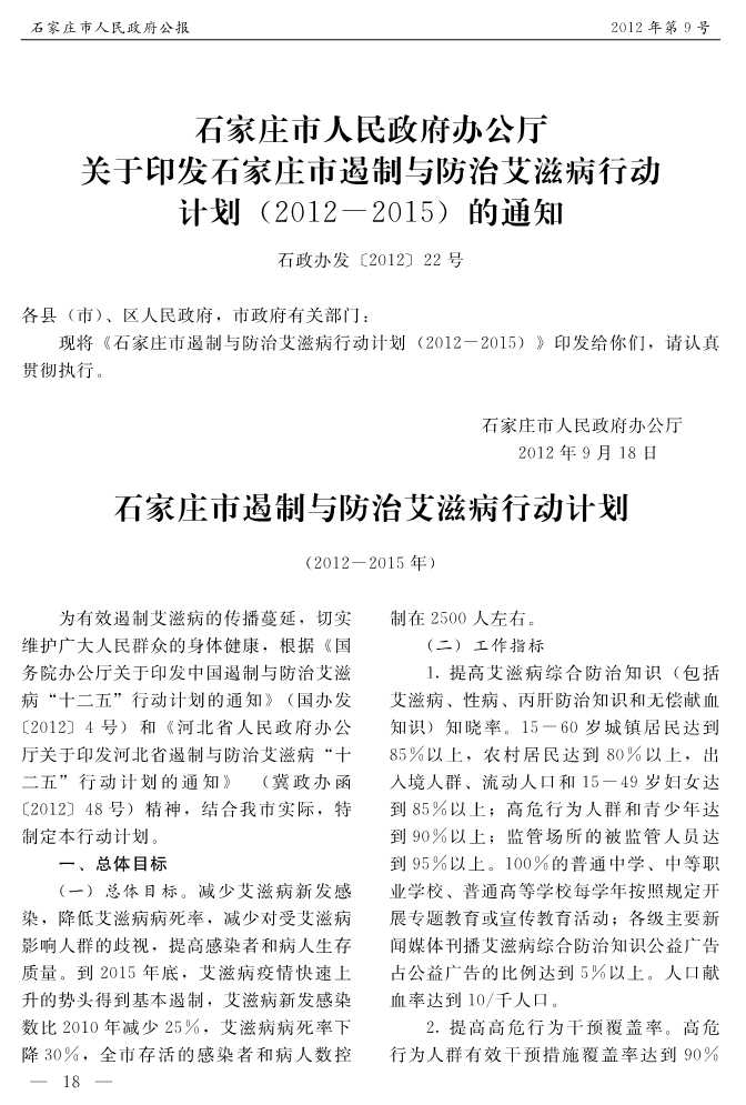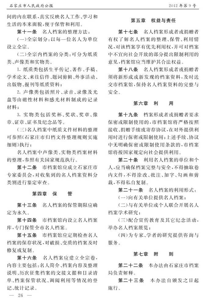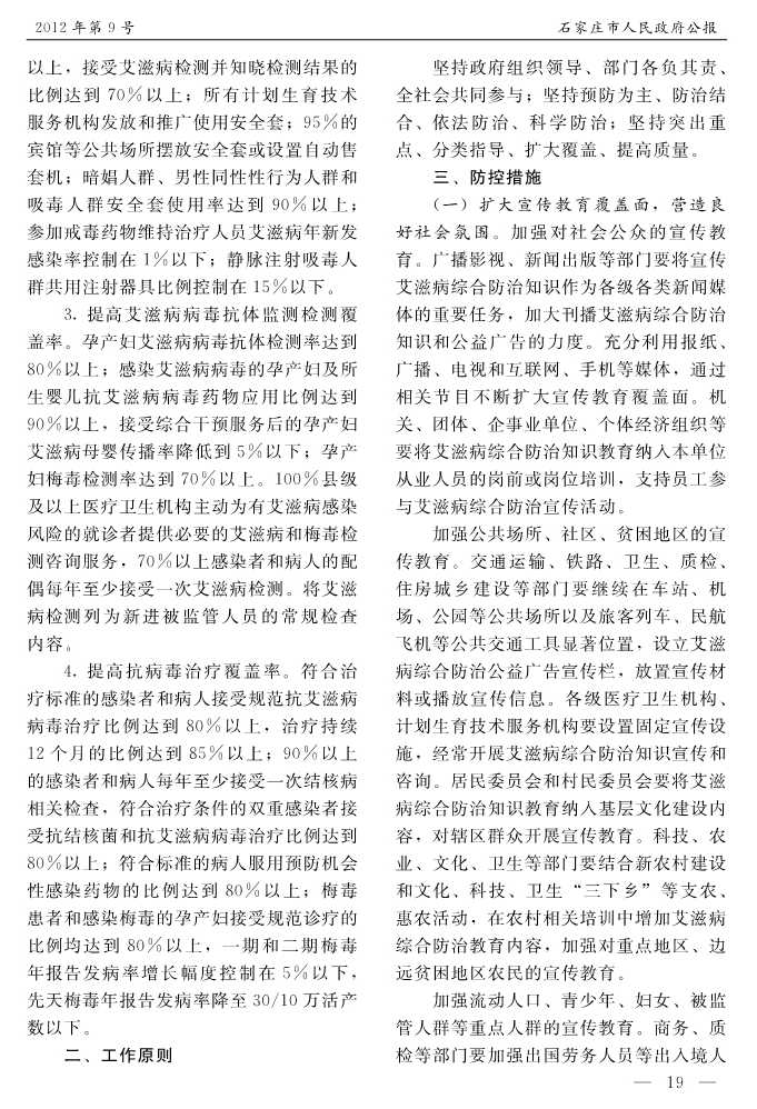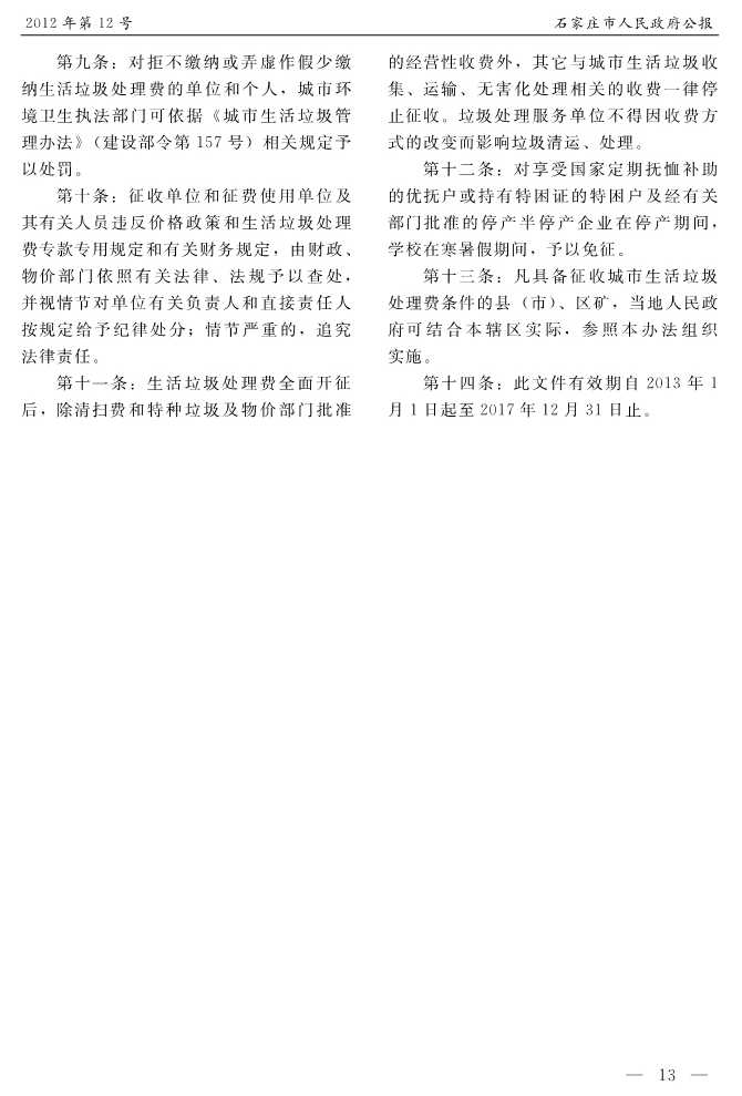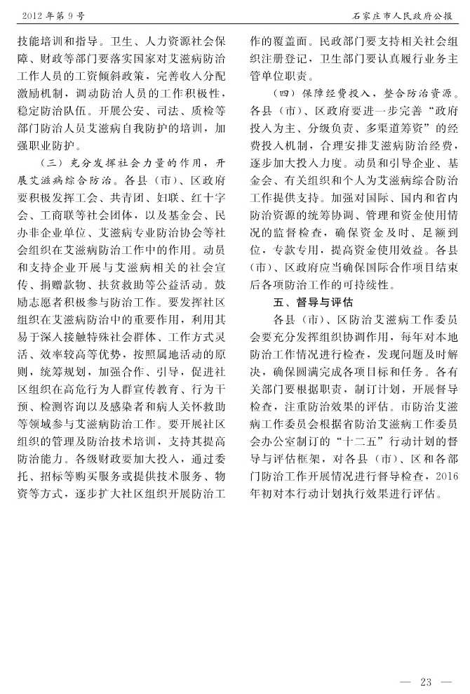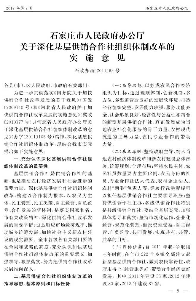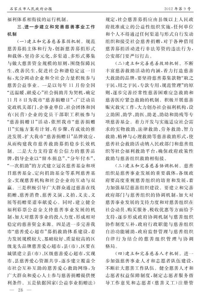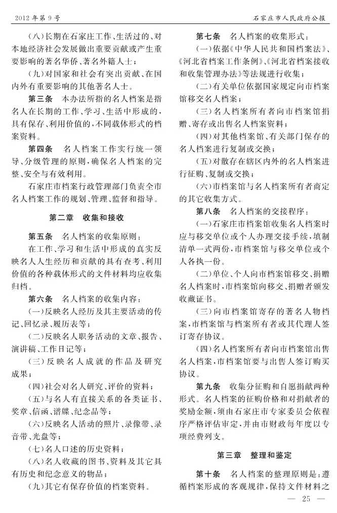 石家莊市人民政府公報2012年第9號