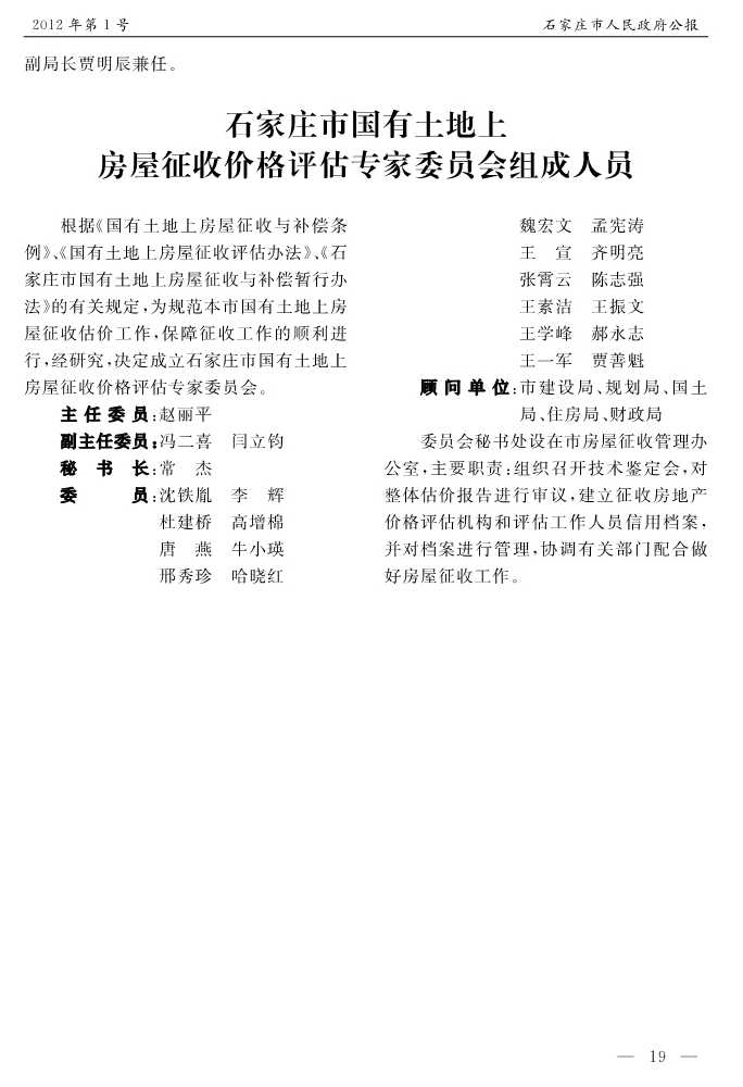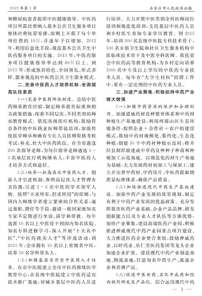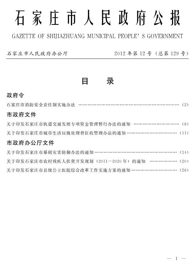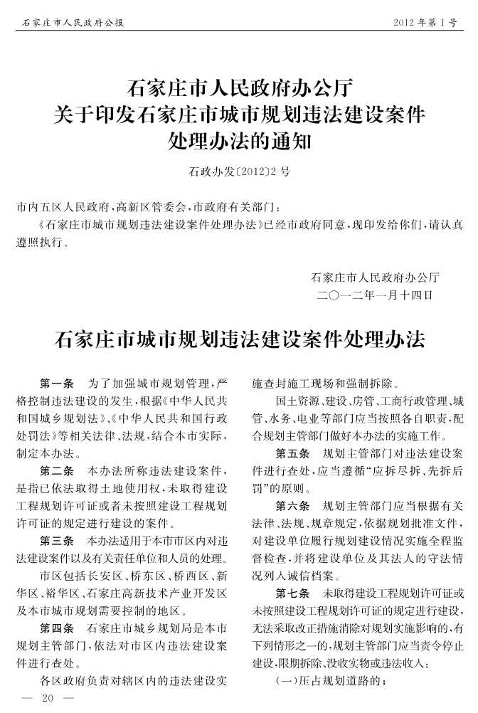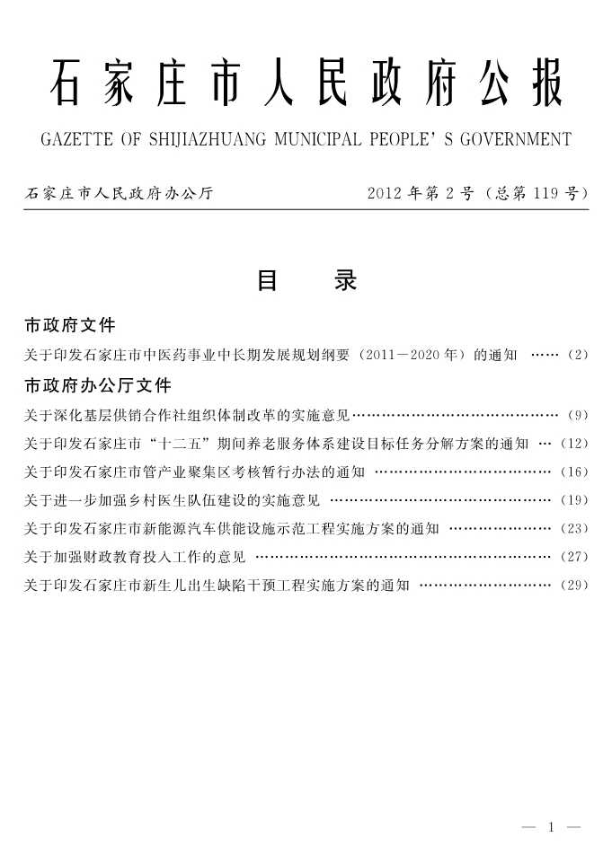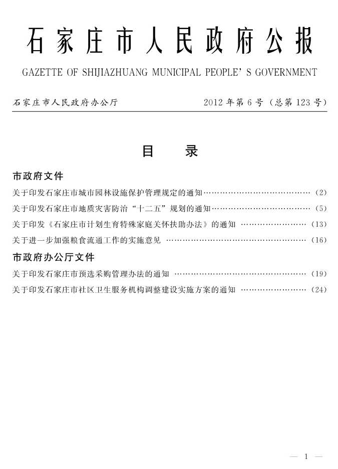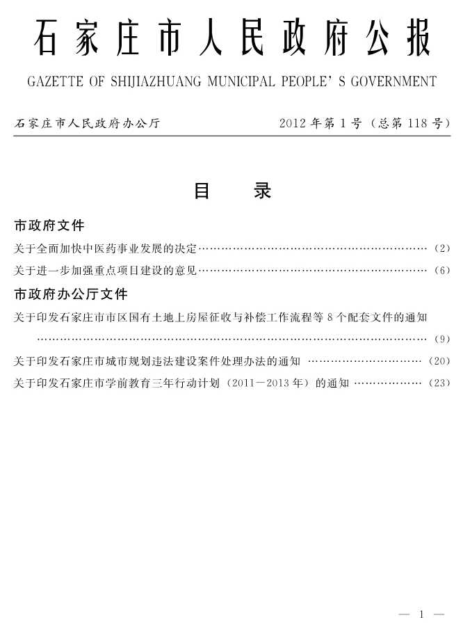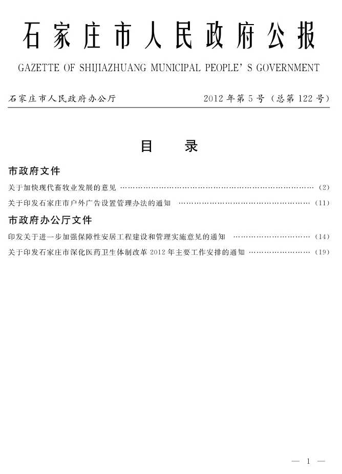 石家莊市人民政府公報2012年第1號