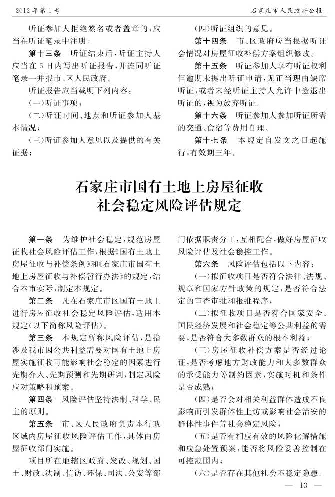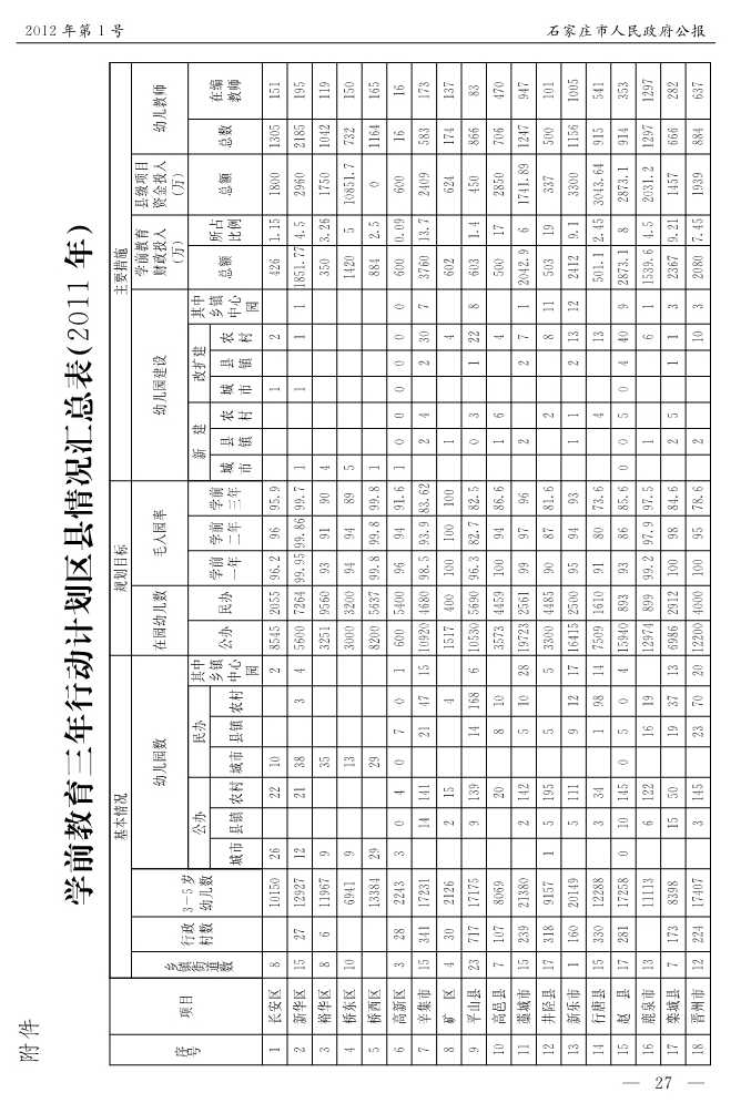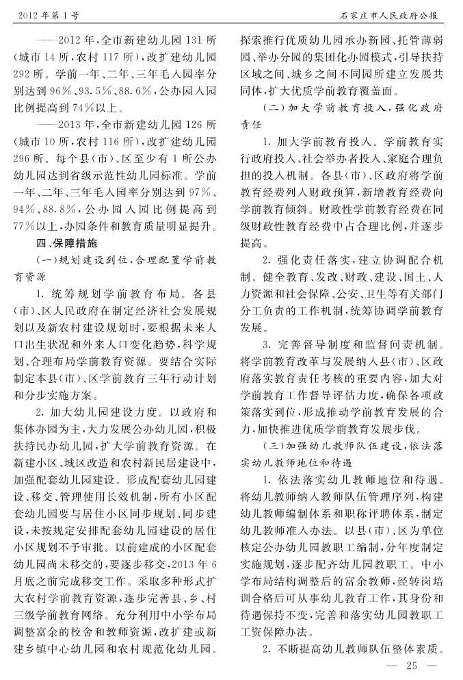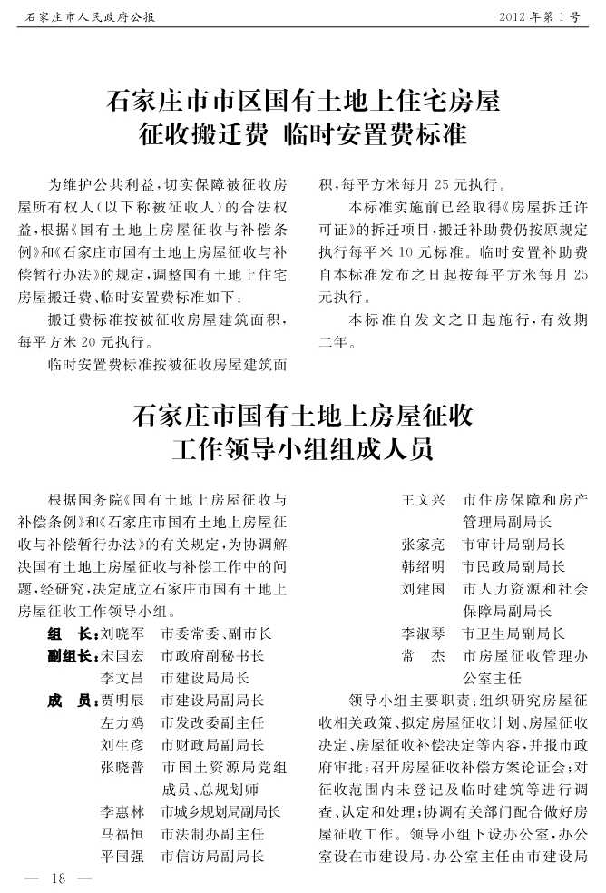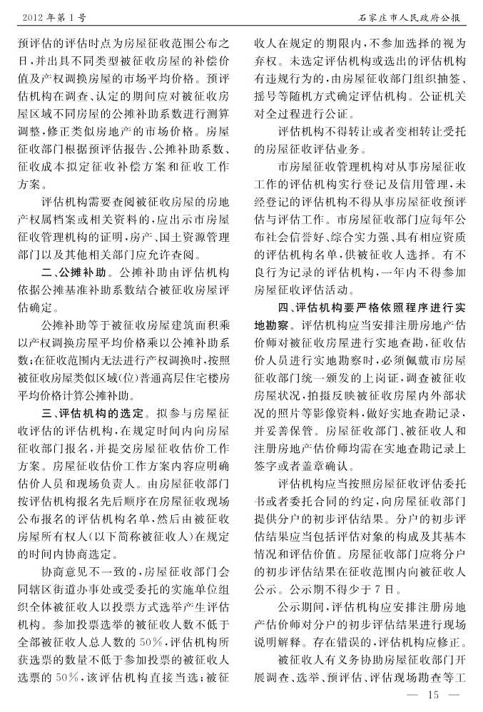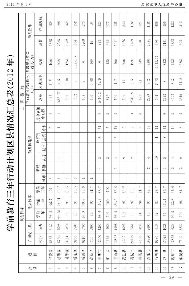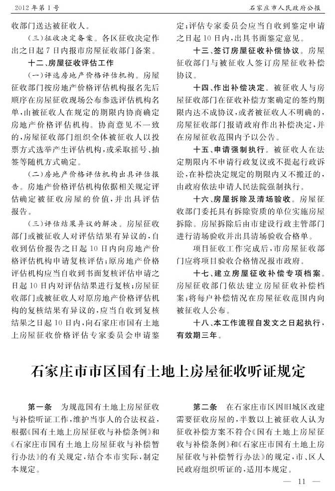石家莊市人民政府公報2012年第1號