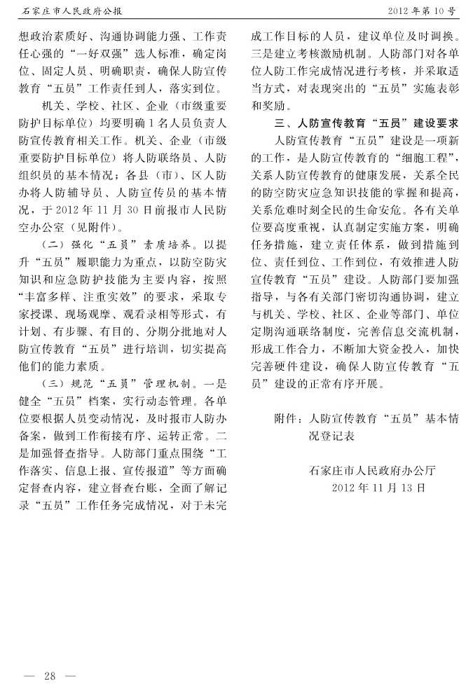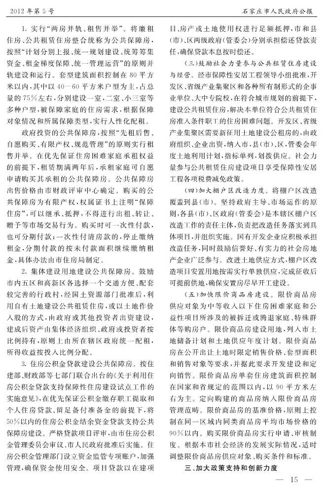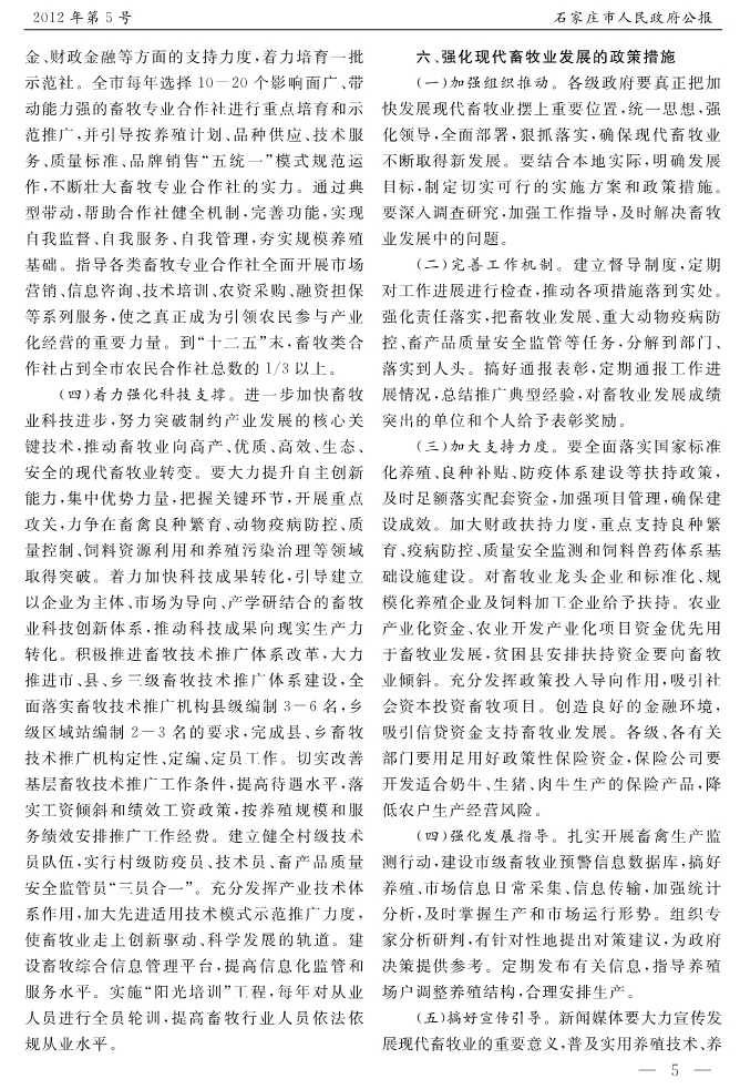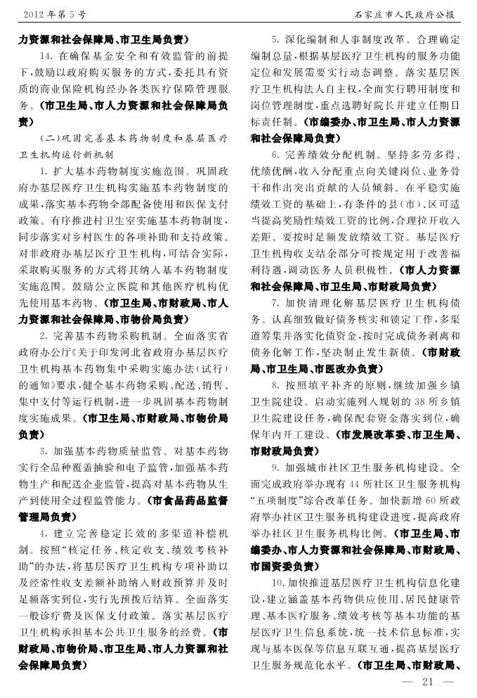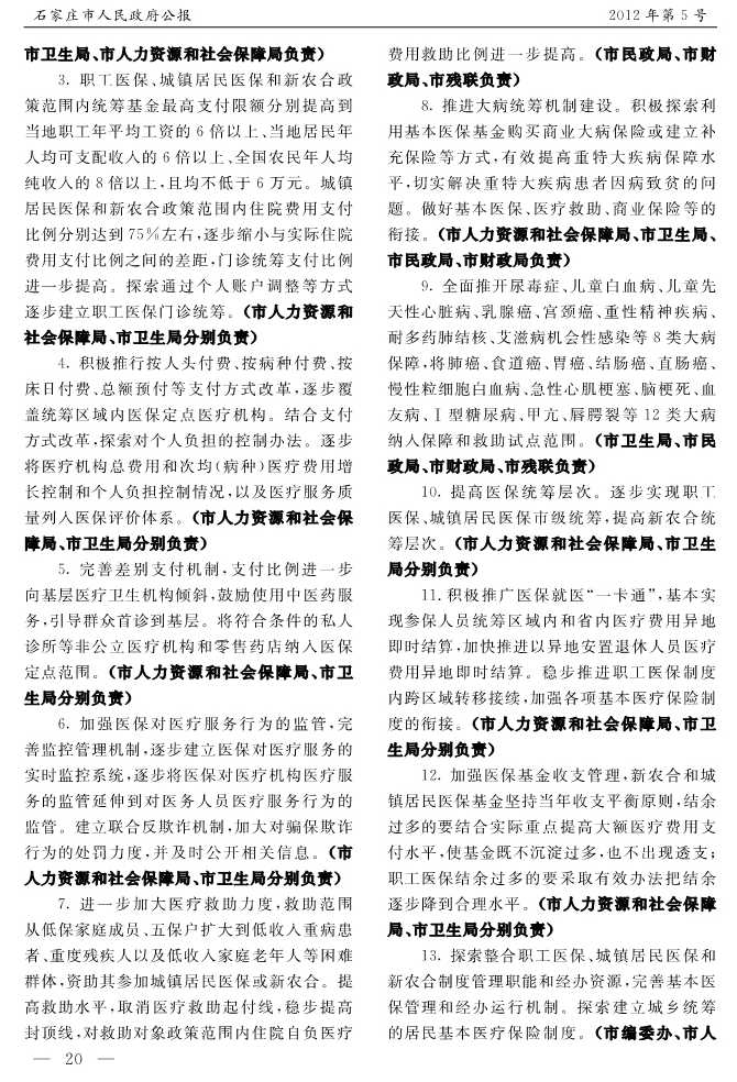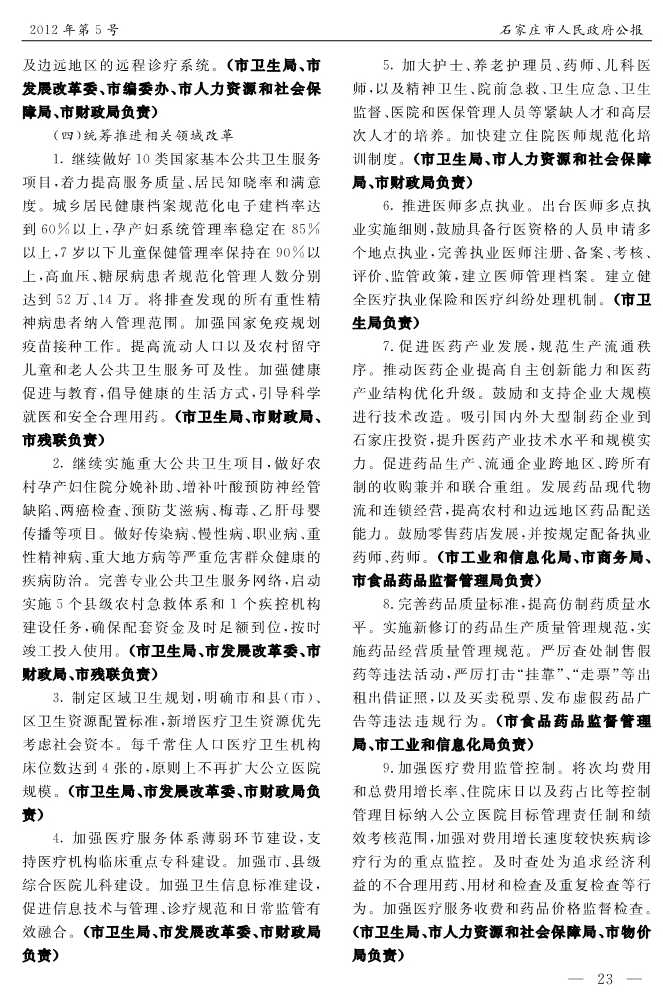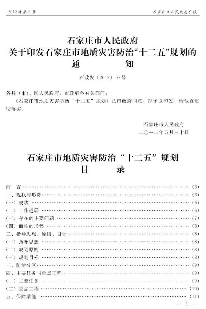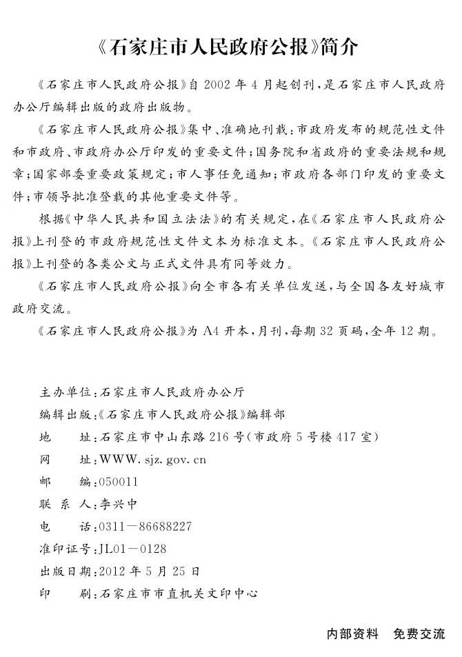 石家莊市人民政府公報2012年第5號