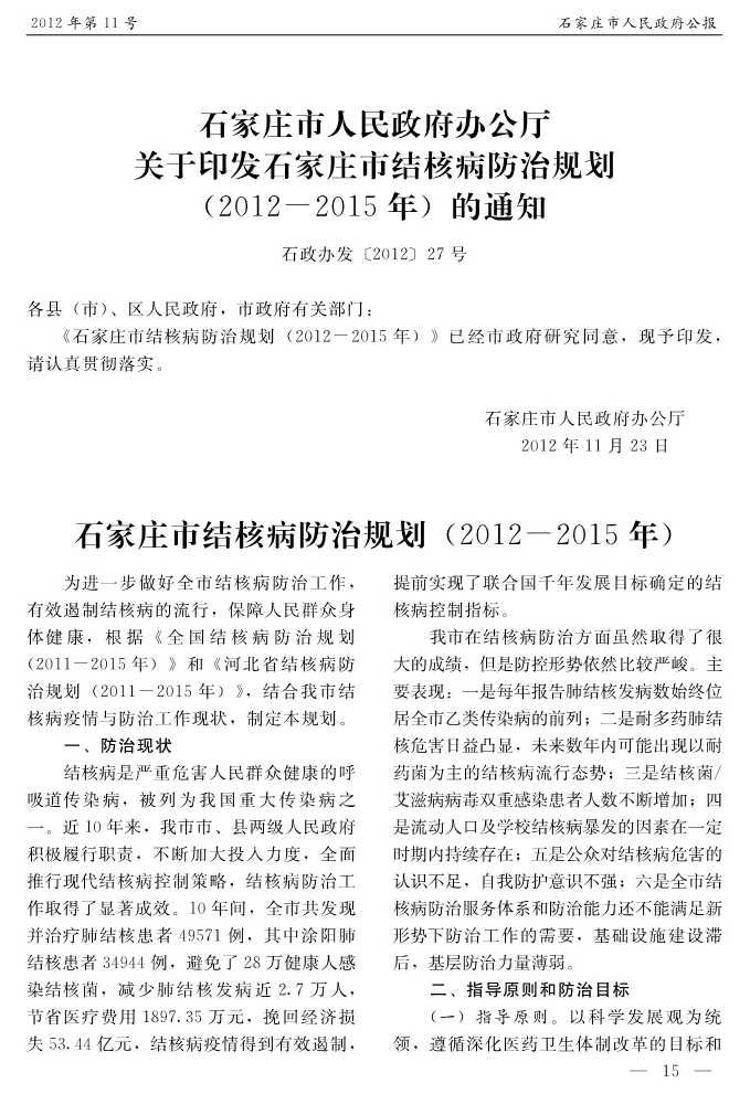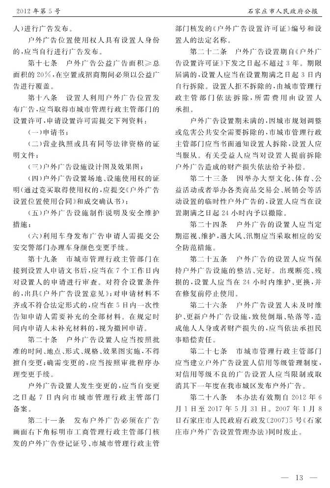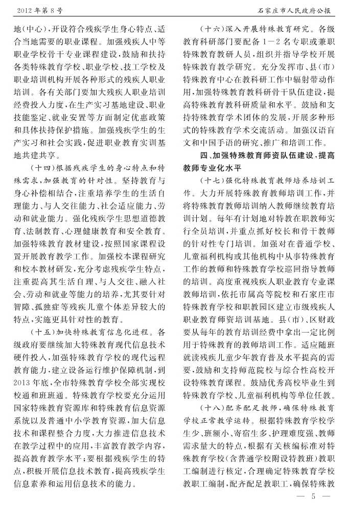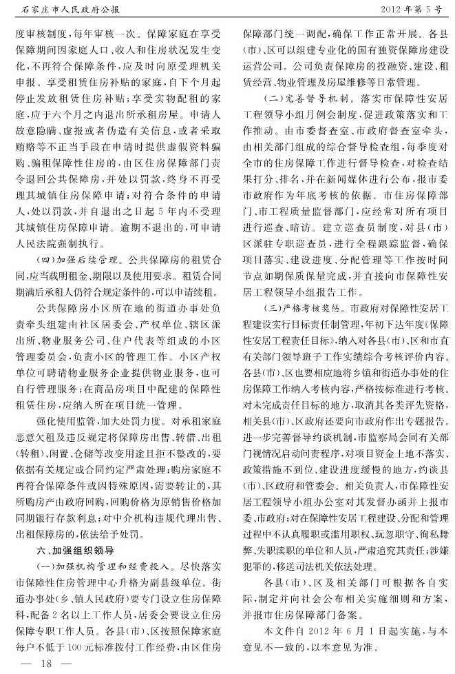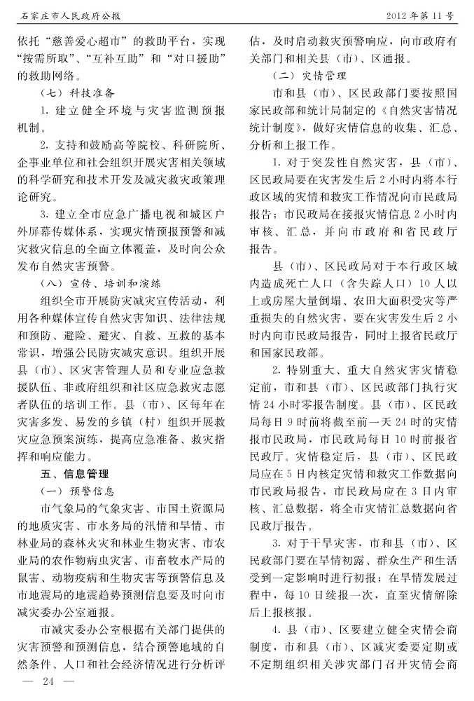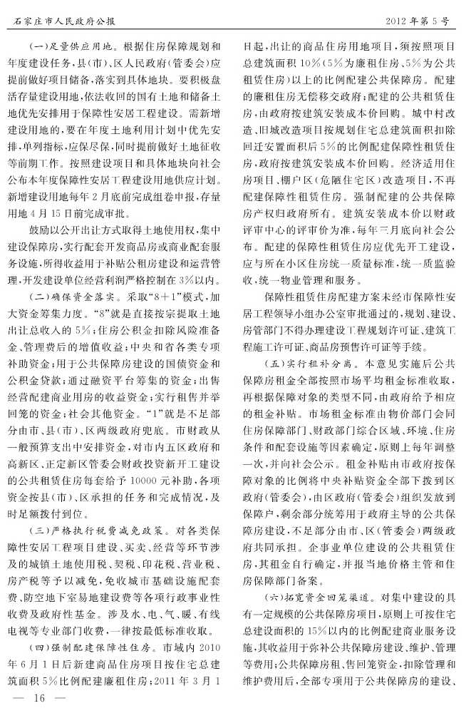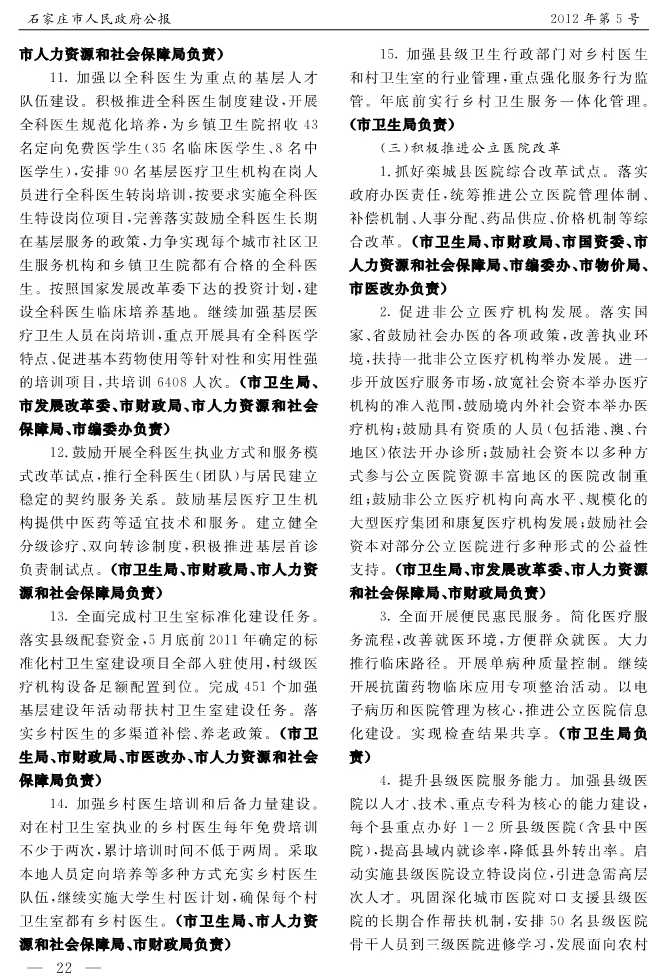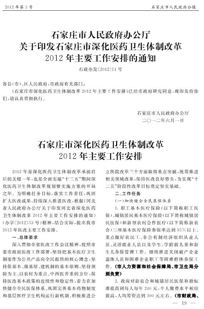 石家莊市人民政府公報2012年第5號