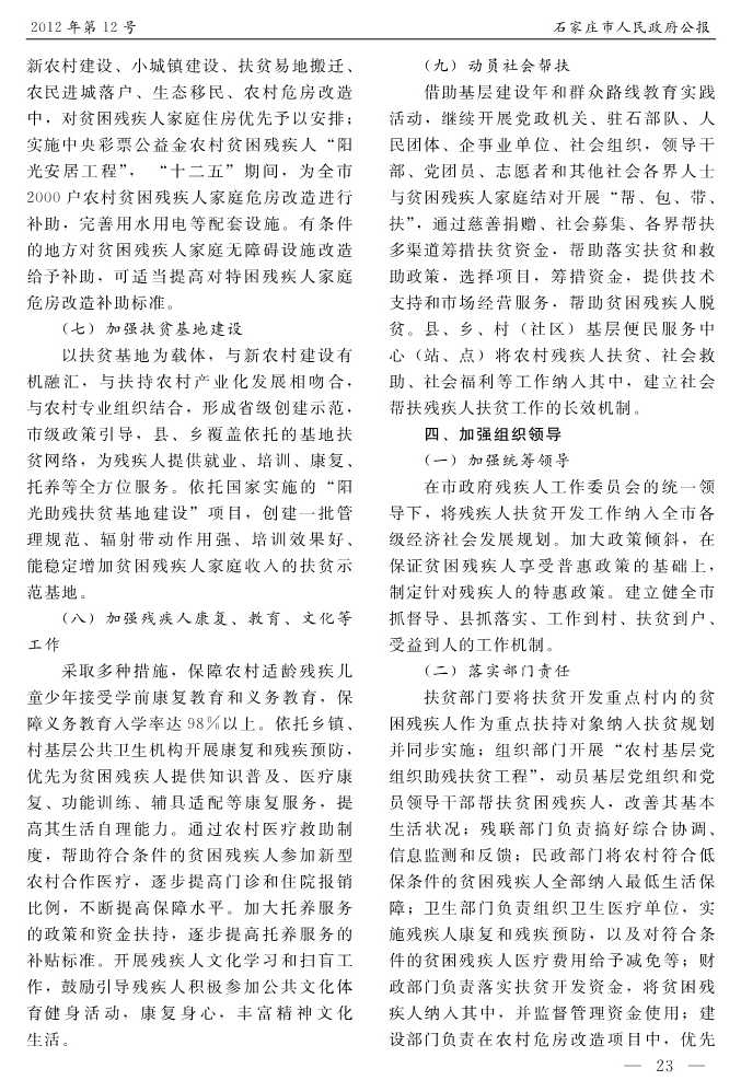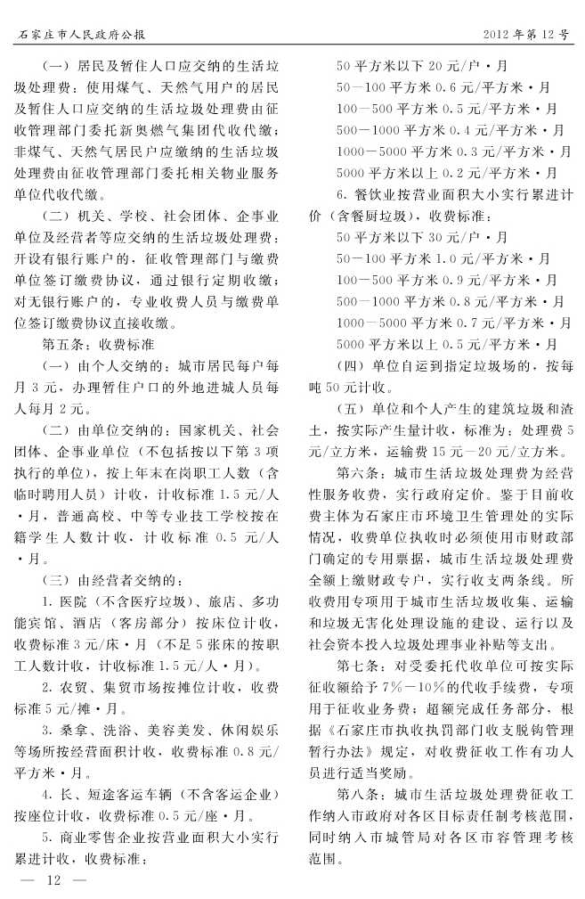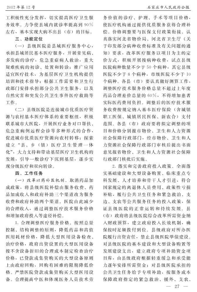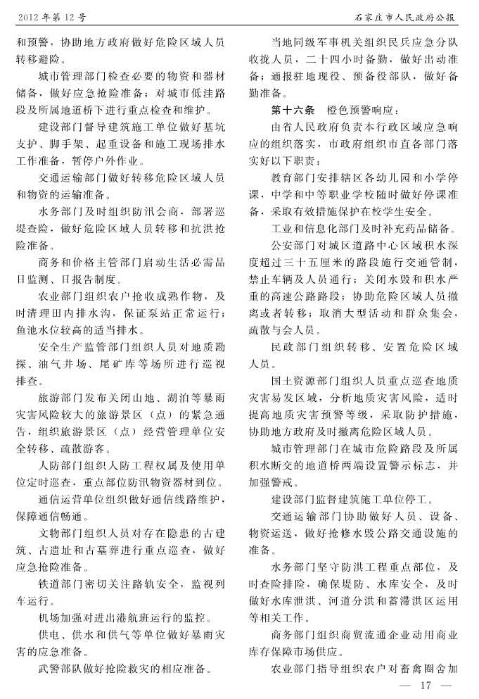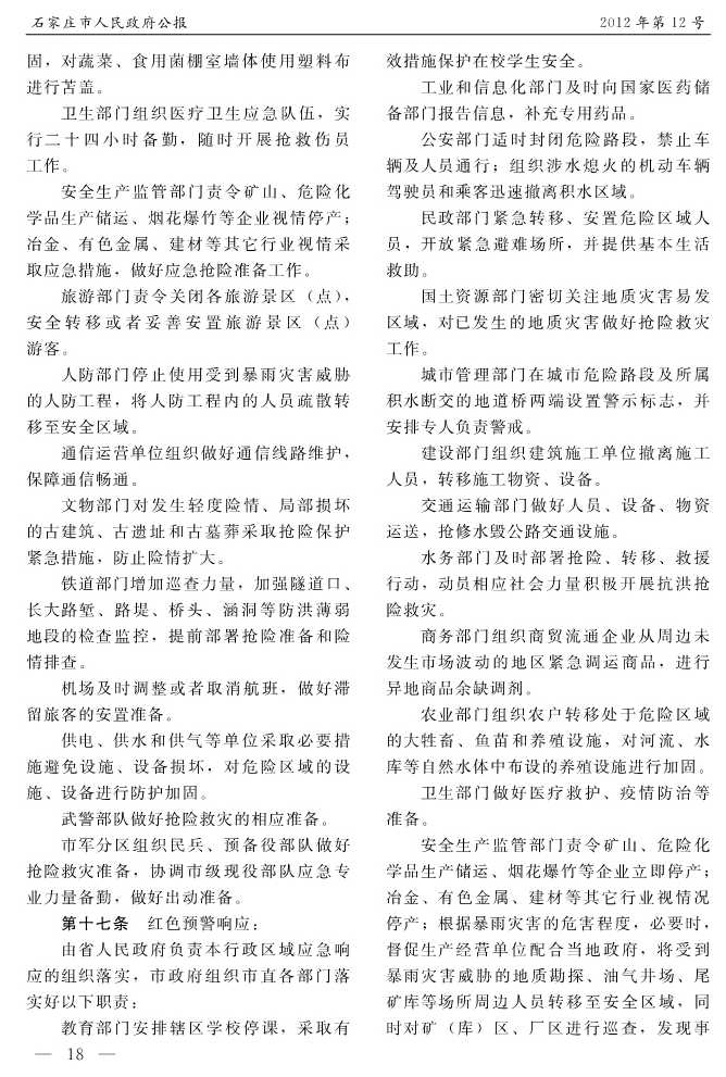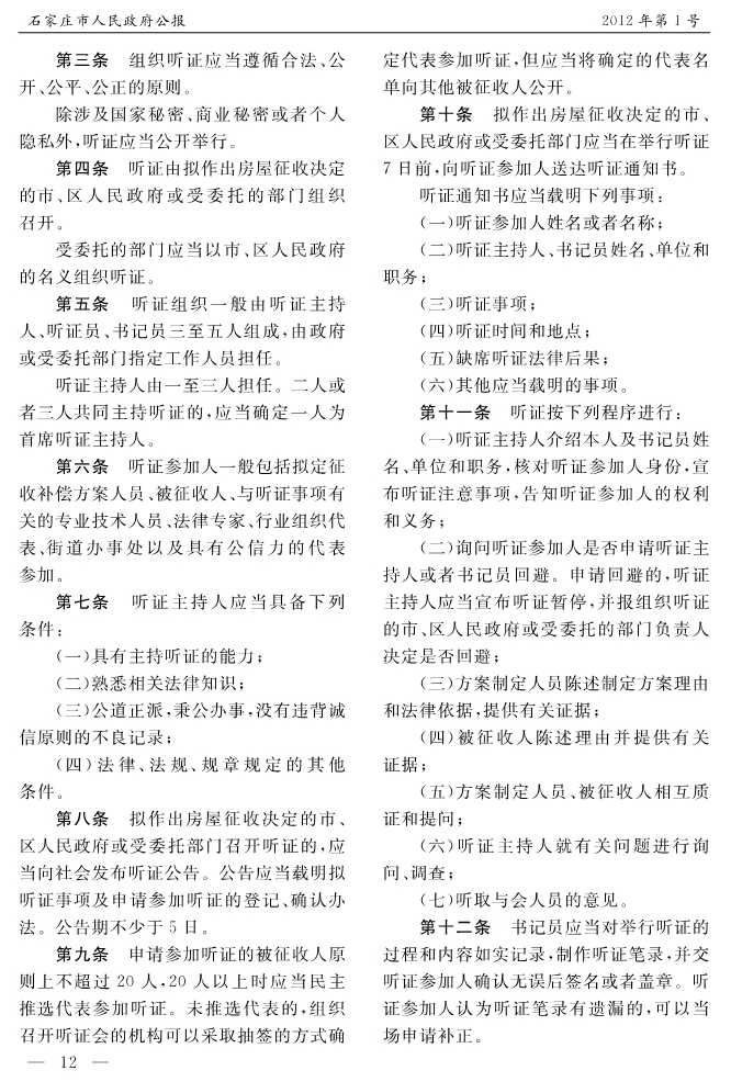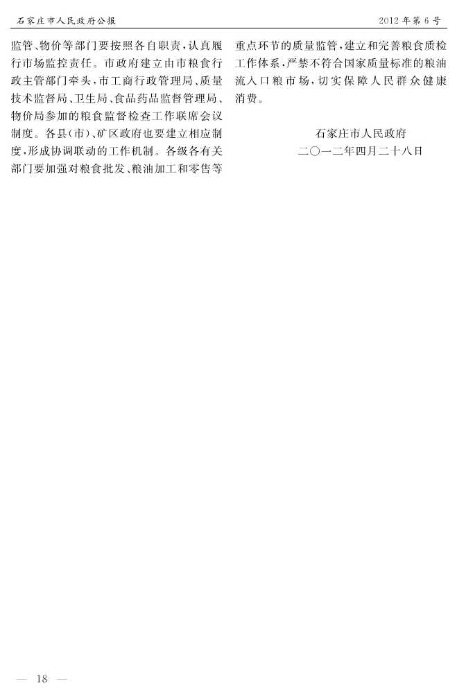 石家莊市人民政府公報2012年第12號