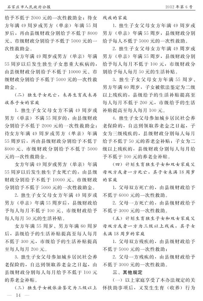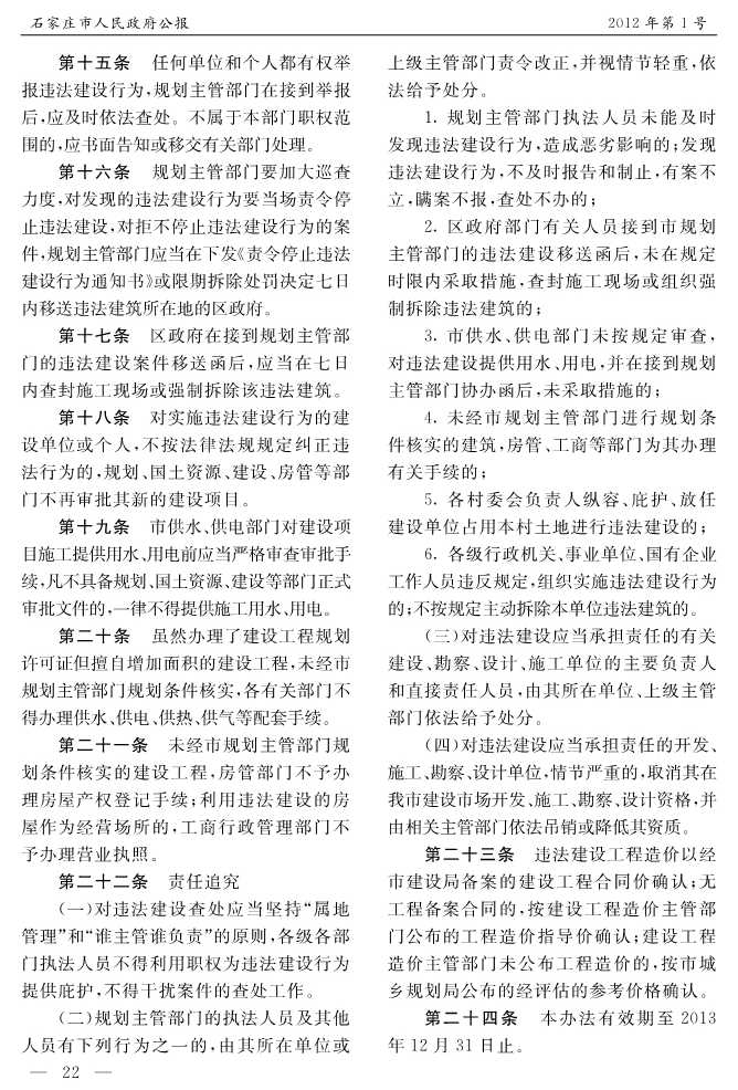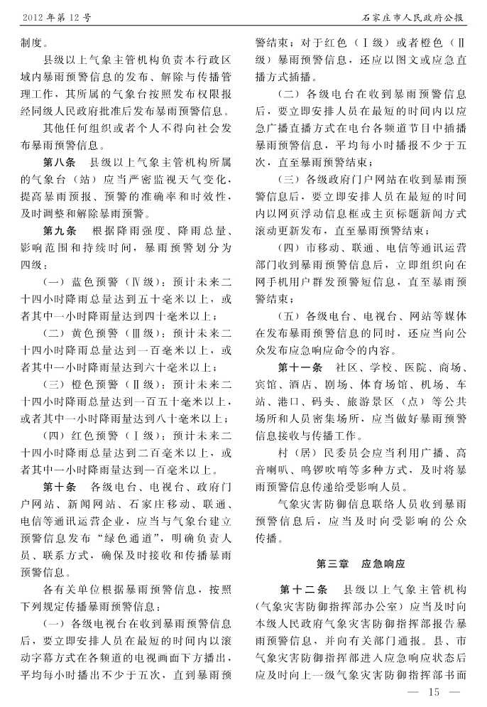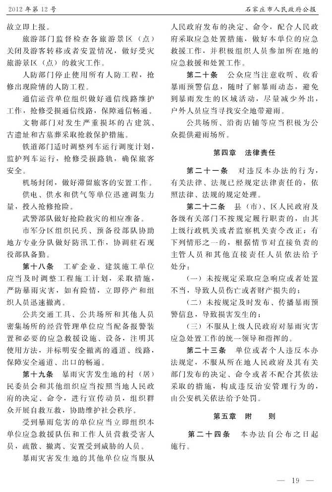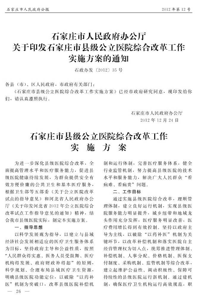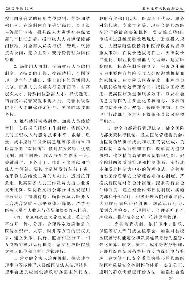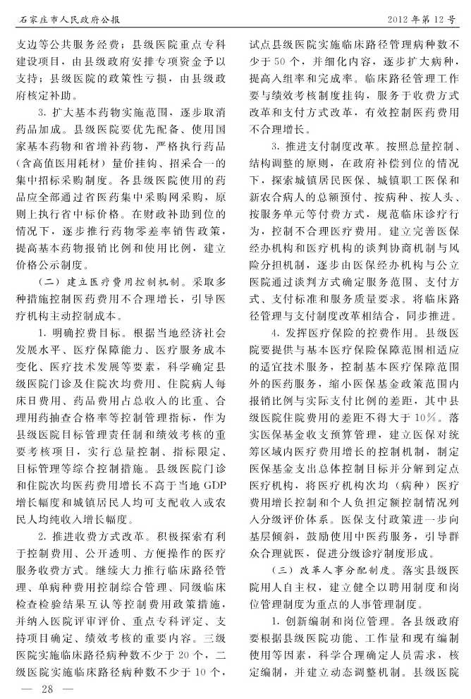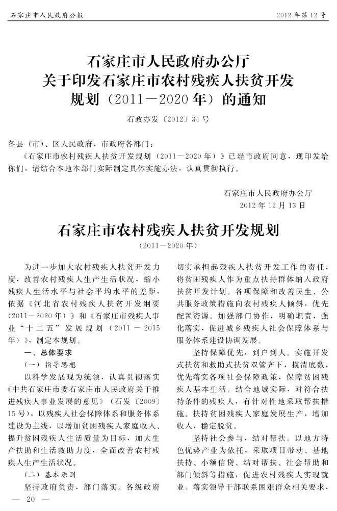石家莊市人民政府公報2012年第12號