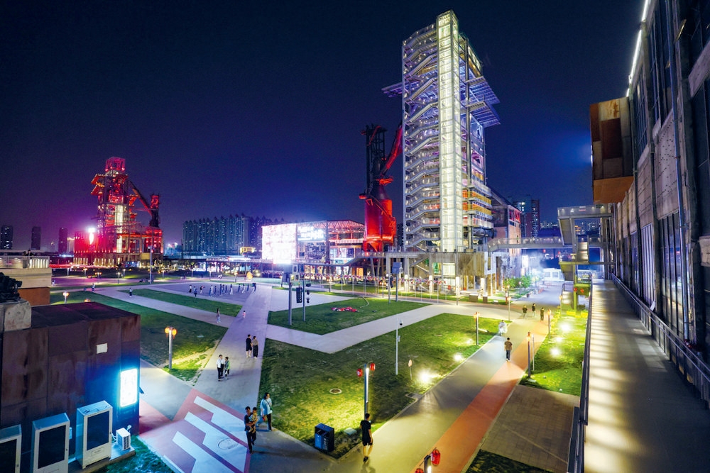 夜晚的石家莊工業遺址公園燈光璀璨,吸引了許多市民前來休閑賞景。記者 張曉峰 攝