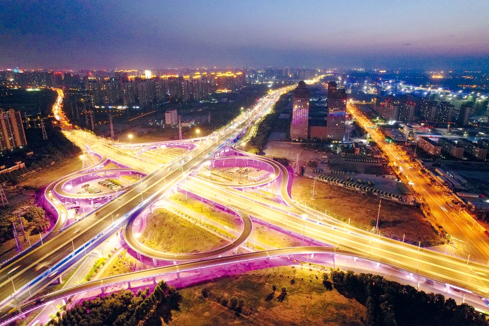 璀璨燈光將北三環體育大街立交橋裝扮得流光溢彩,如夢如幻。 記者 王兆偉 攝