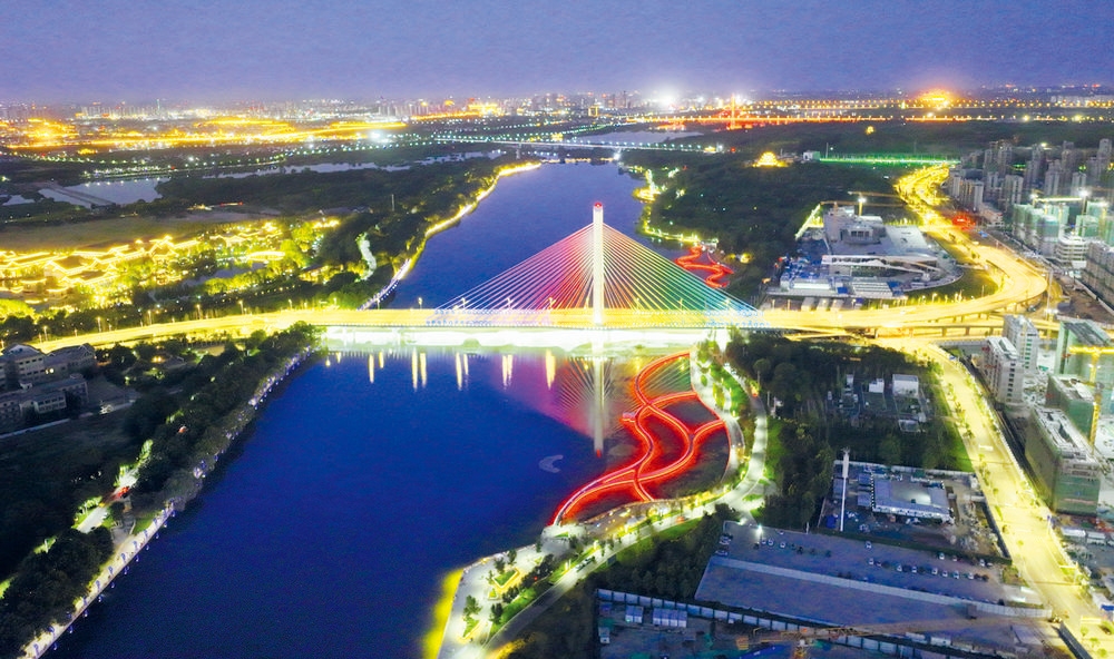夏日夜晚,學府橋與復興大街滹沱河大橋交相輝映,景色迷人。首席記者 張 震 攝