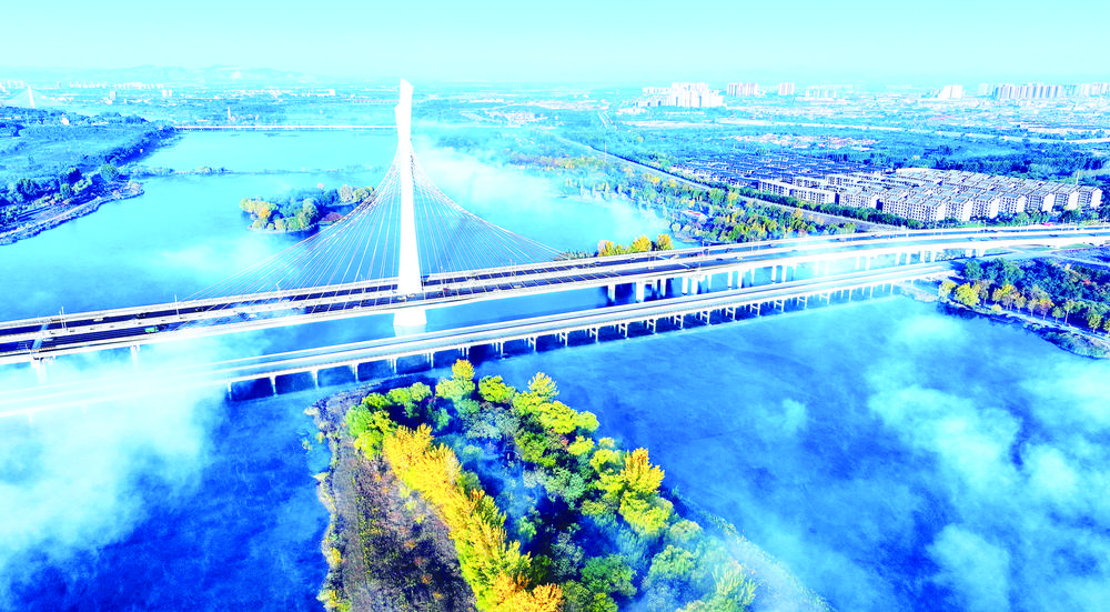 清晨,薄霧輕覆大地,像是大自然為秋日披上了一層輕紗,增添了幾分清冷與靜謐。公園里的楓樹、銀杏樹、白蠟樹等在白霜的映襯下,愈發(fā)紅得似火,黃得如金。葉片在枝頭搖曳,仿佛在跳最后的告別舞蹈,記錄著曾屬于這個季節(jié)的絢爛。滹沱河廉州湖風景區(qū)藁城段的大片花海,似乎忘記了季節(jié)的變遷,盡情綻放最后的絢爛。遠處的山巒也被秋色染透,層層疊疊的色彩在冷風中顯得更加深沉而厚重,從近處的金黃到不斷延伸的蒼翠,再到遠處的如黛群山,像是大自然用盡全力在畫布上涂抹的最后一抹濃墨。