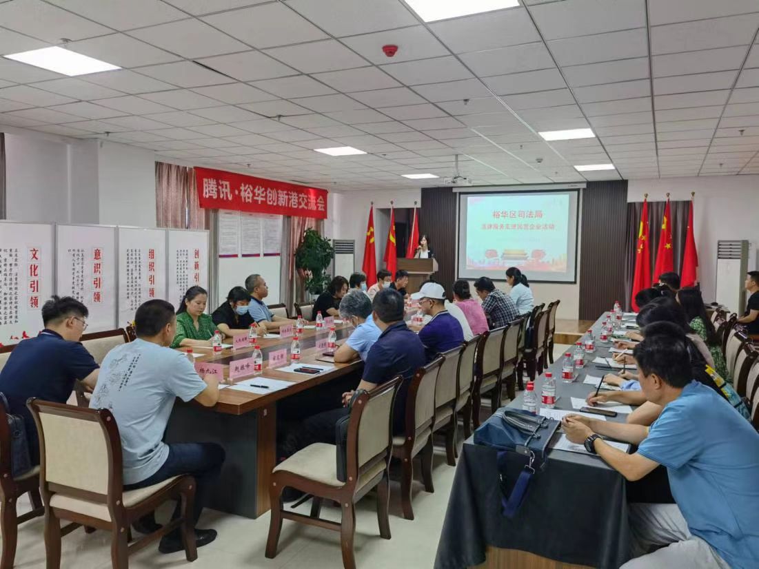 7月28日上午,裕華區(qū)司法局按照企業(yè)“點餐”、由多股室、多單位聯(lián)合“配菜”的方式,組織區(qū)法律援助中心、普法辦、局社區(qū)矯正和基層工作管理股、法制股,聯(lián)合石家莊市國信公證處、河北醫(yī)科大學第一醫(yī)院司法鑒定中心、河北趙雪蓮律師事務(wù)所,走進合創(chuàng)大廈,開展法律服務(wù)進企業(yè)活動,為企業(yè)送去清涼法雨。