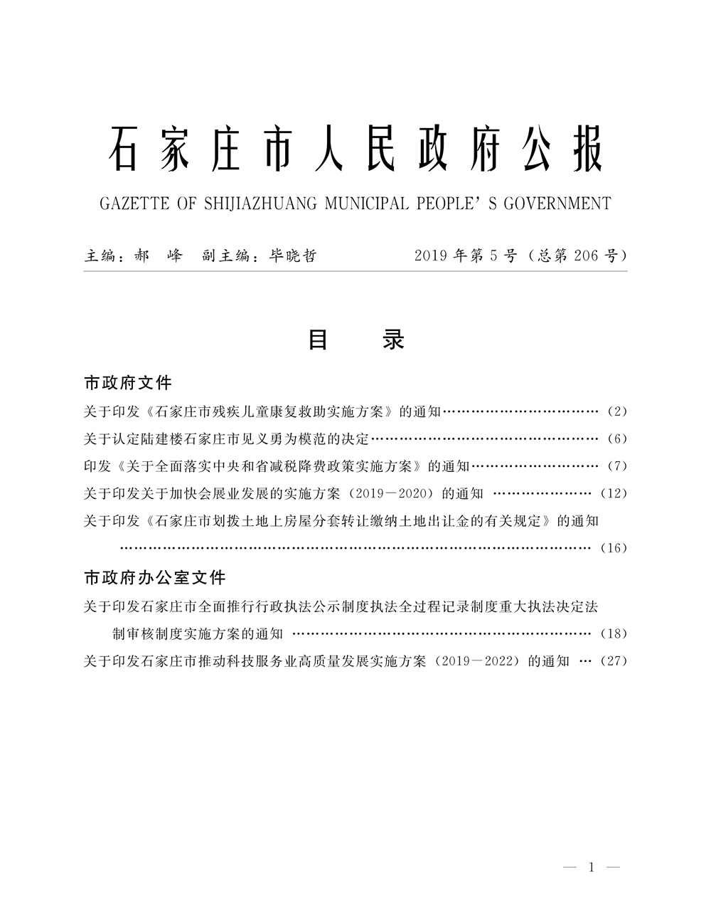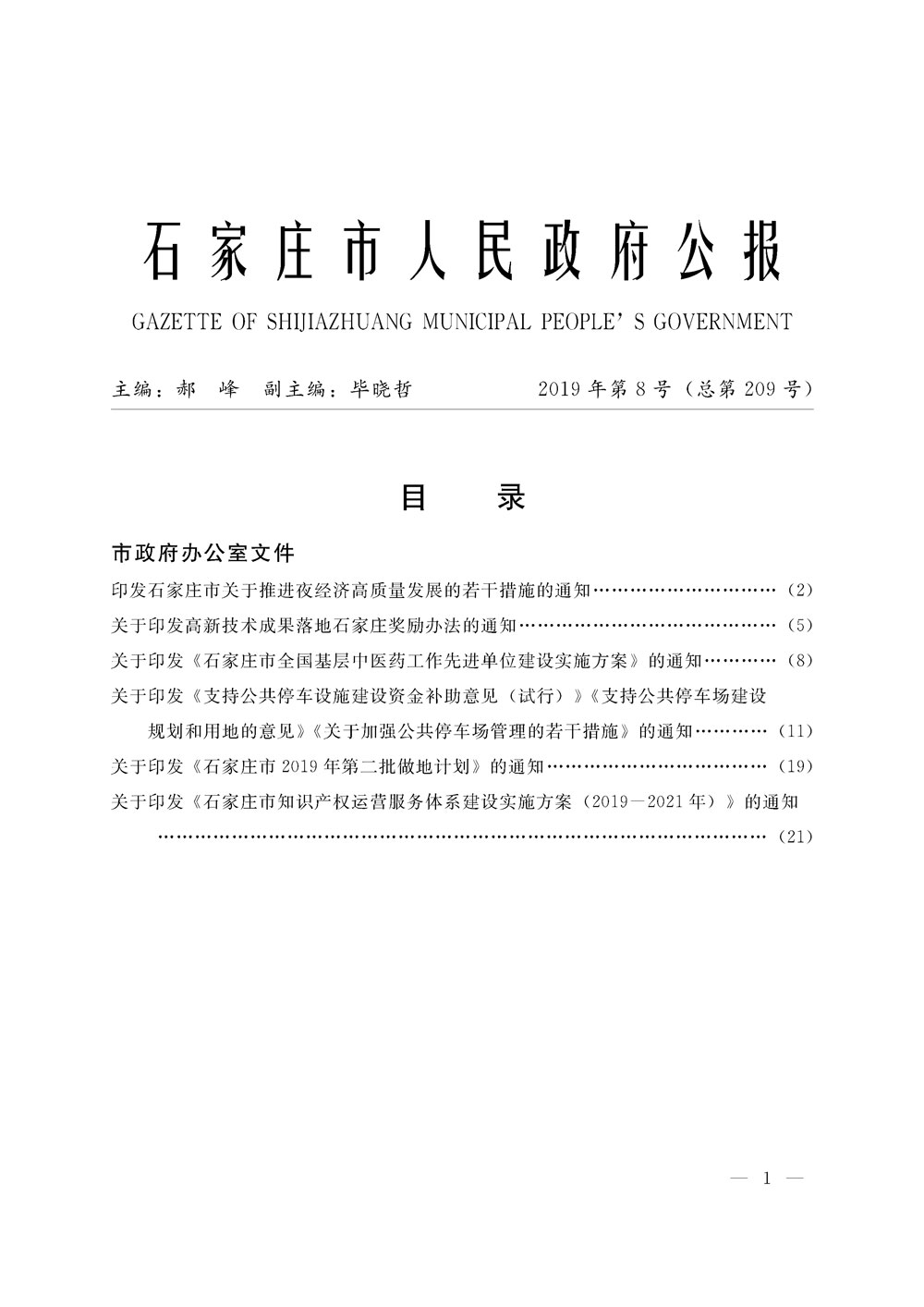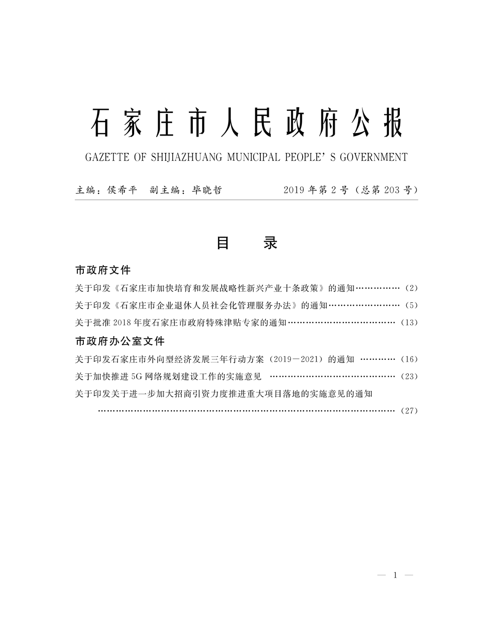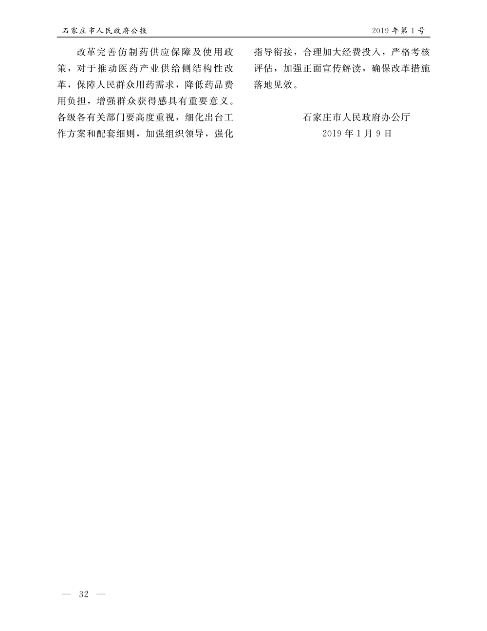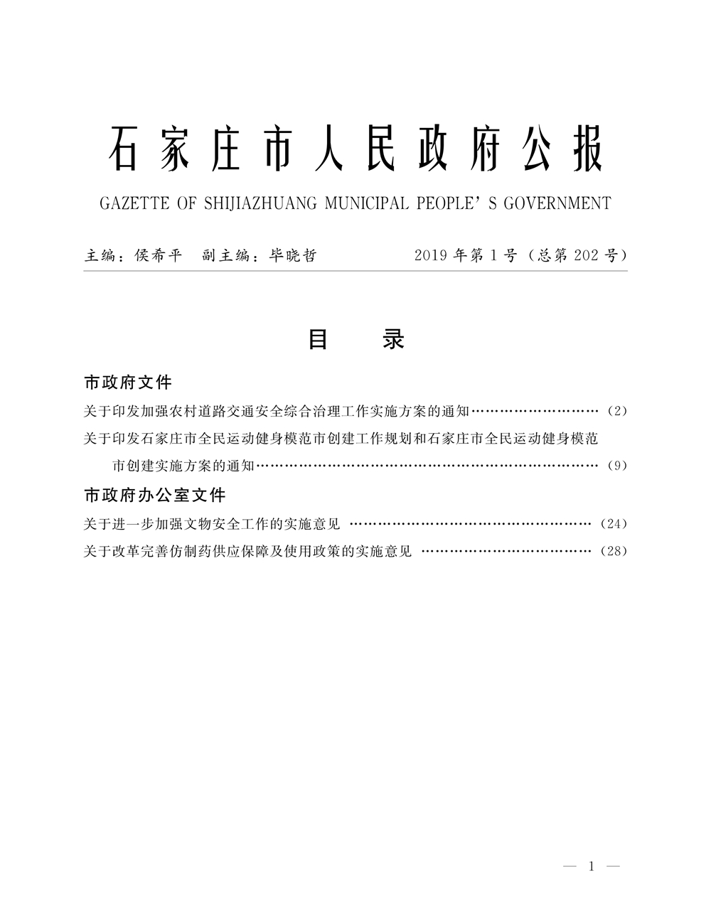 石家莊市人民政府公報2019年第1號