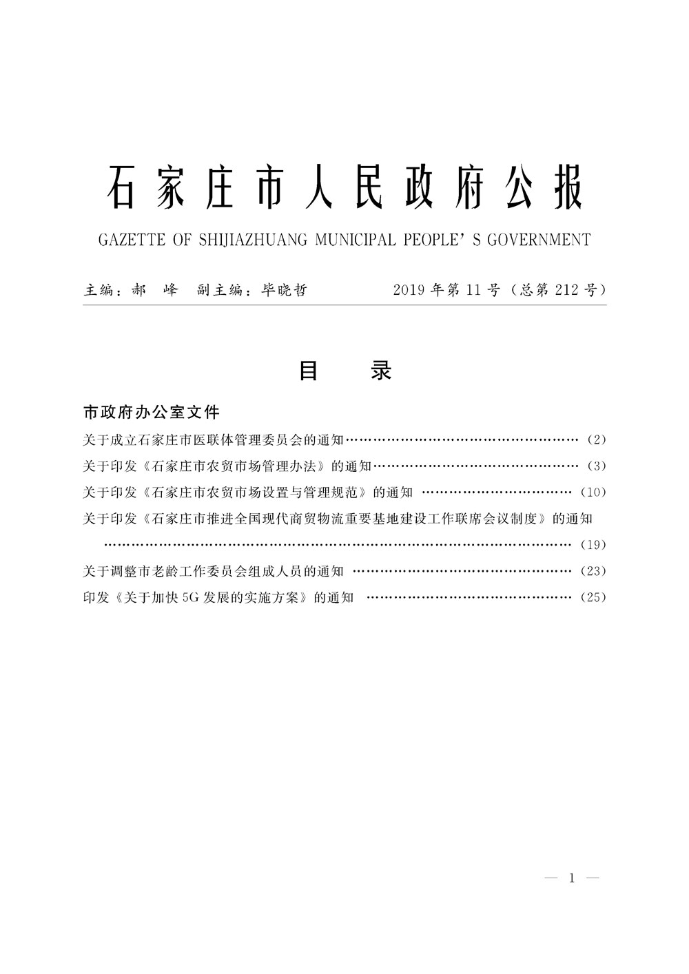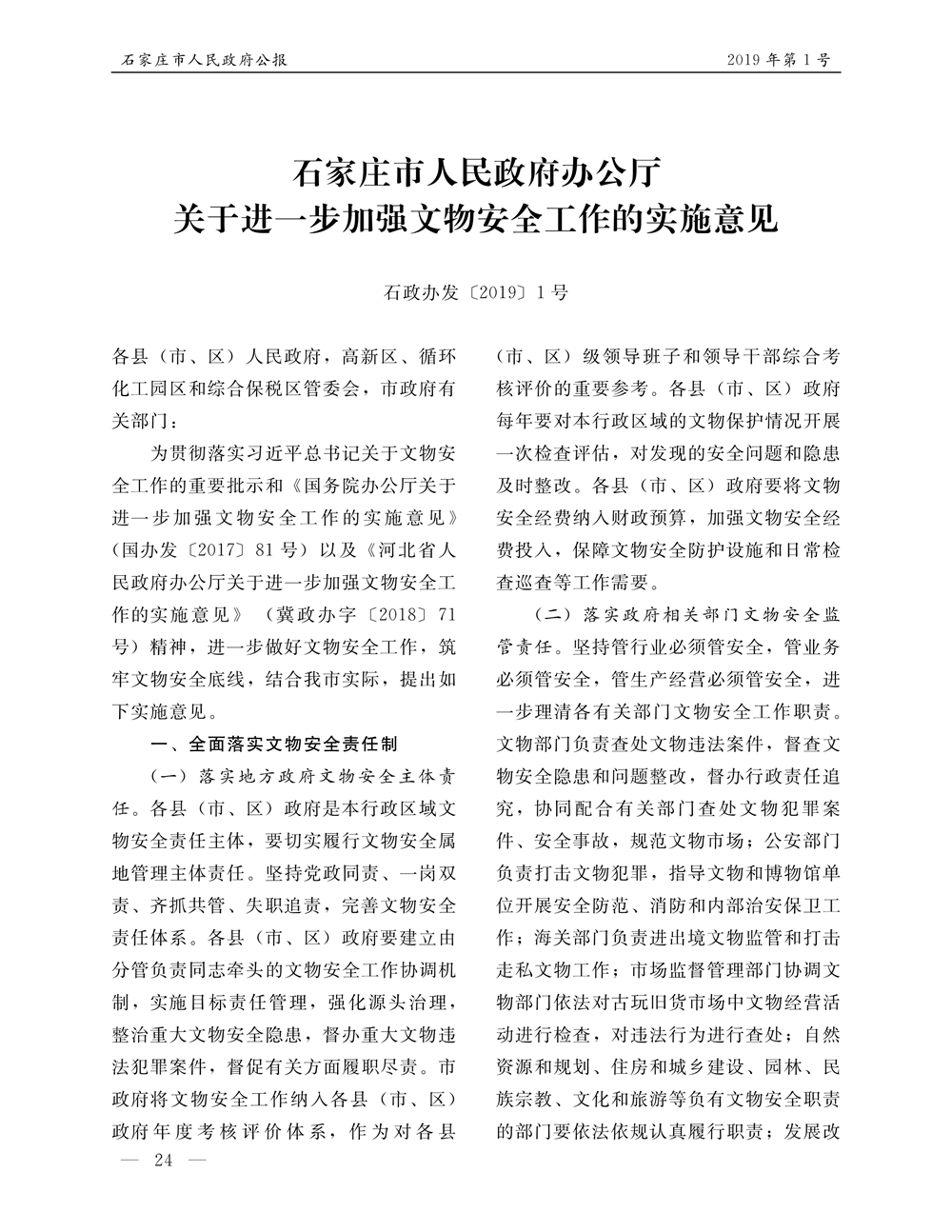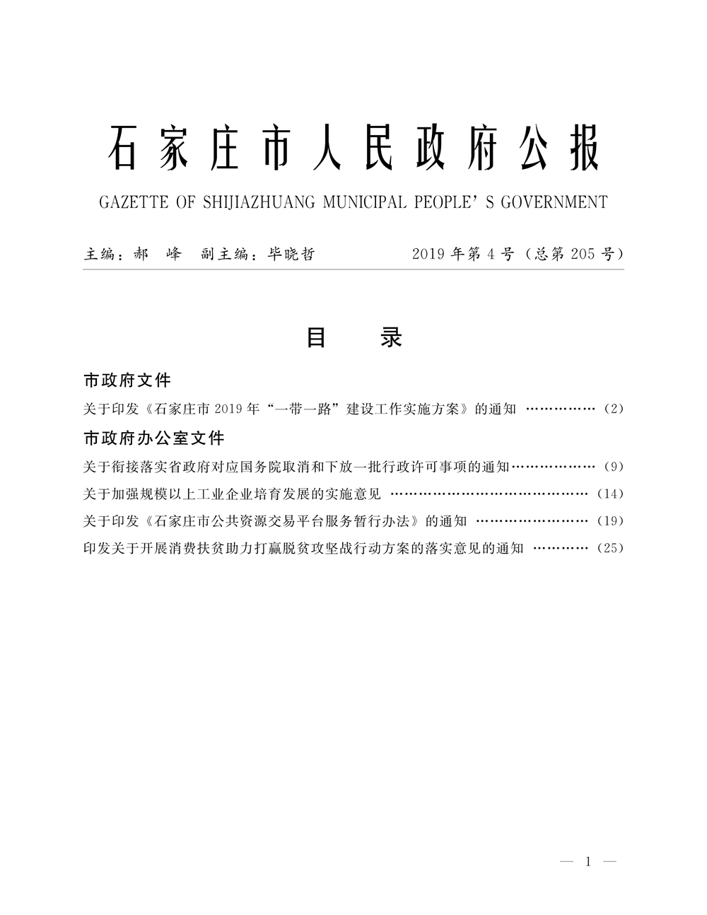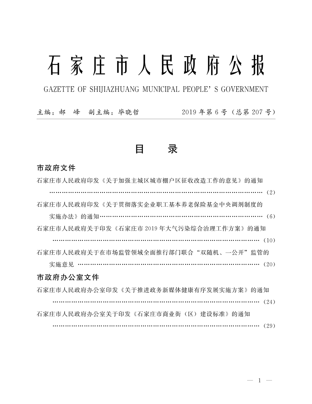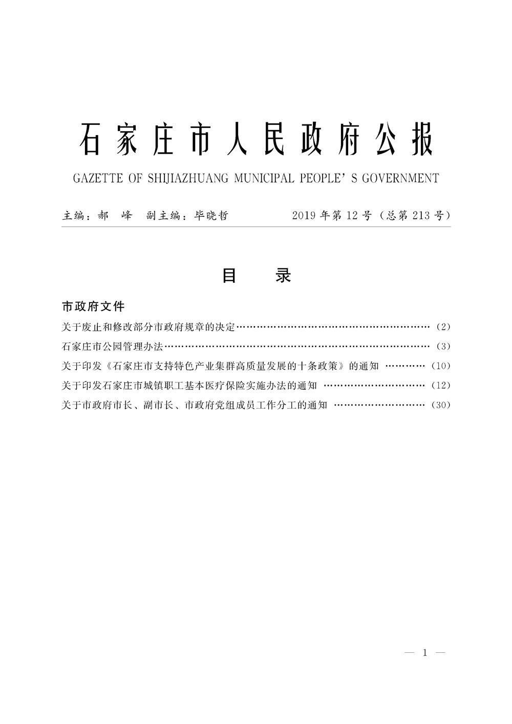石家莊市人民政府公報2019年第1號