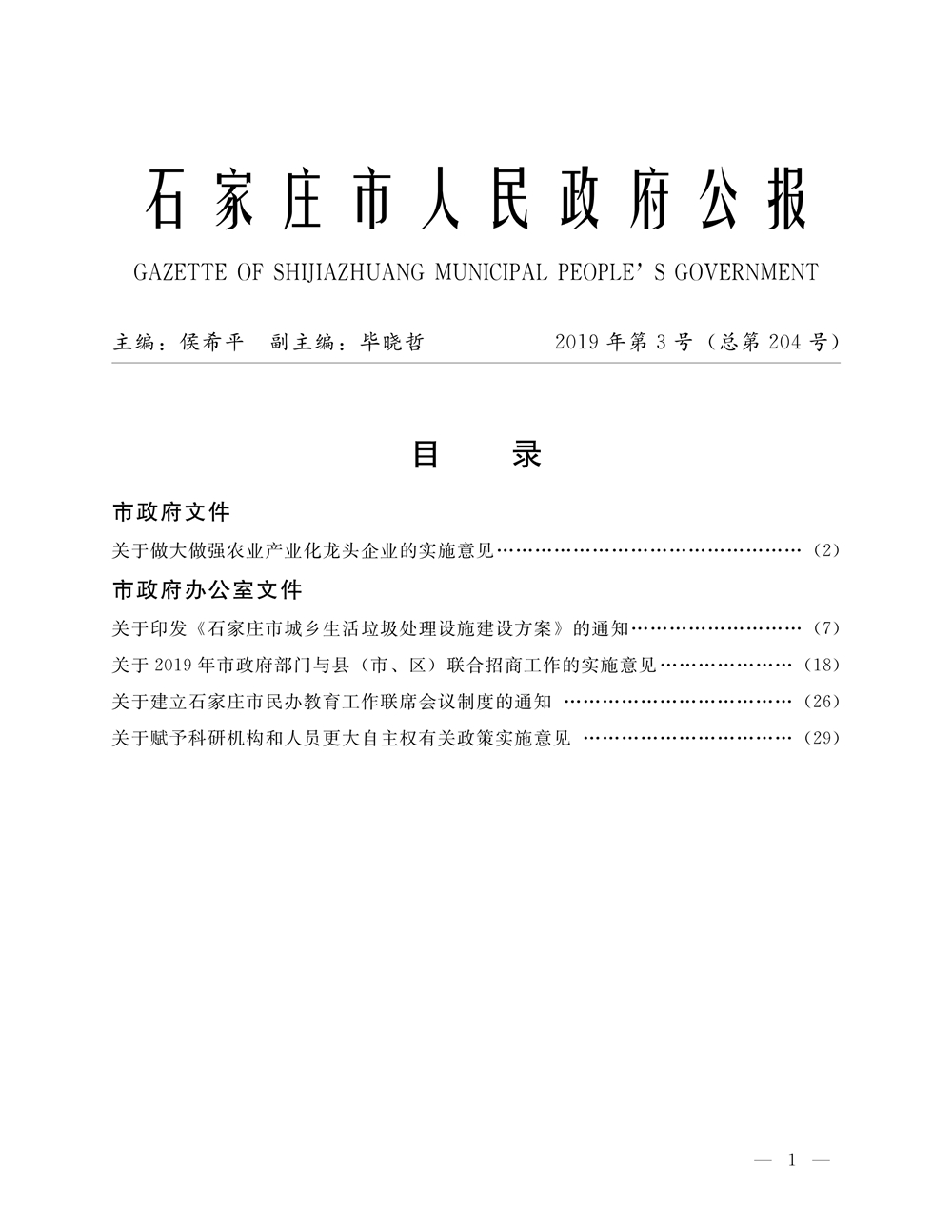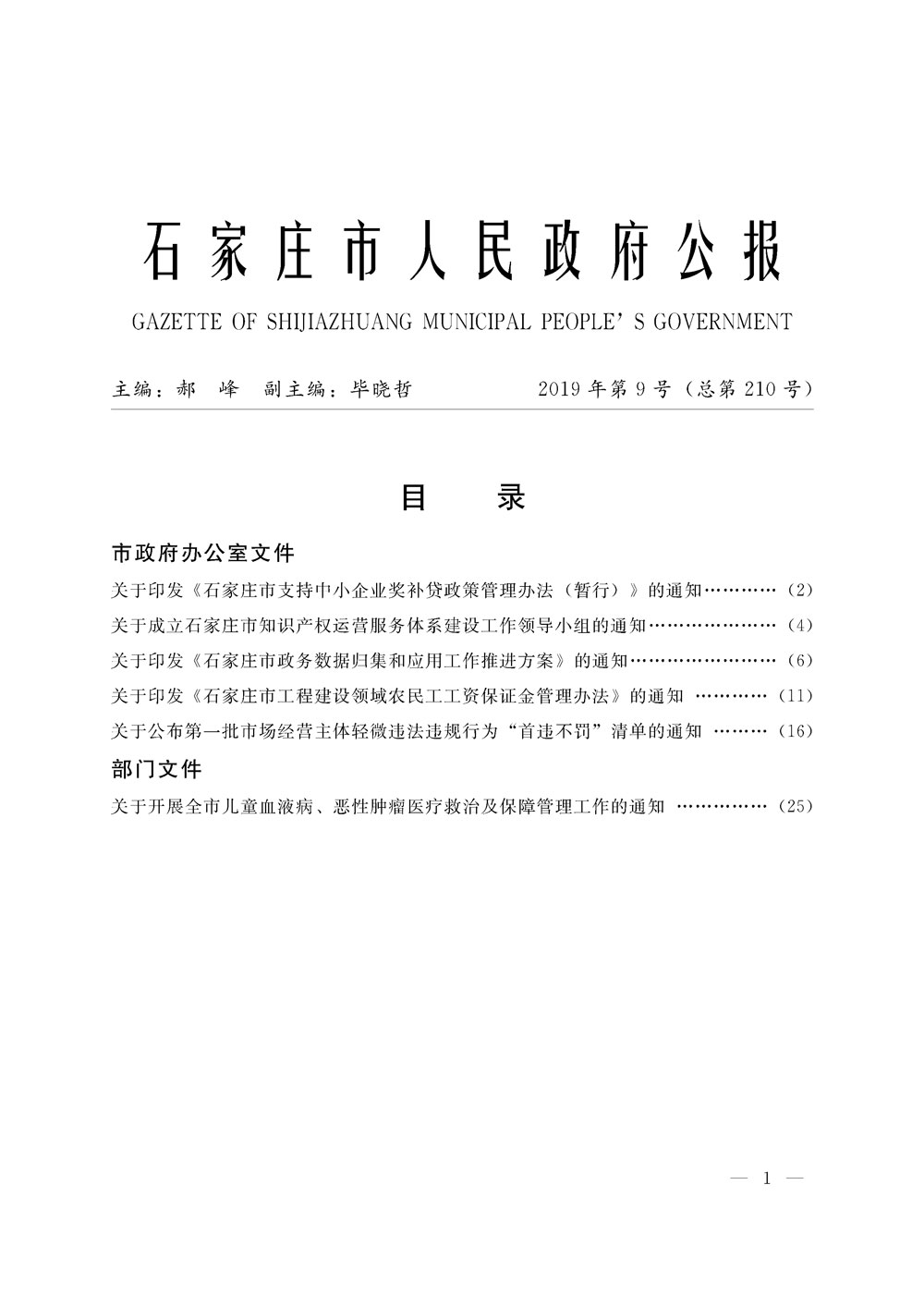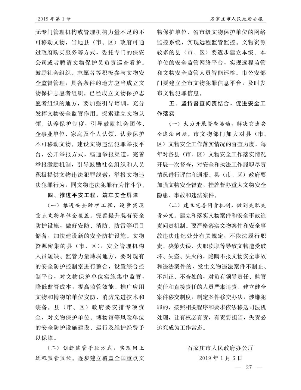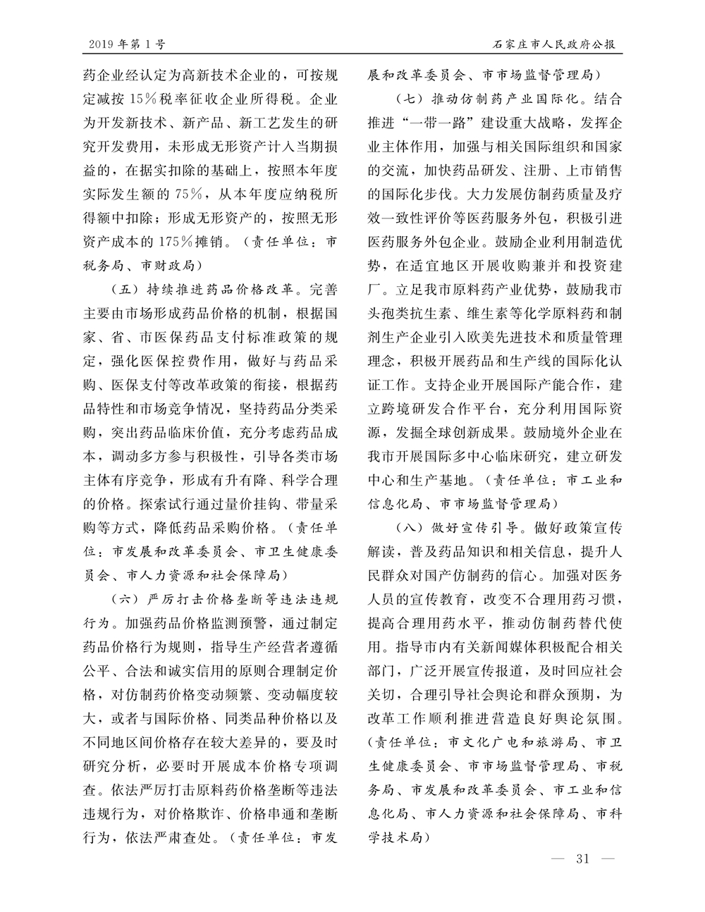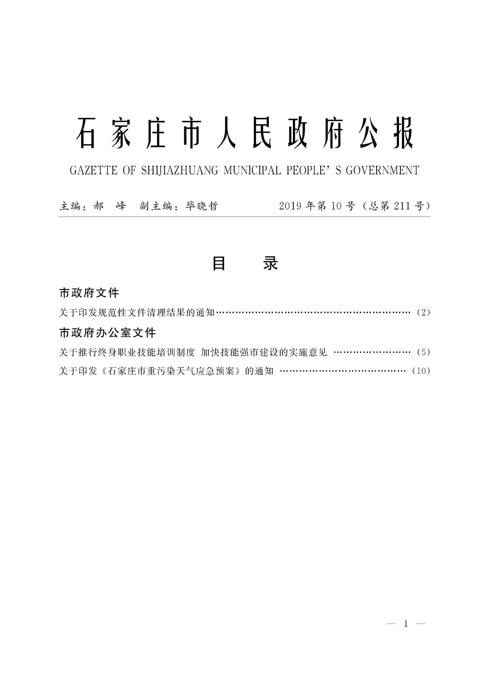 石家莊市人民政府公報2019年第1號