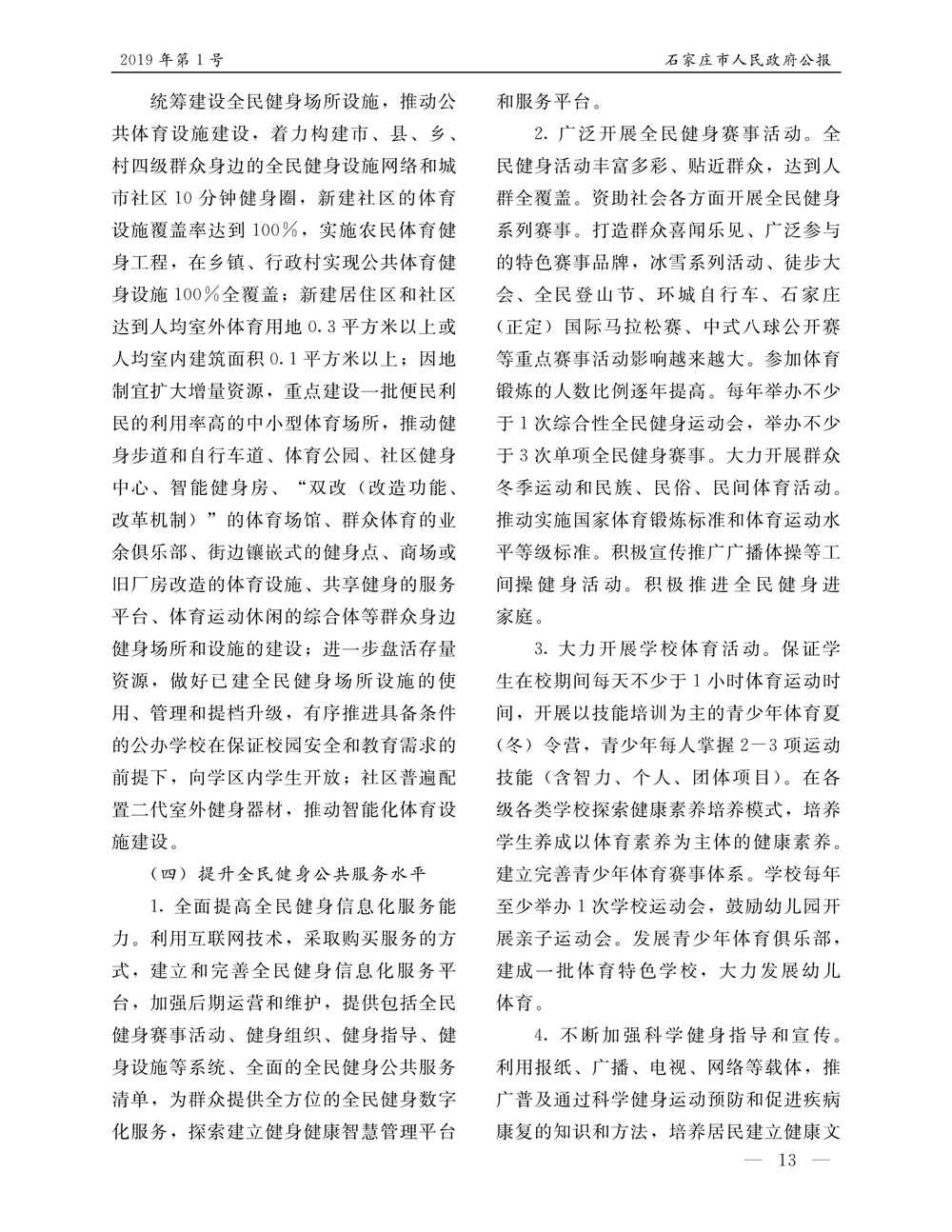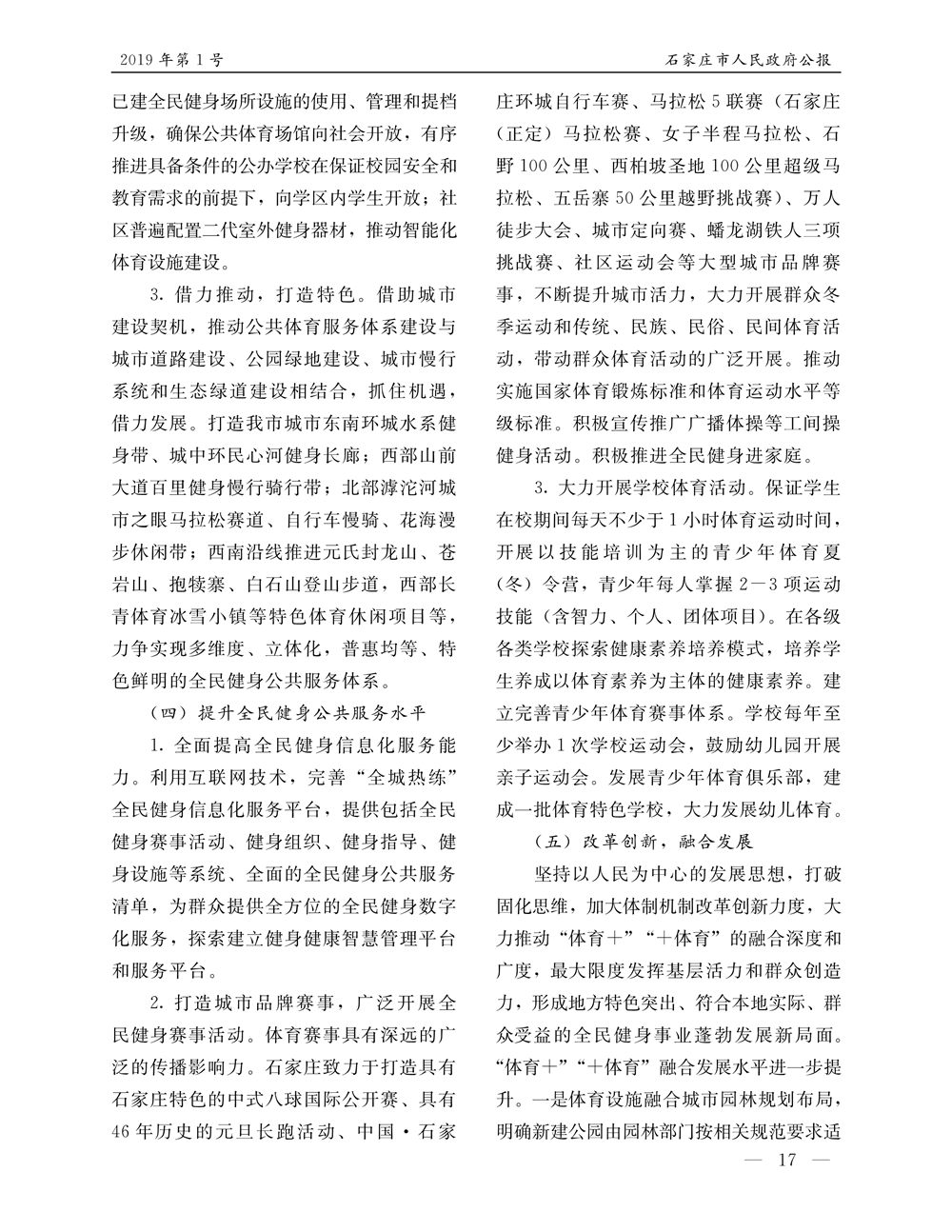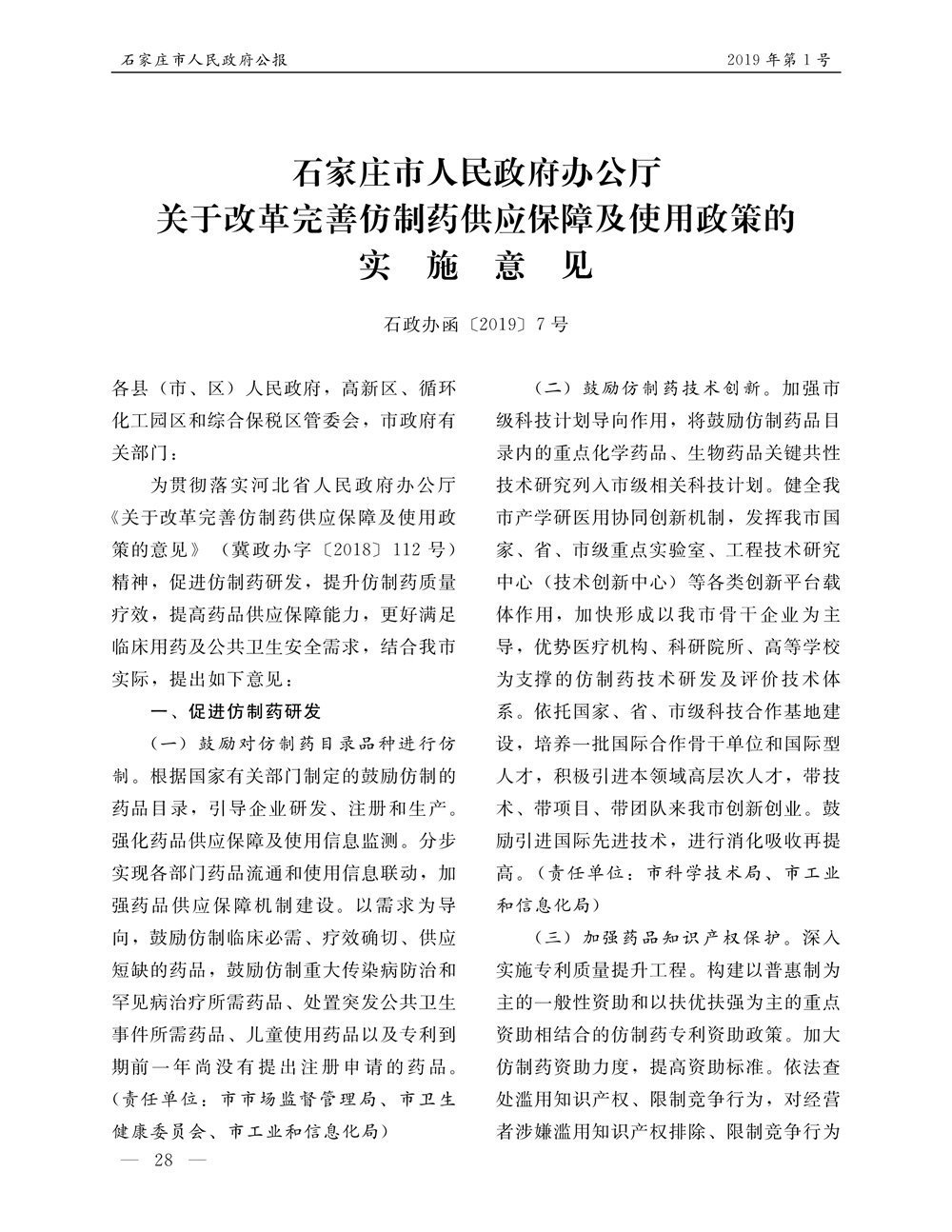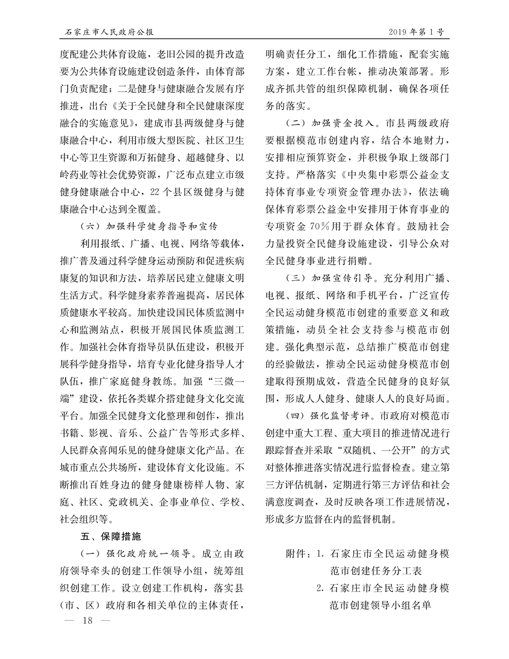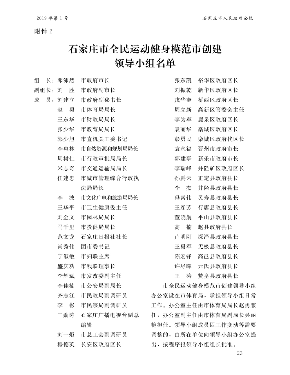 石家莊市人民政府公報2019年第1號