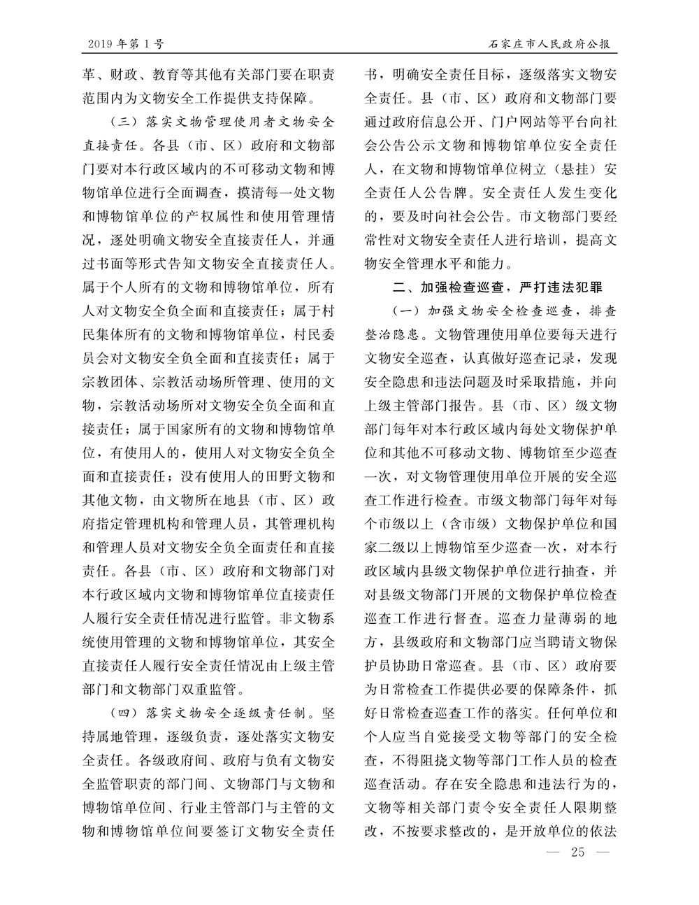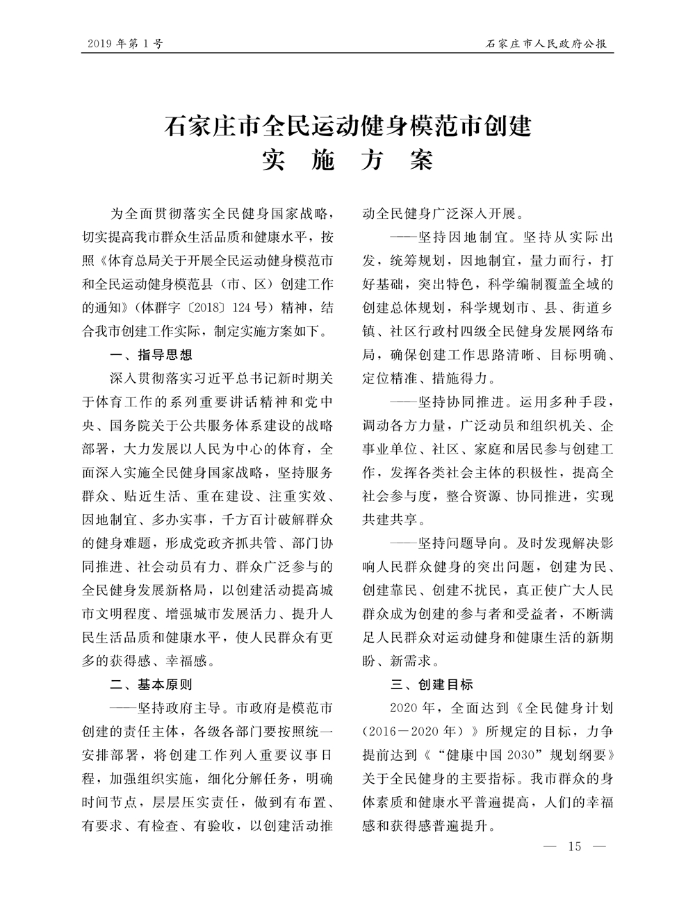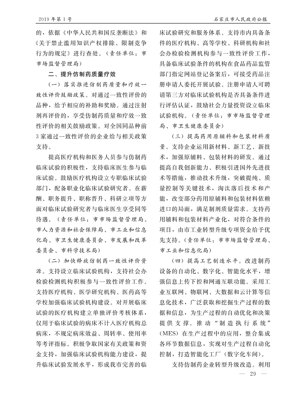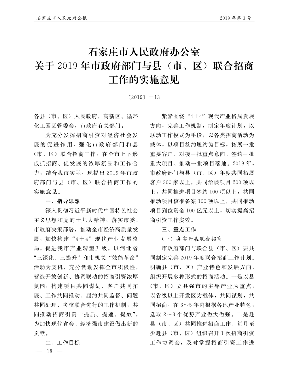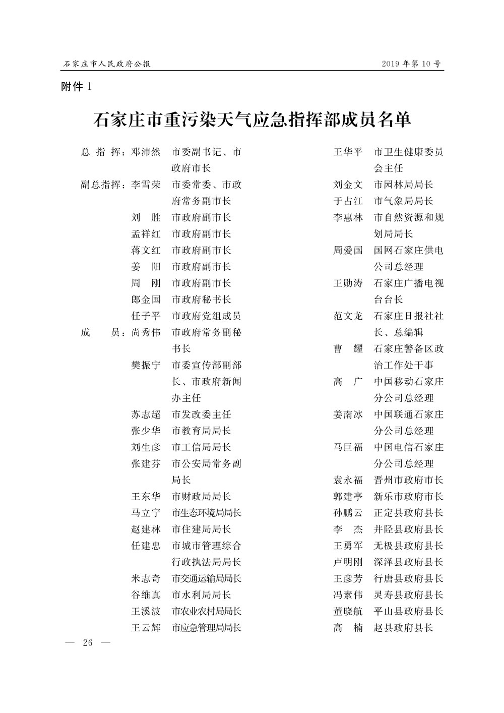 石家莊市人民政府公報2019年第1號