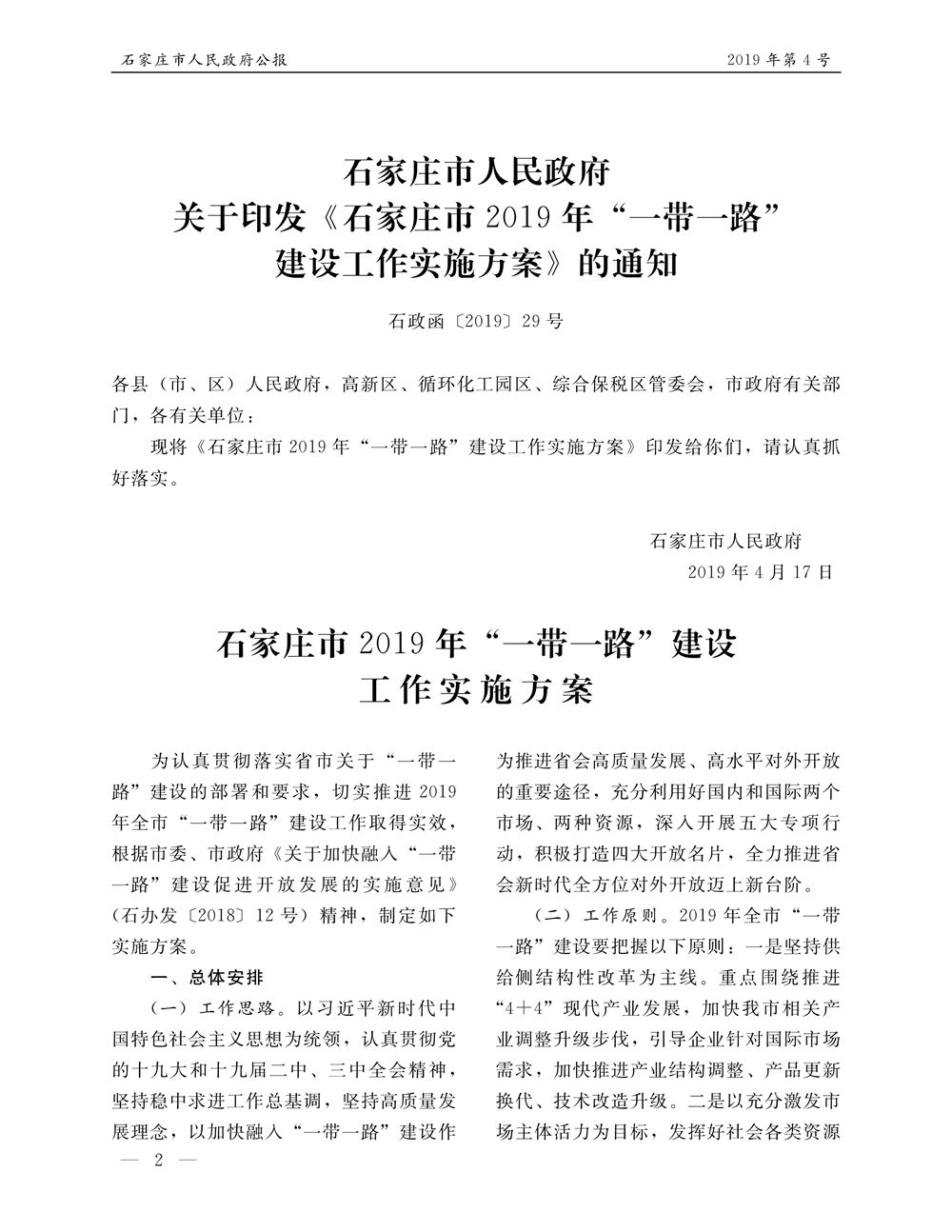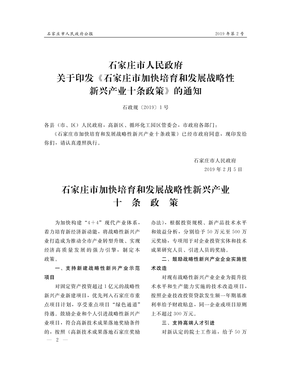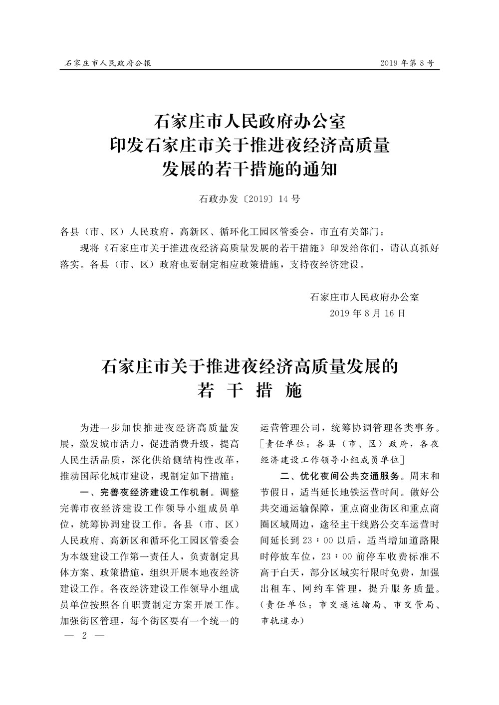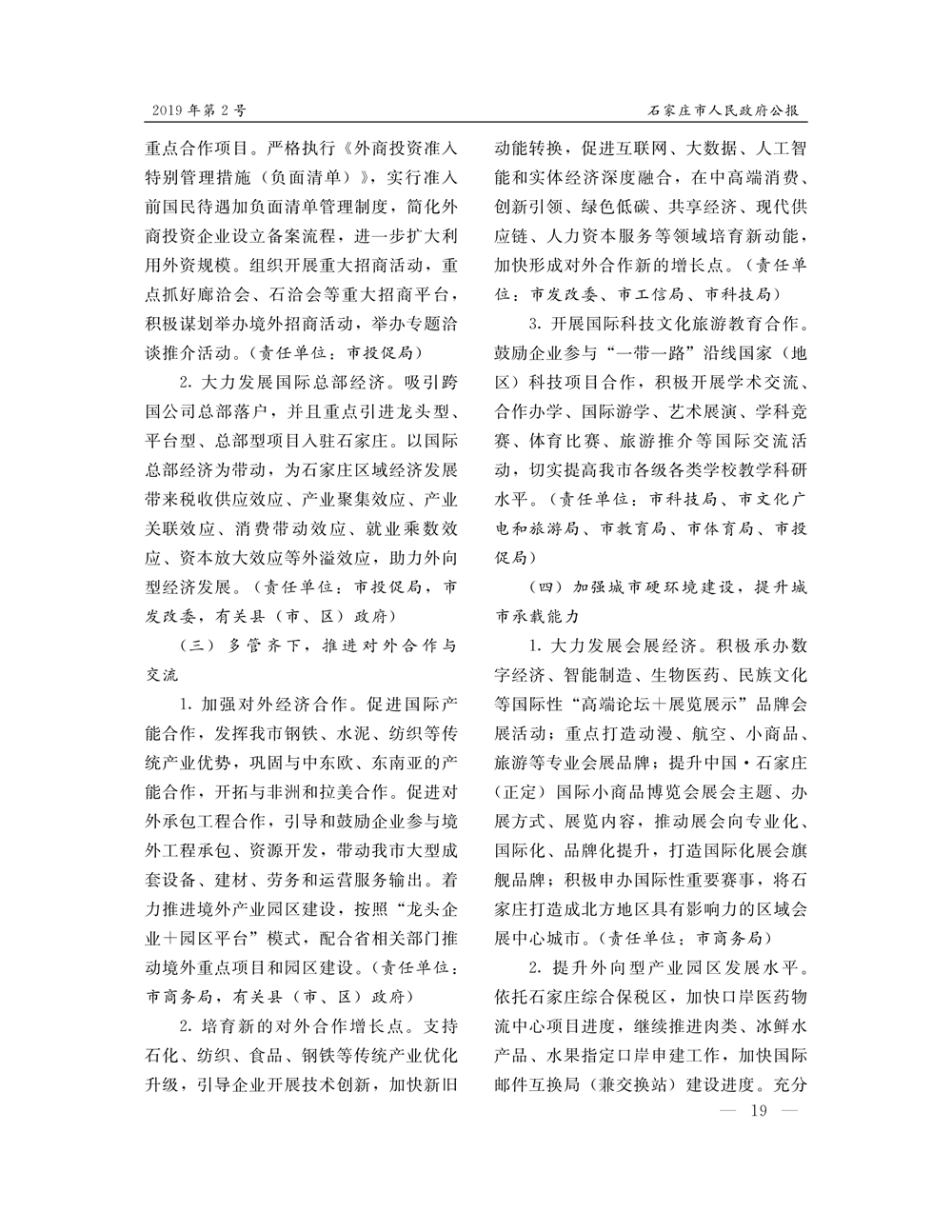 石家莊市人民政府公報2019年第2號