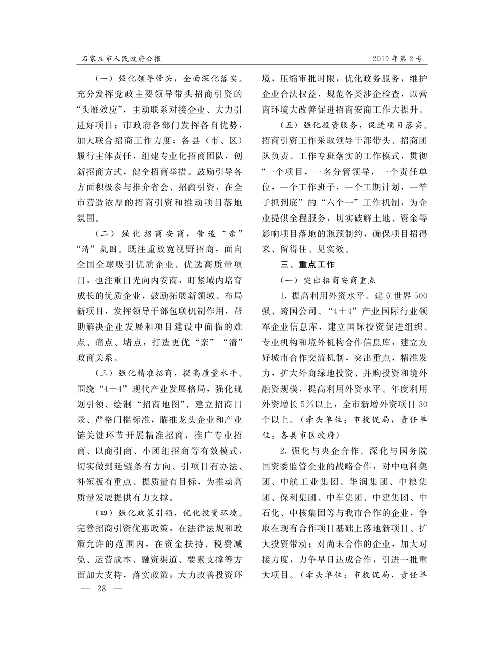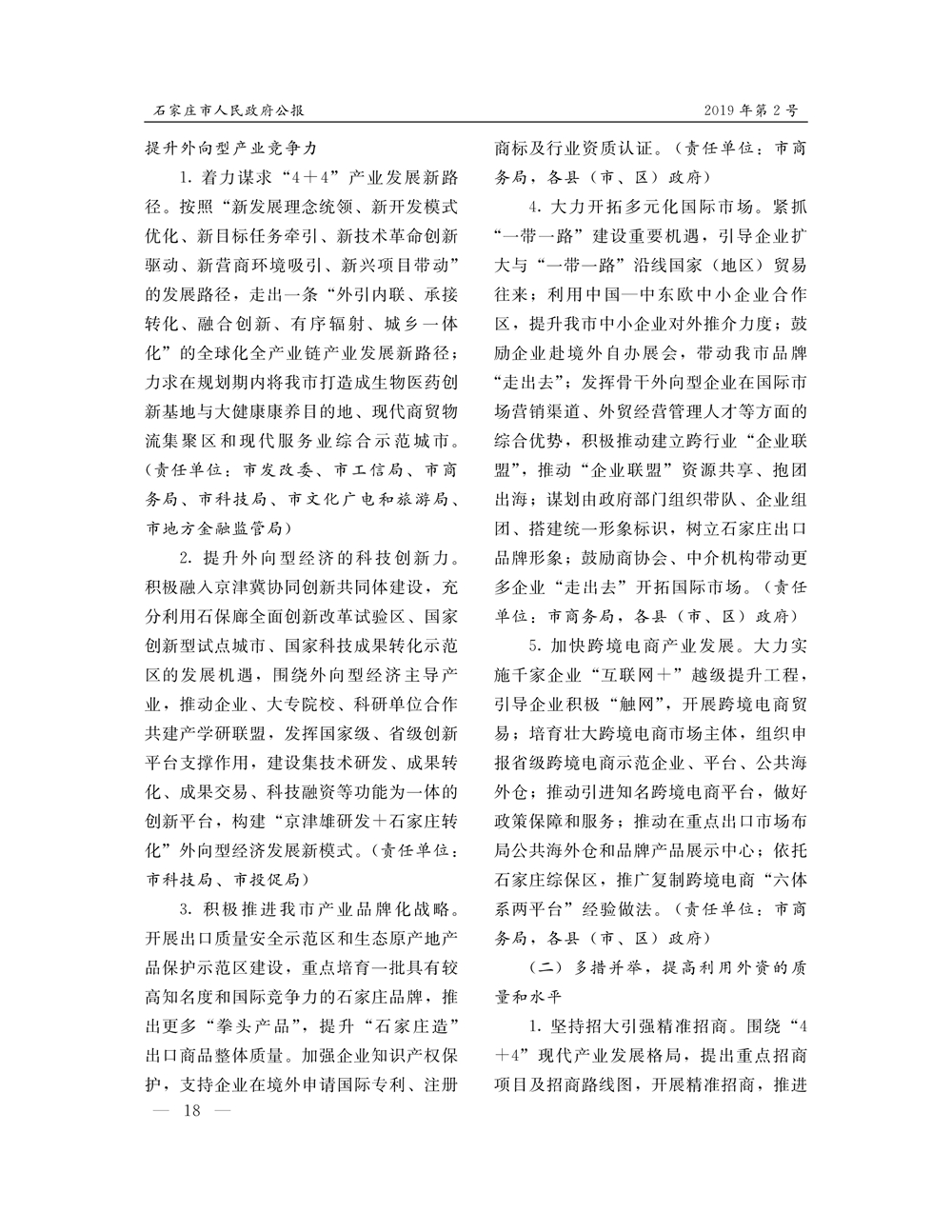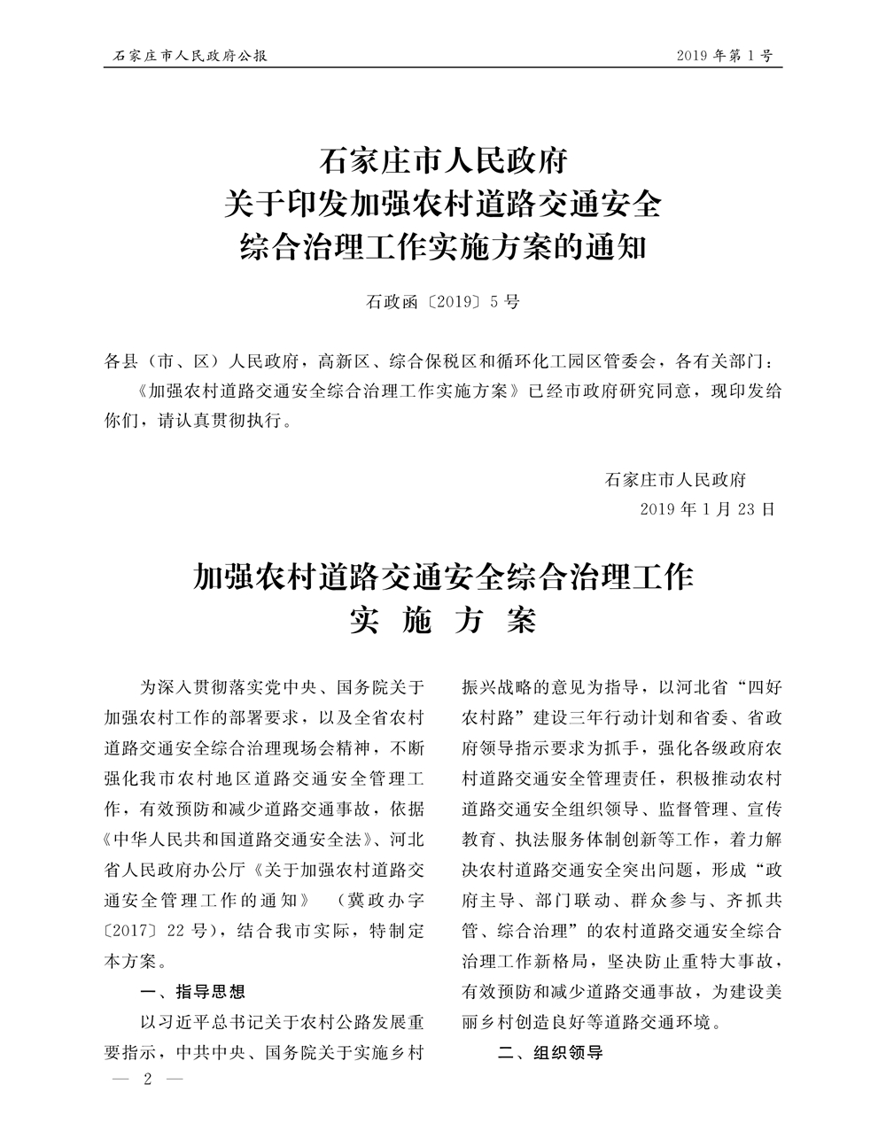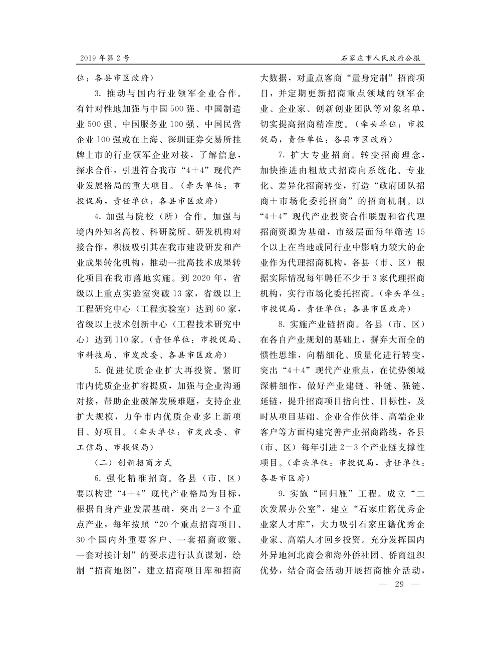 石家莊市人民政府公報2019年第2號