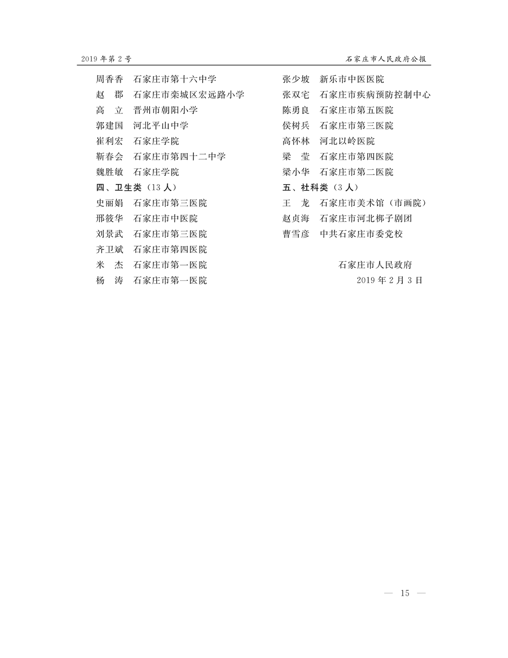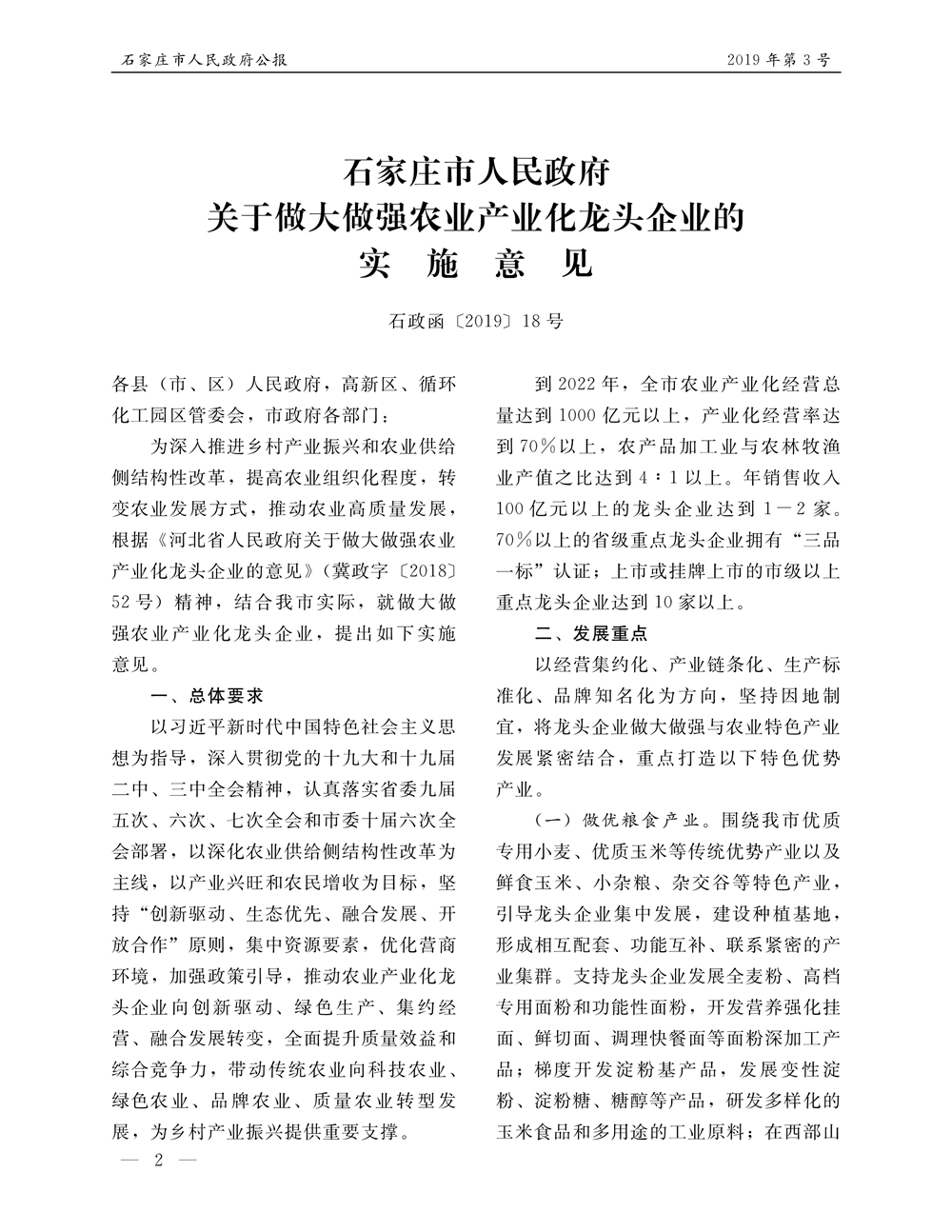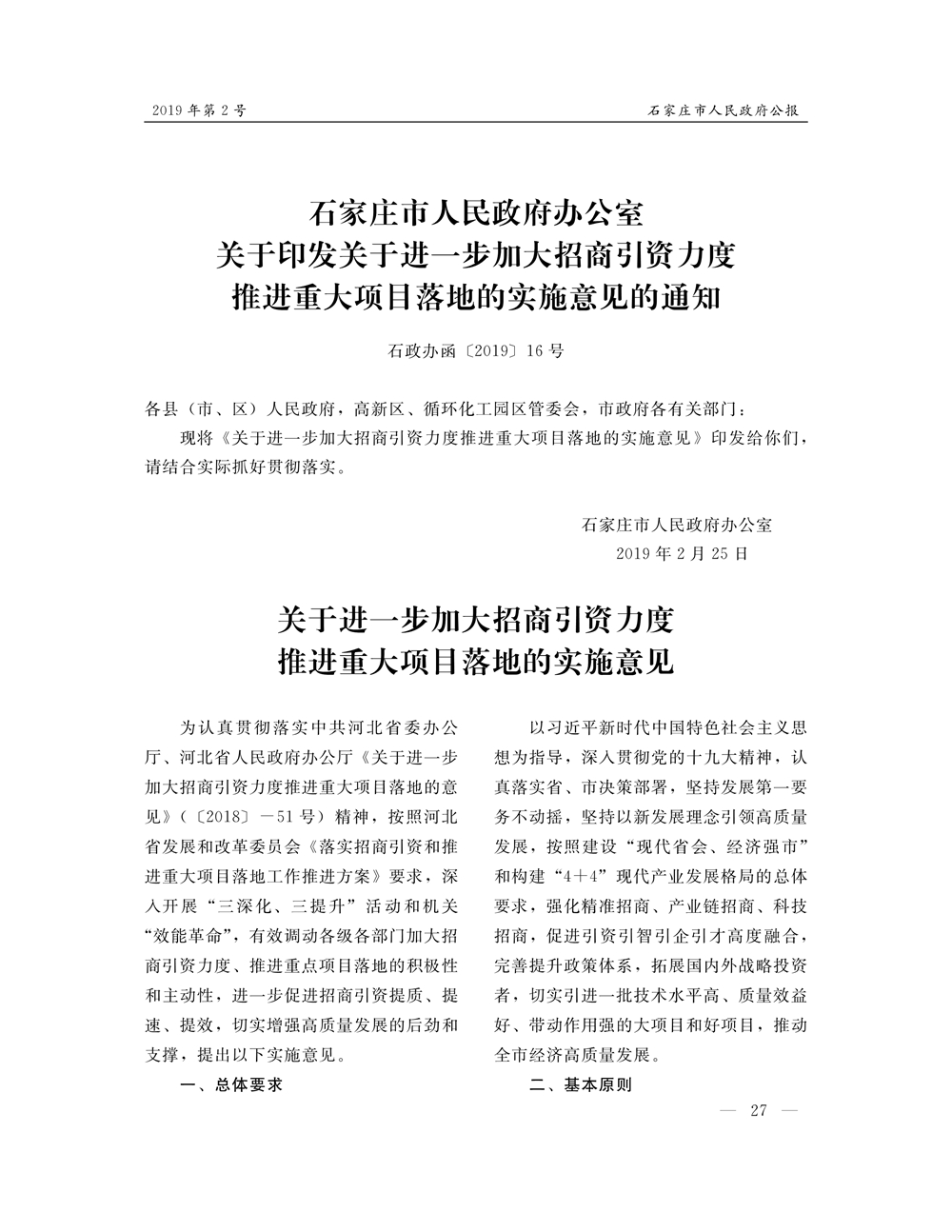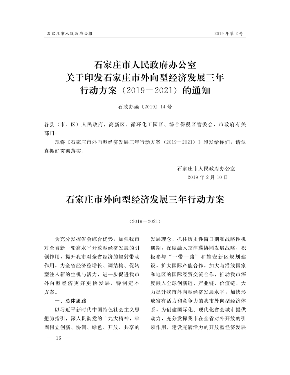 石家莊市人民政府公報2019年第2號