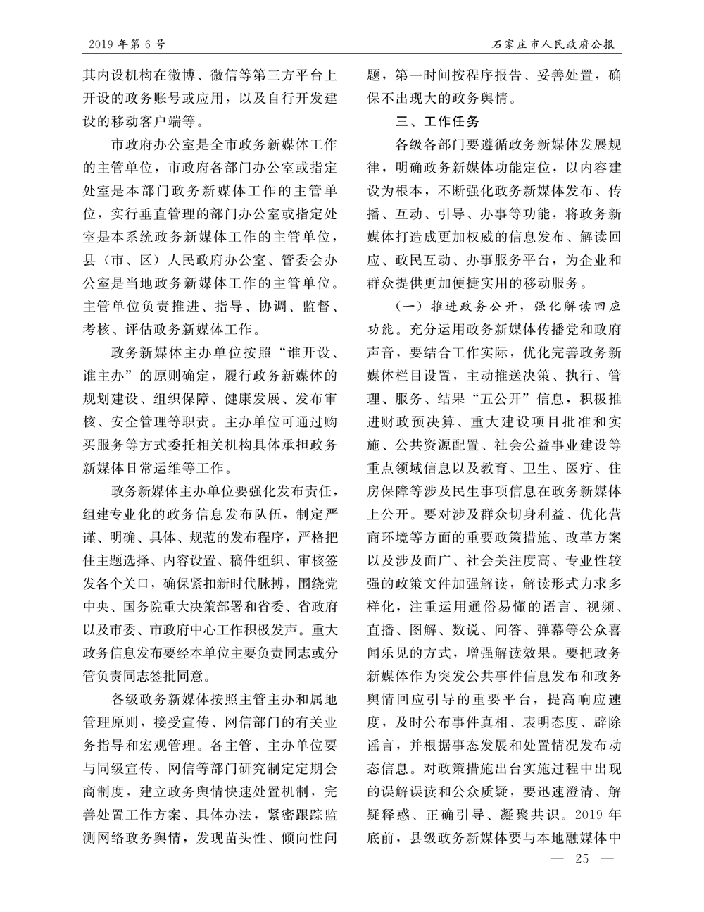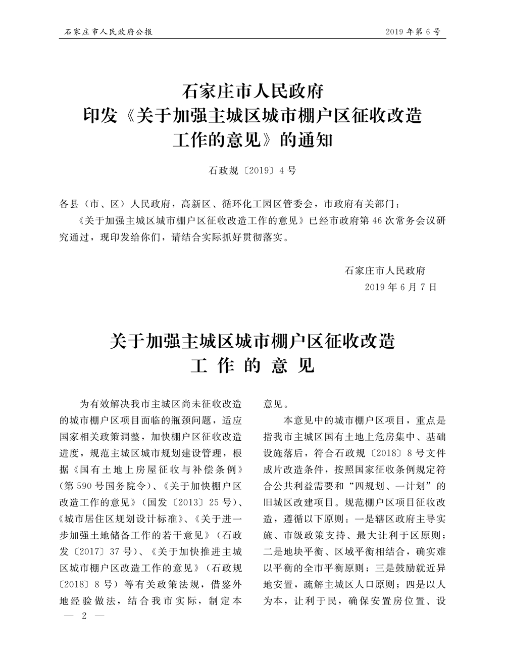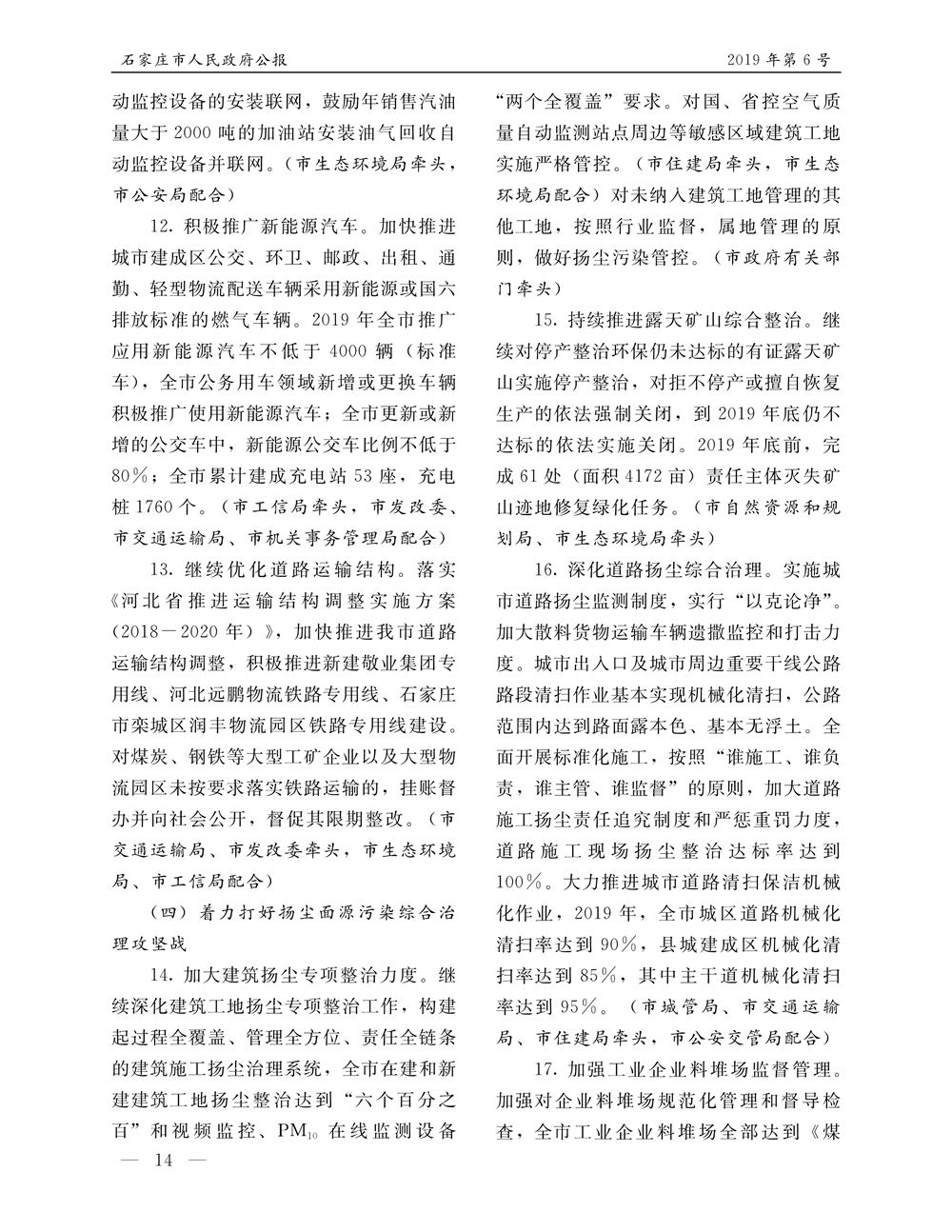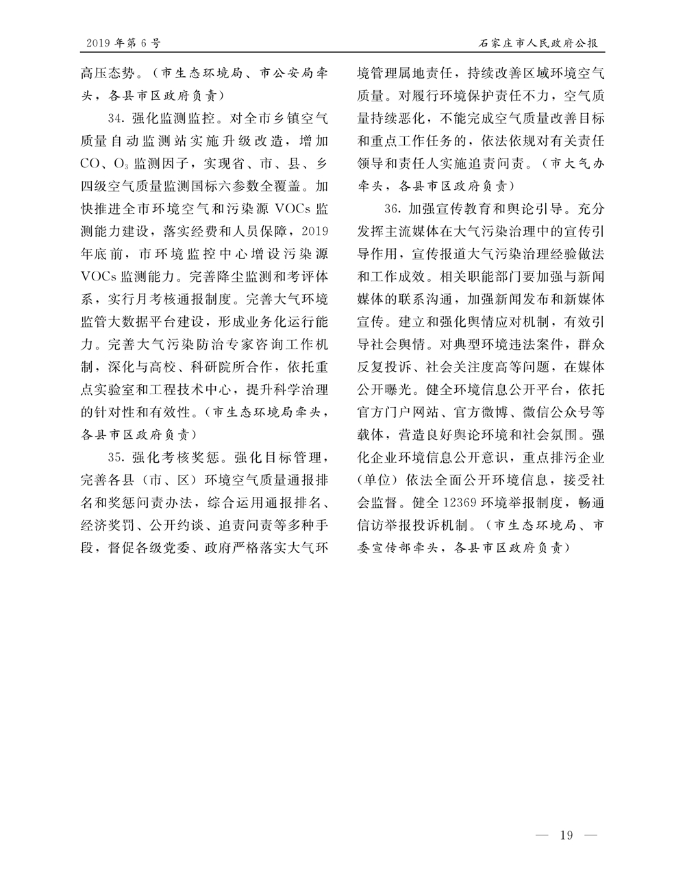石家莊市人民政府公報2019年第6號
