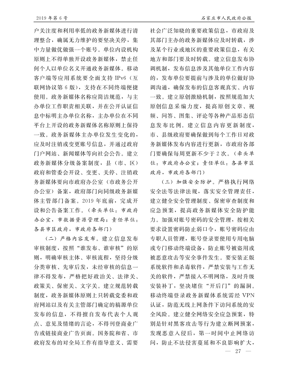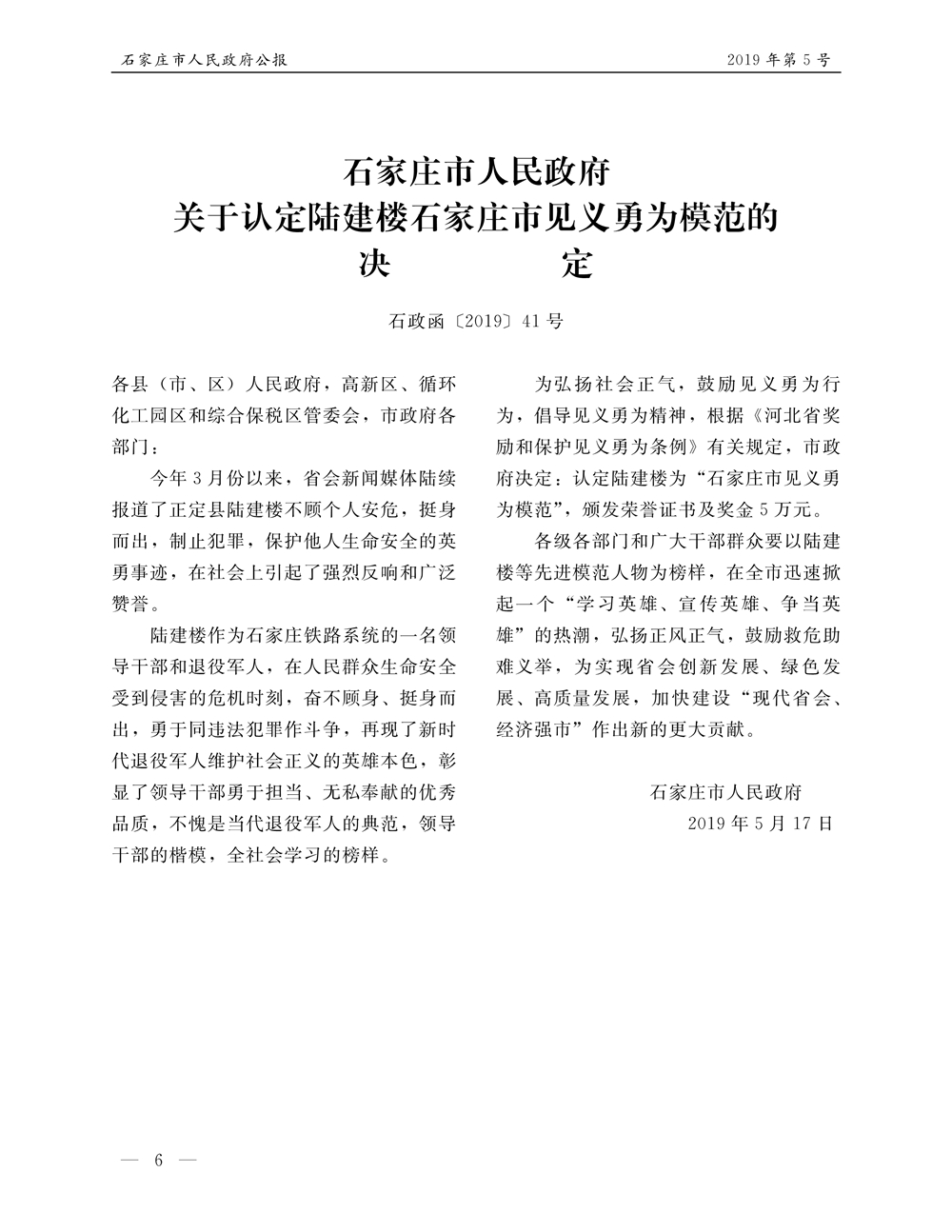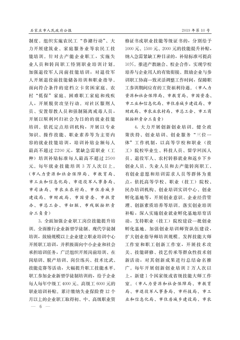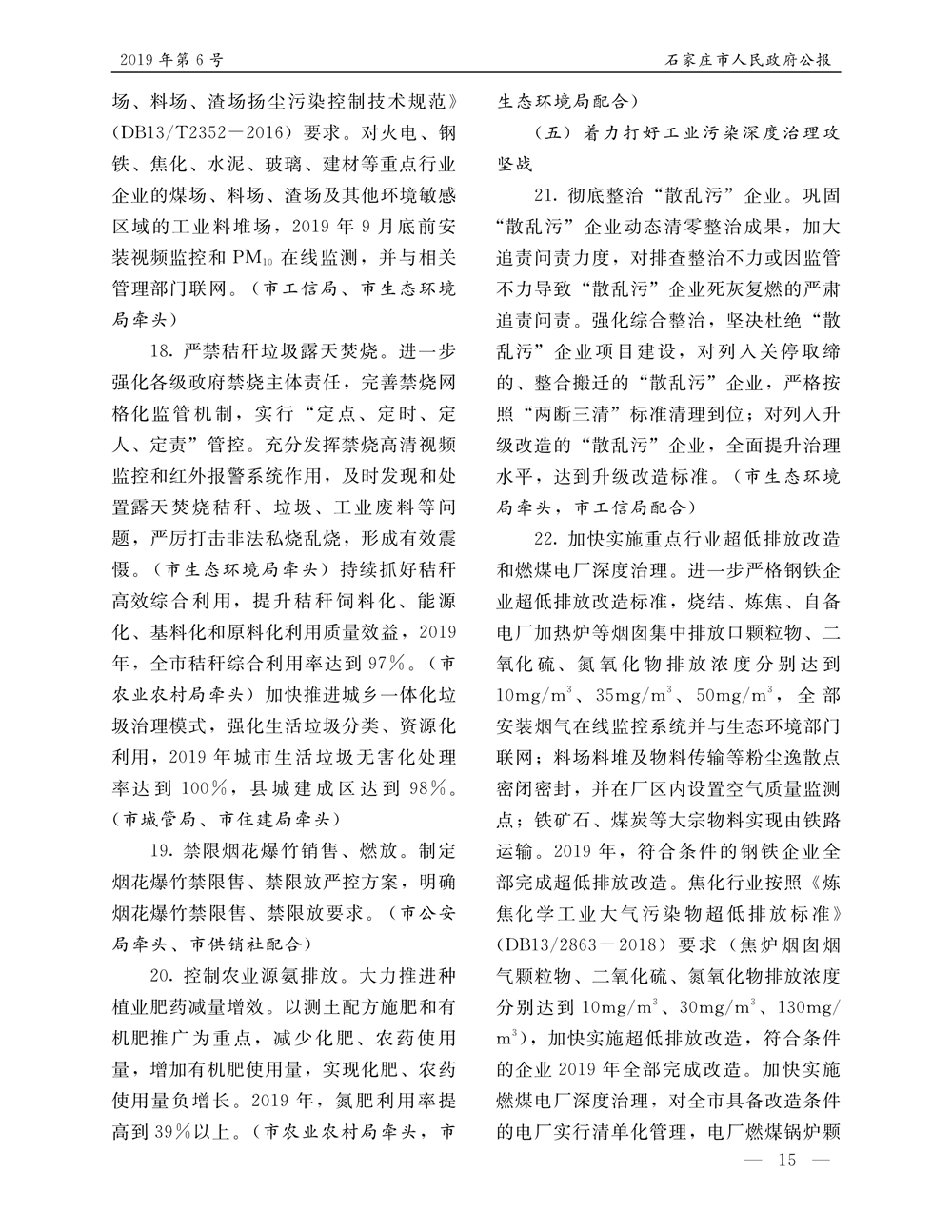 石家莊市人民政府公報2019年第6號