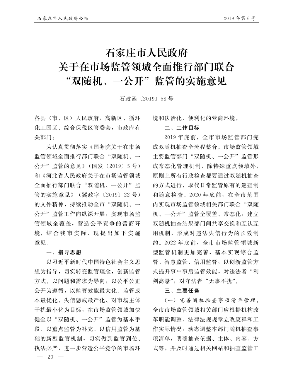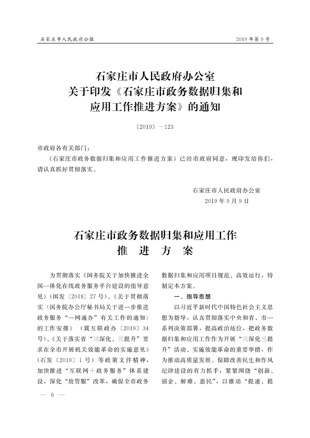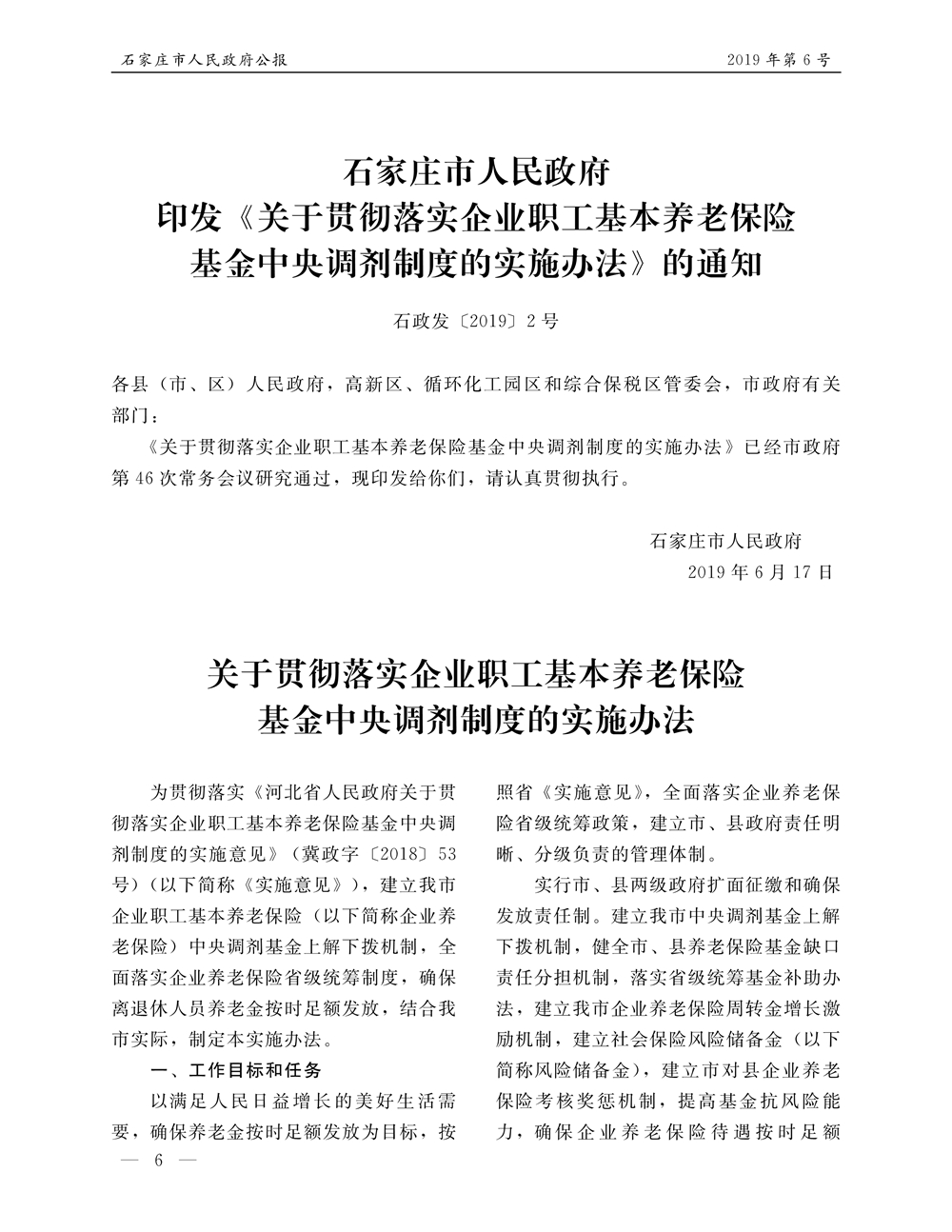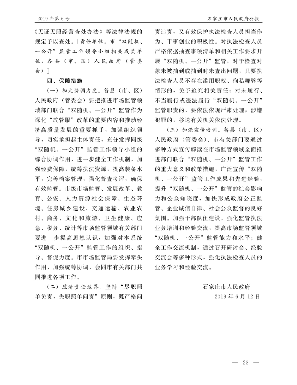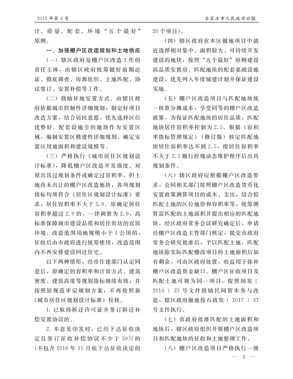 石家莊市人民政府公報2019年第6號