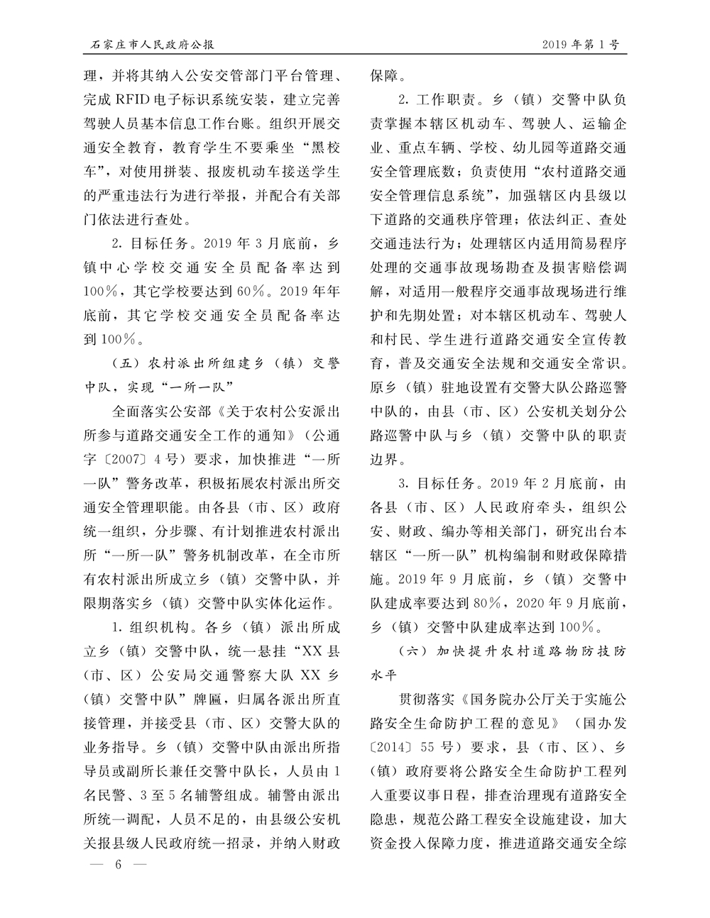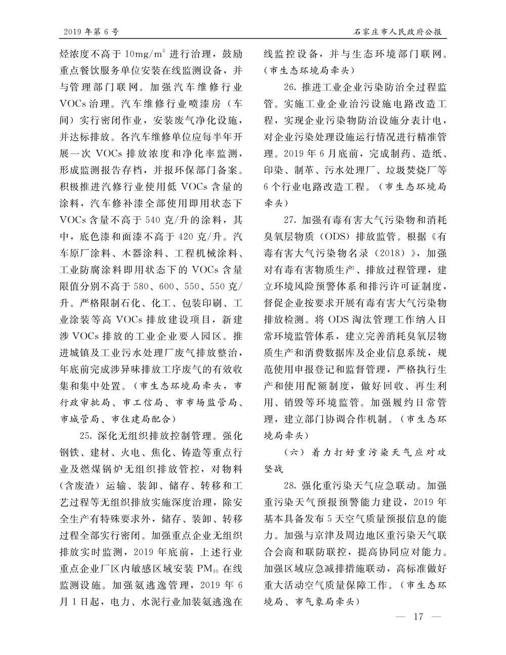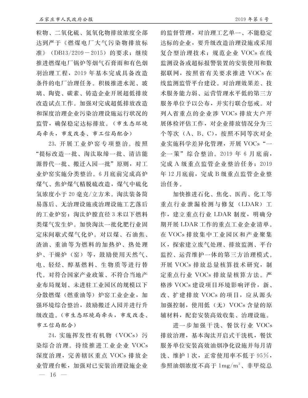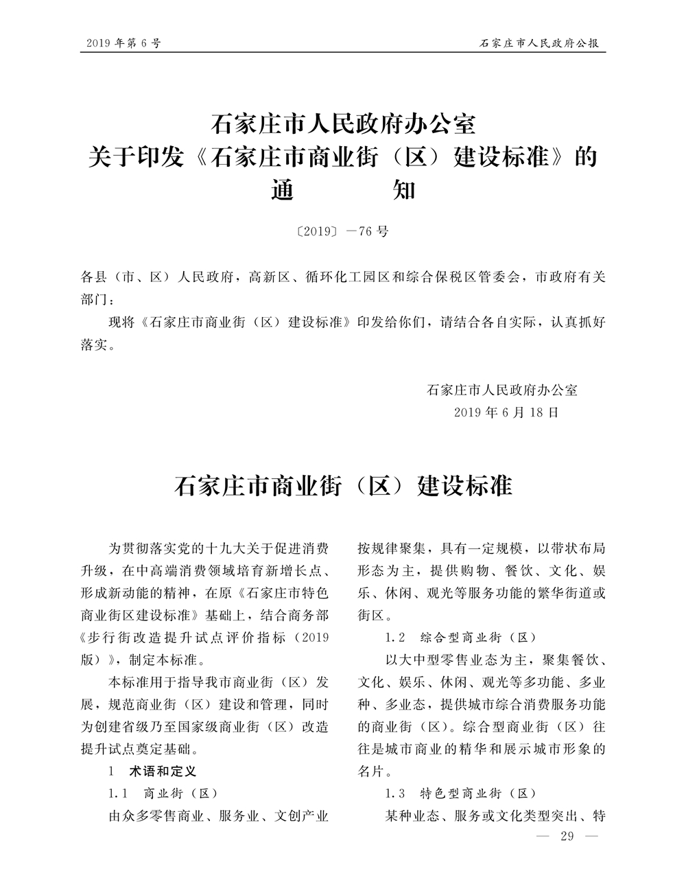石家莊市人民政府公報2019年第6號
