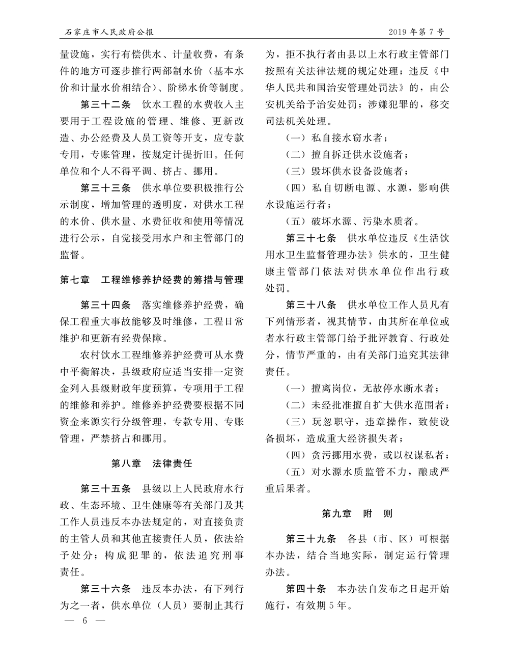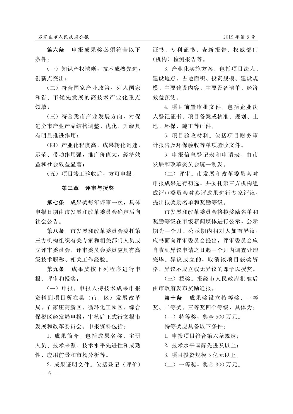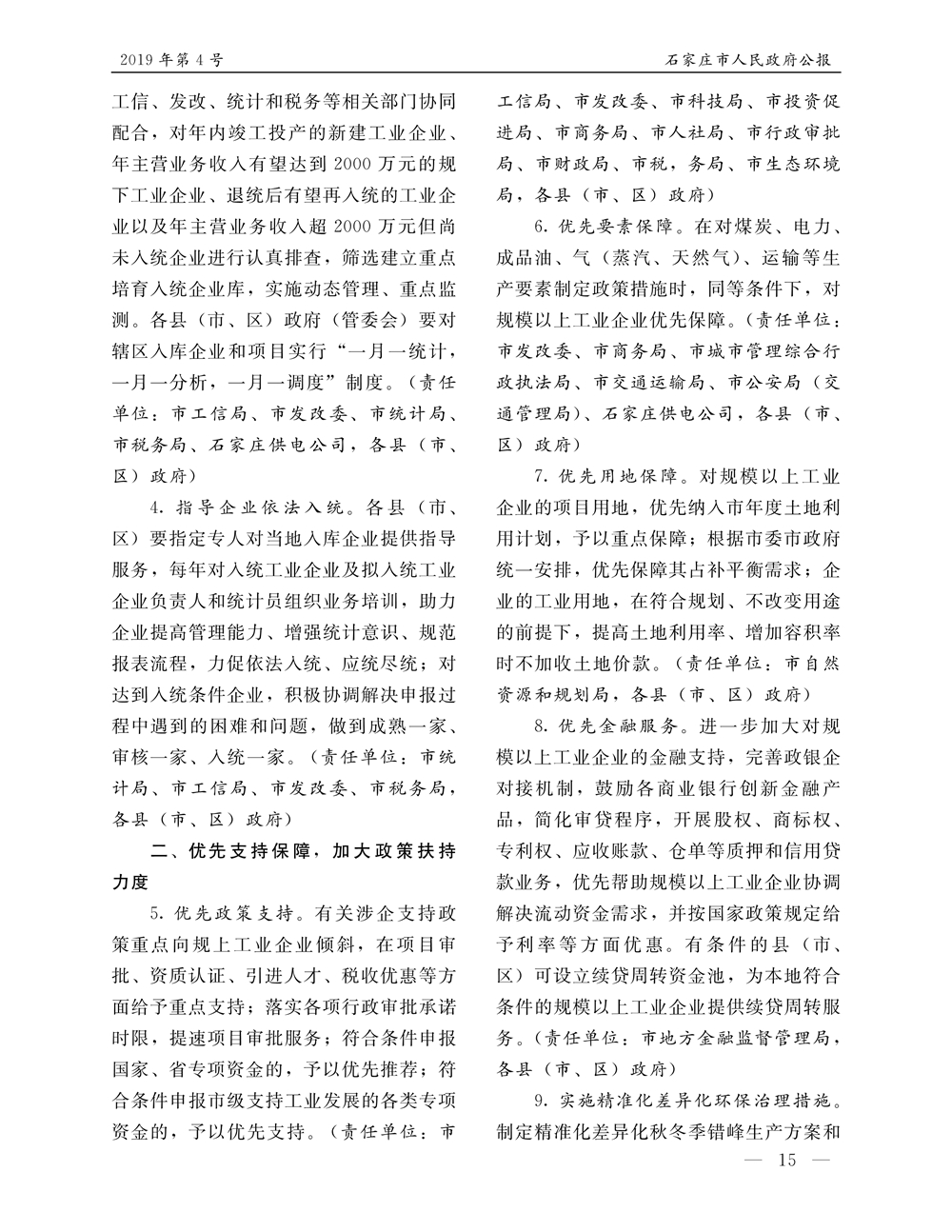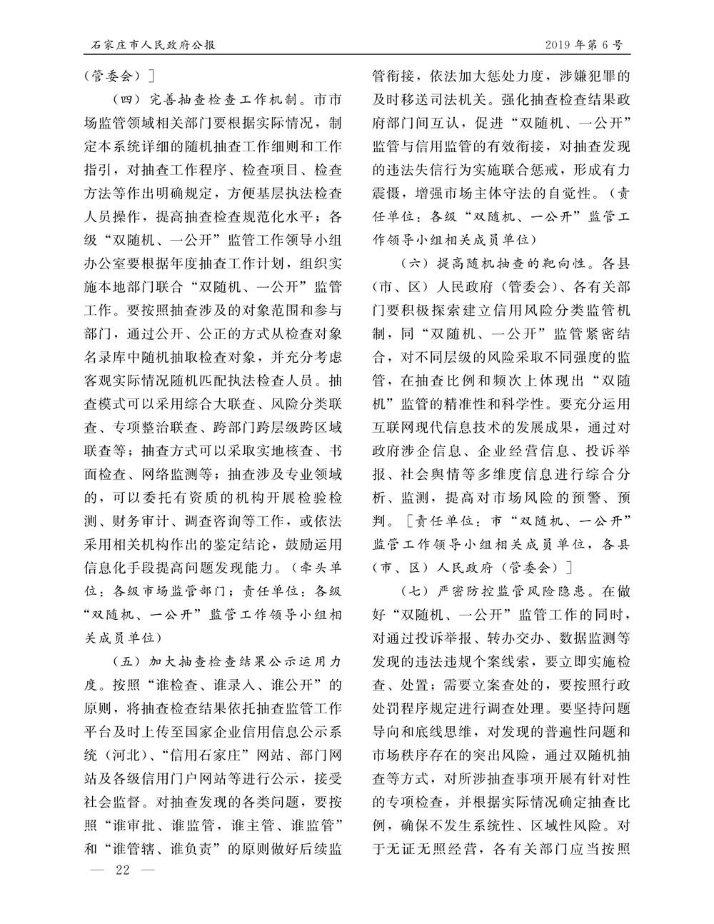 石家莊市人民政府公報2019年第6號