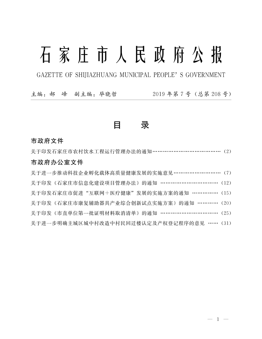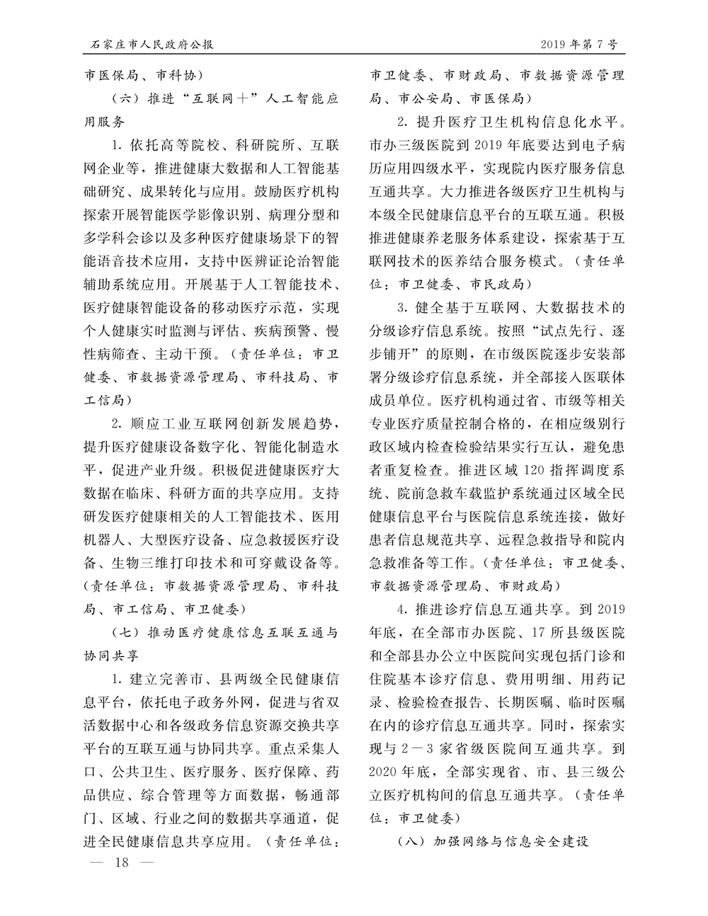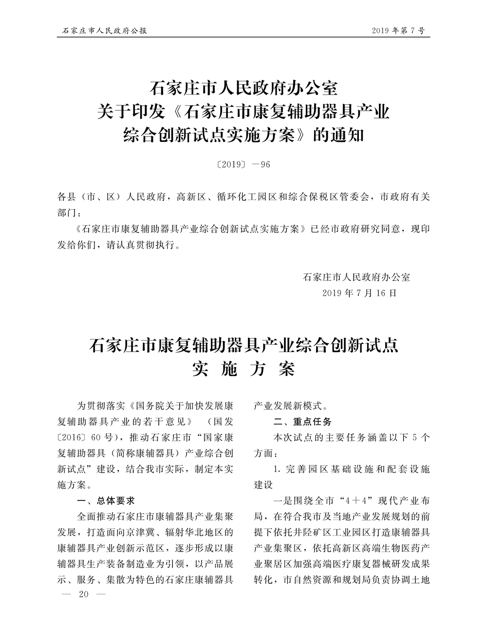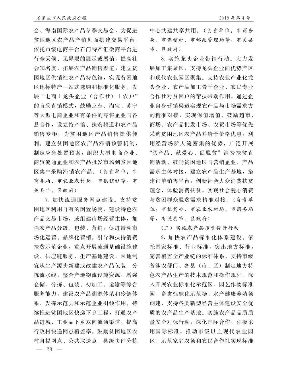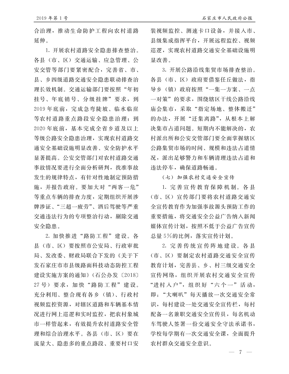 石家莊市人民政府公報2019年第7號