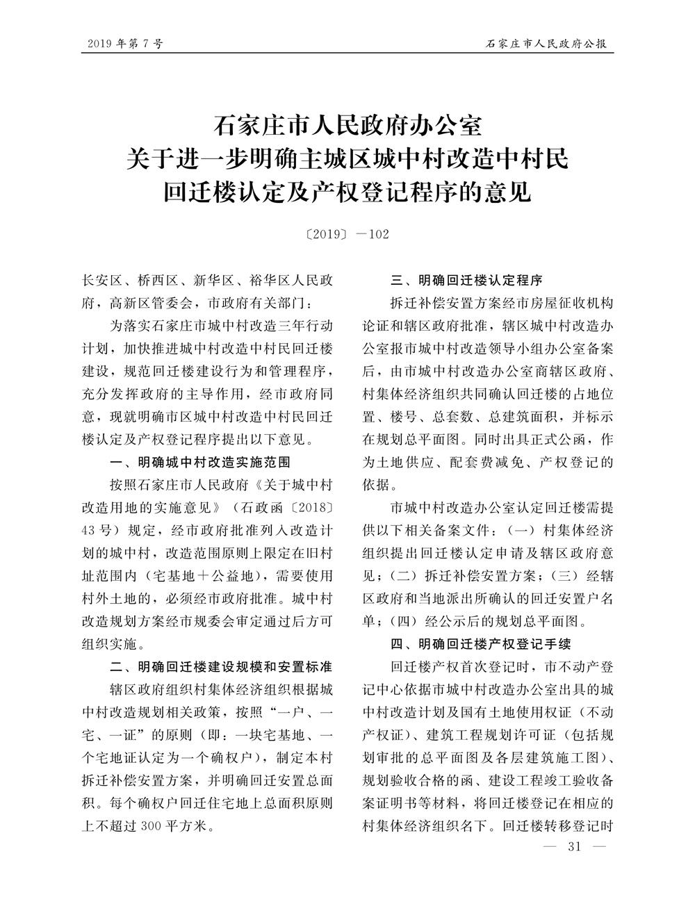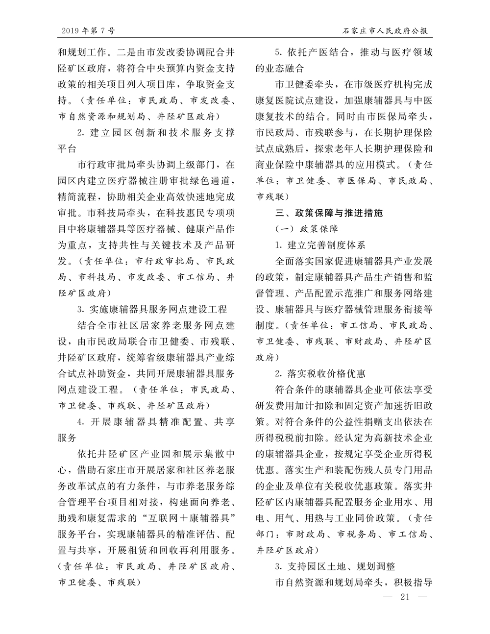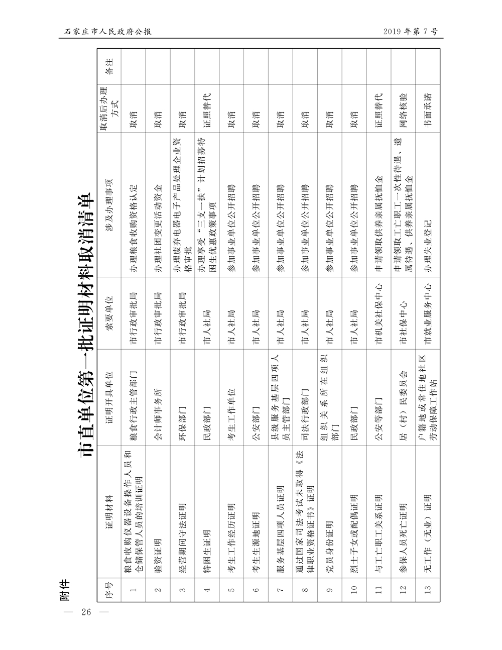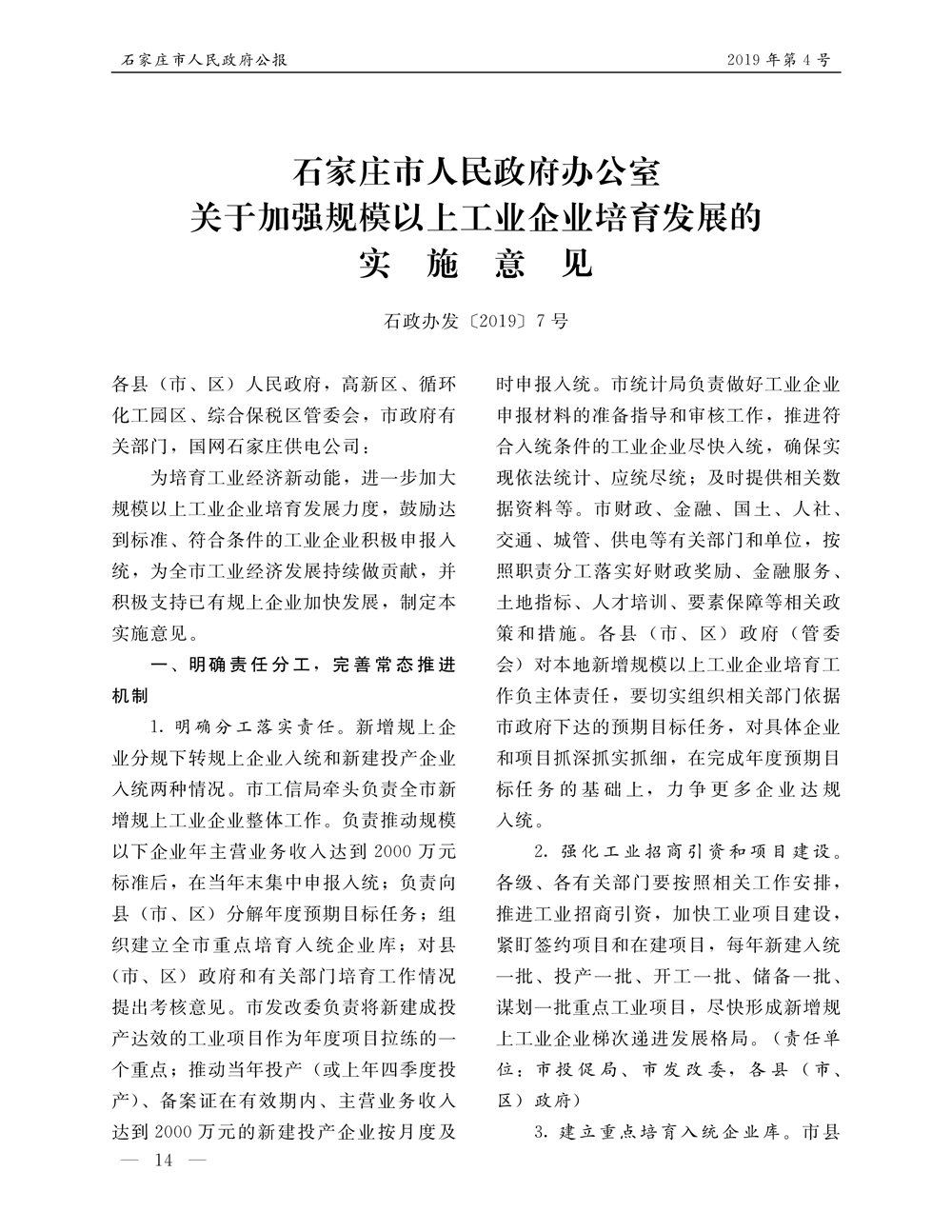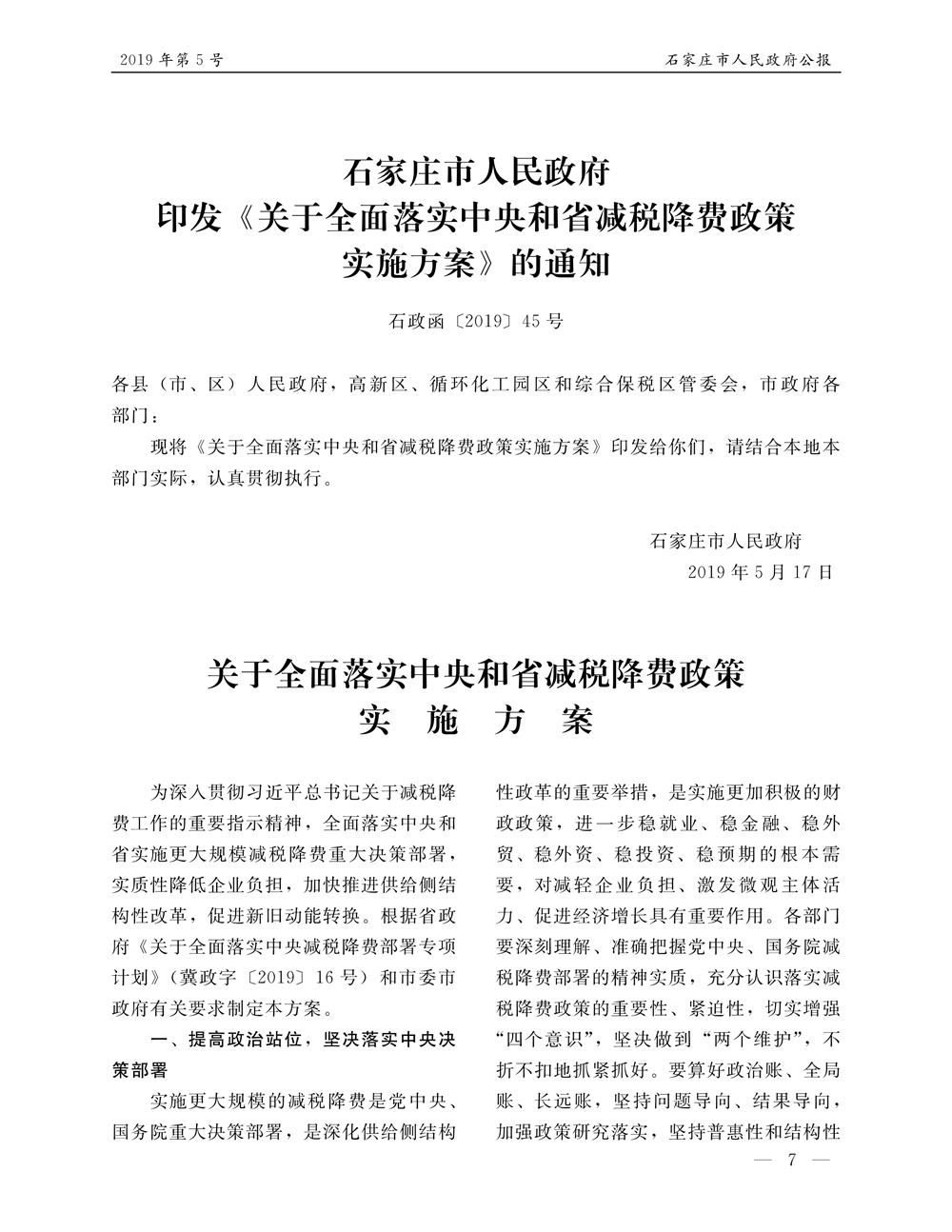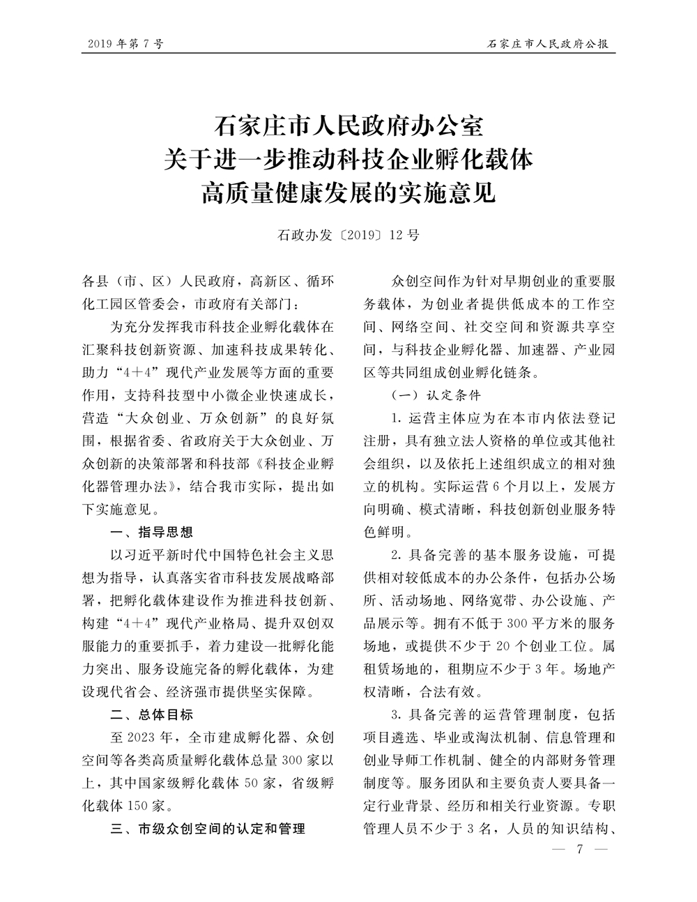 石家莊市人民政府公報2019年第7號
